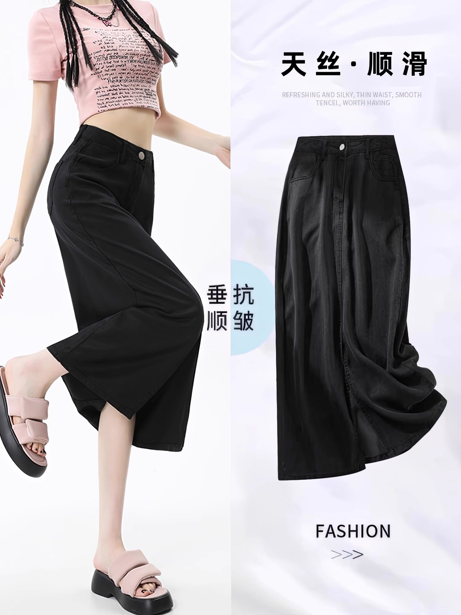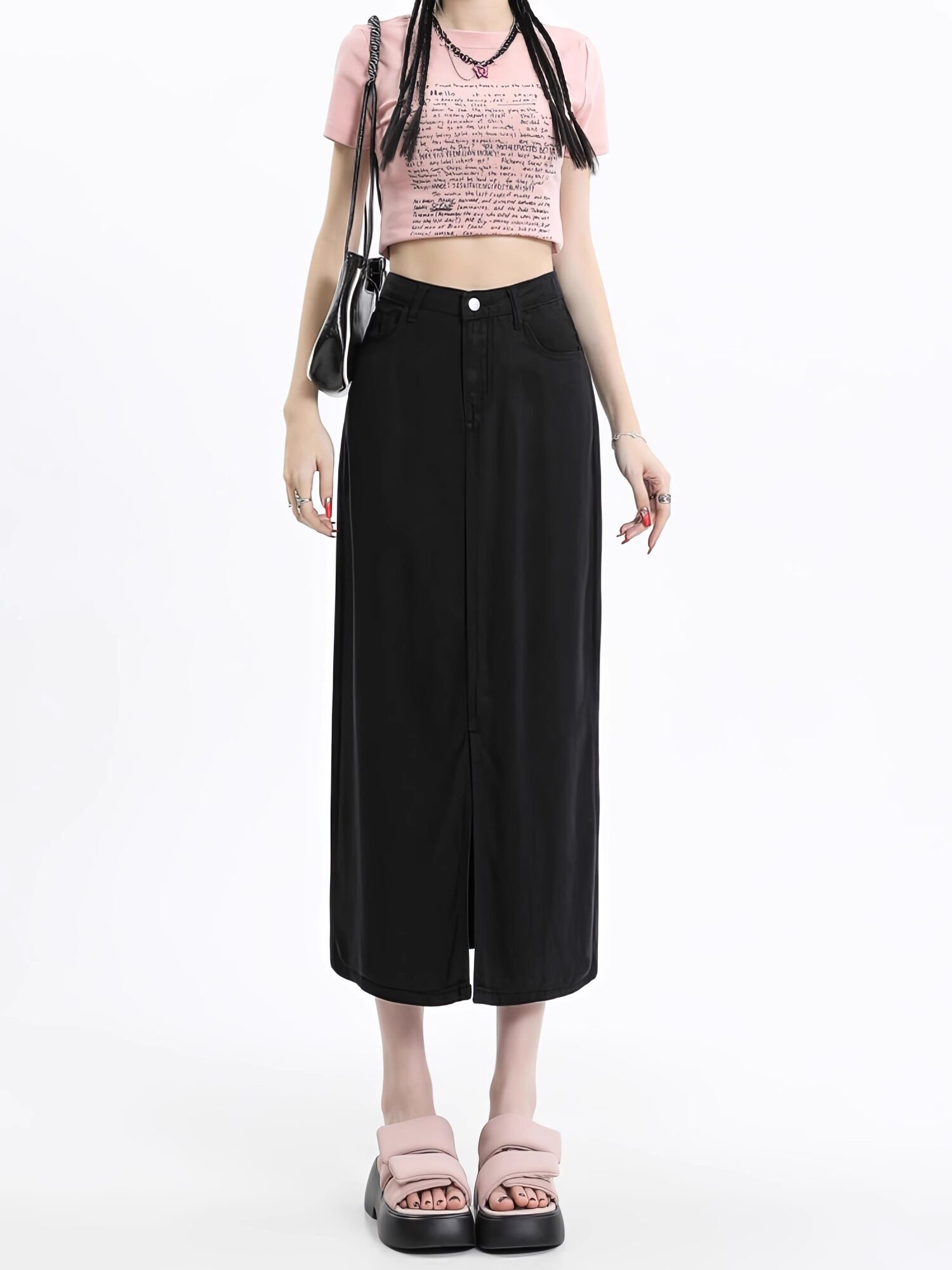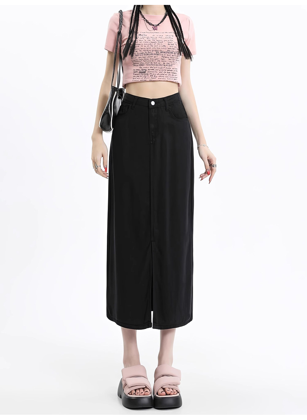 Черная летняя корейская маленькая джинсовая юбка, высокая талия
