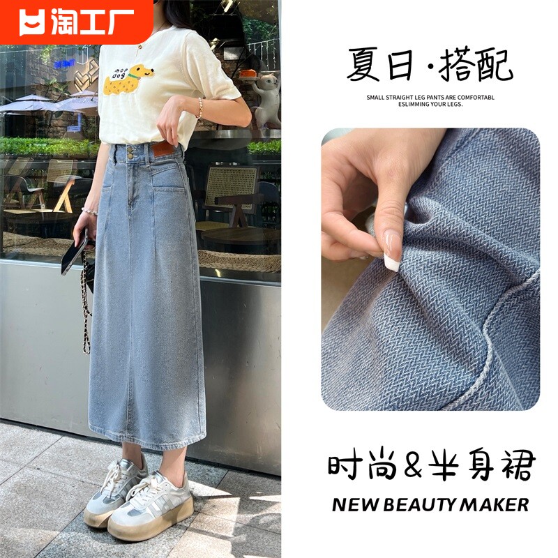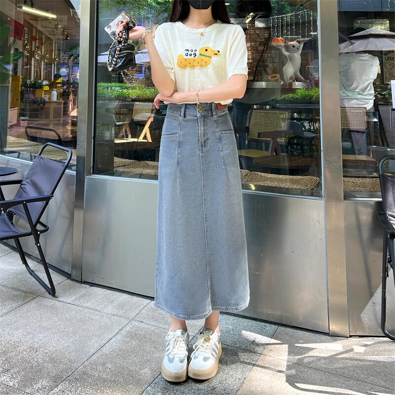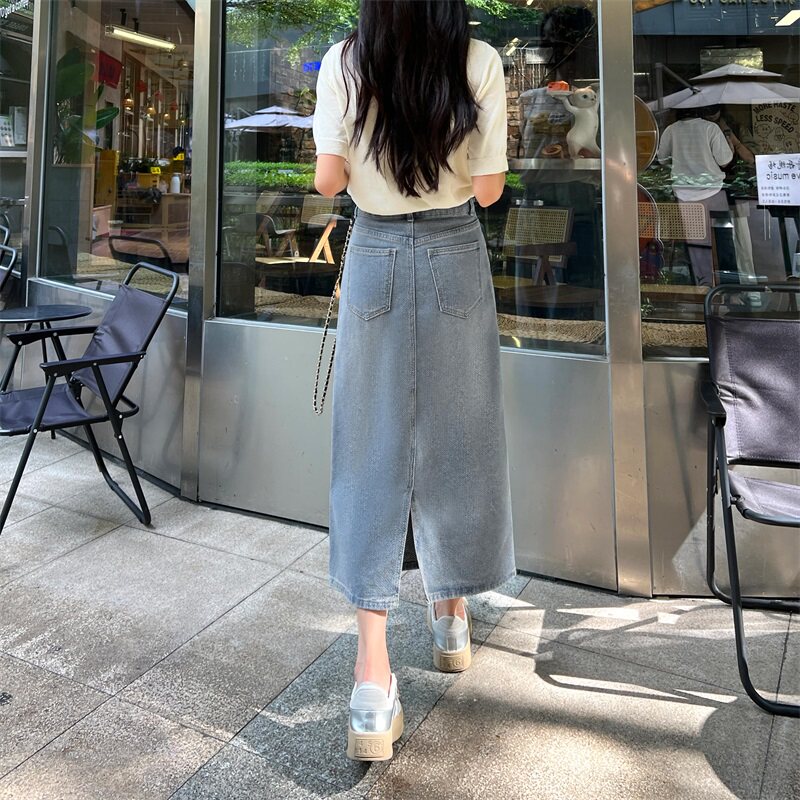 Ретро летняя тонкая джинсовая юбка, высокая талия, с акцентом на бедрах, свободный крой, по фигуре, подходит для подростков