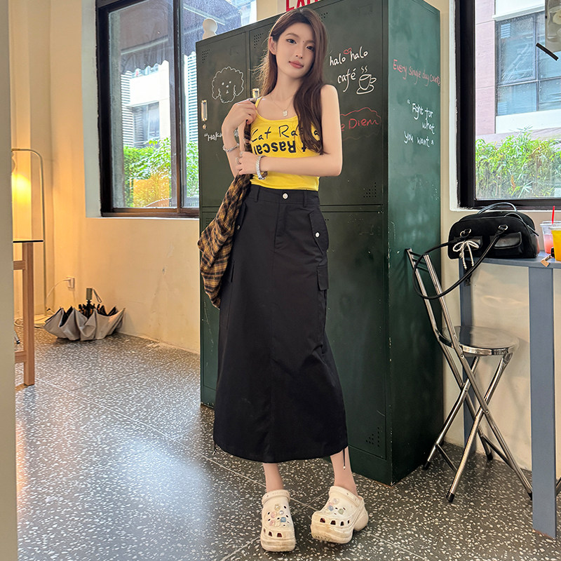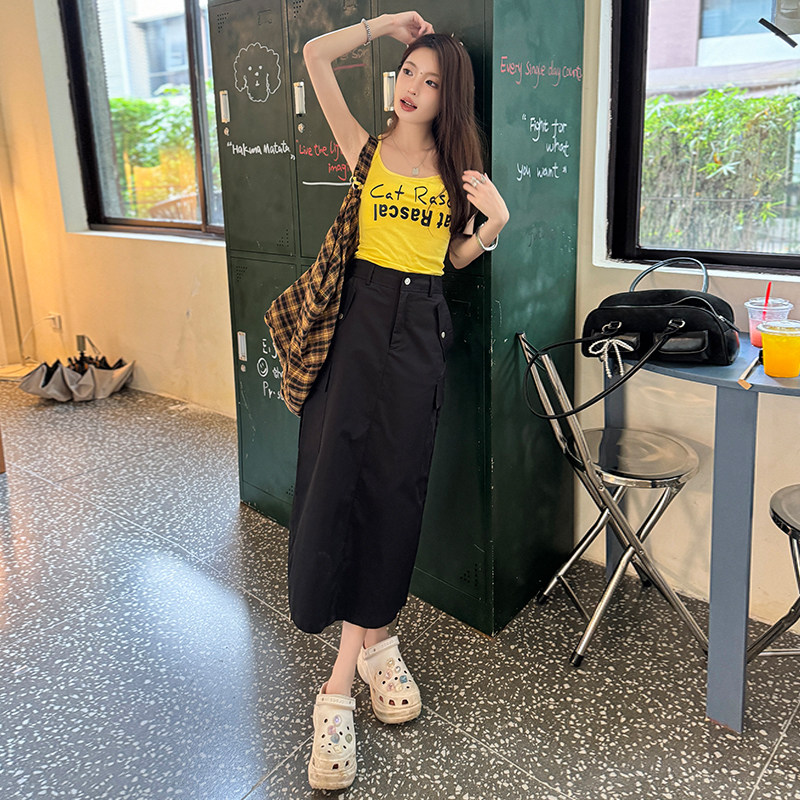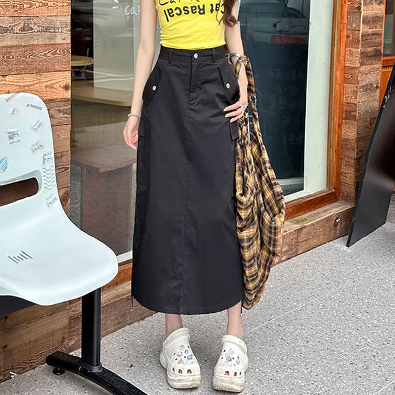 Летняя длинная юбка для отдыха, в американском стиле, на шнурках, высокая талия, средней длины, А-силуэт, свободный прямой крой