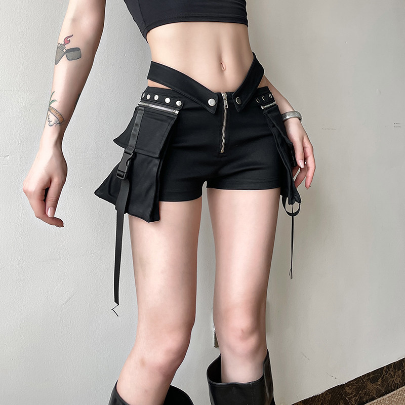 WEEKEEP 【Высокоэнергетическая локомотив】 Прохладные V-образные талия Трехмерные шорты для мешков Нишевые и универсальные рабочие штаны для женщин