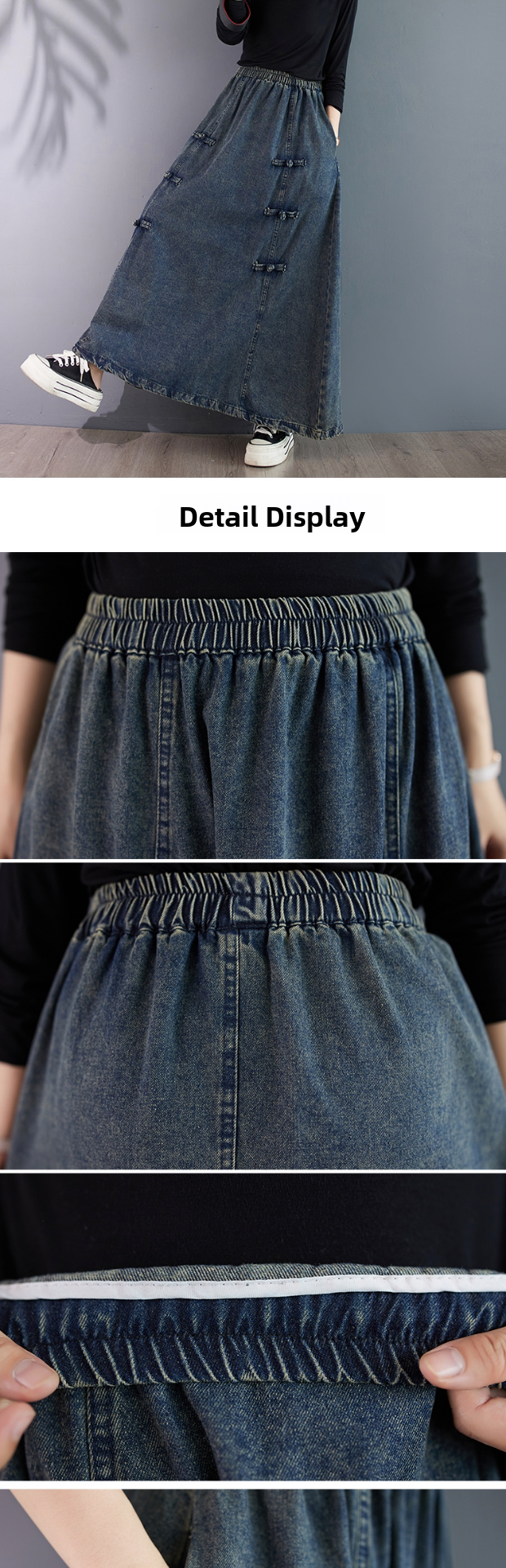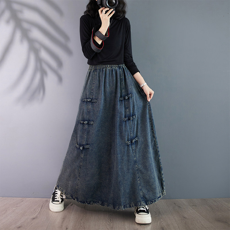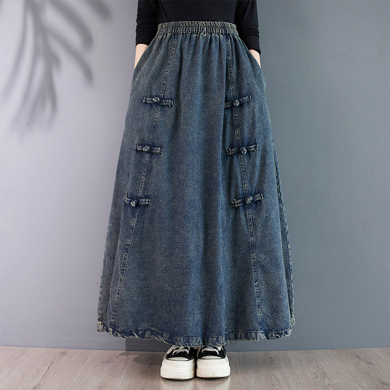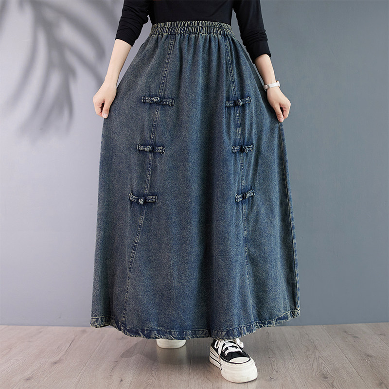 Осенняя джинсовая юбка, длинная длинная юбка, высокая талия, А-силуэт, большой размер