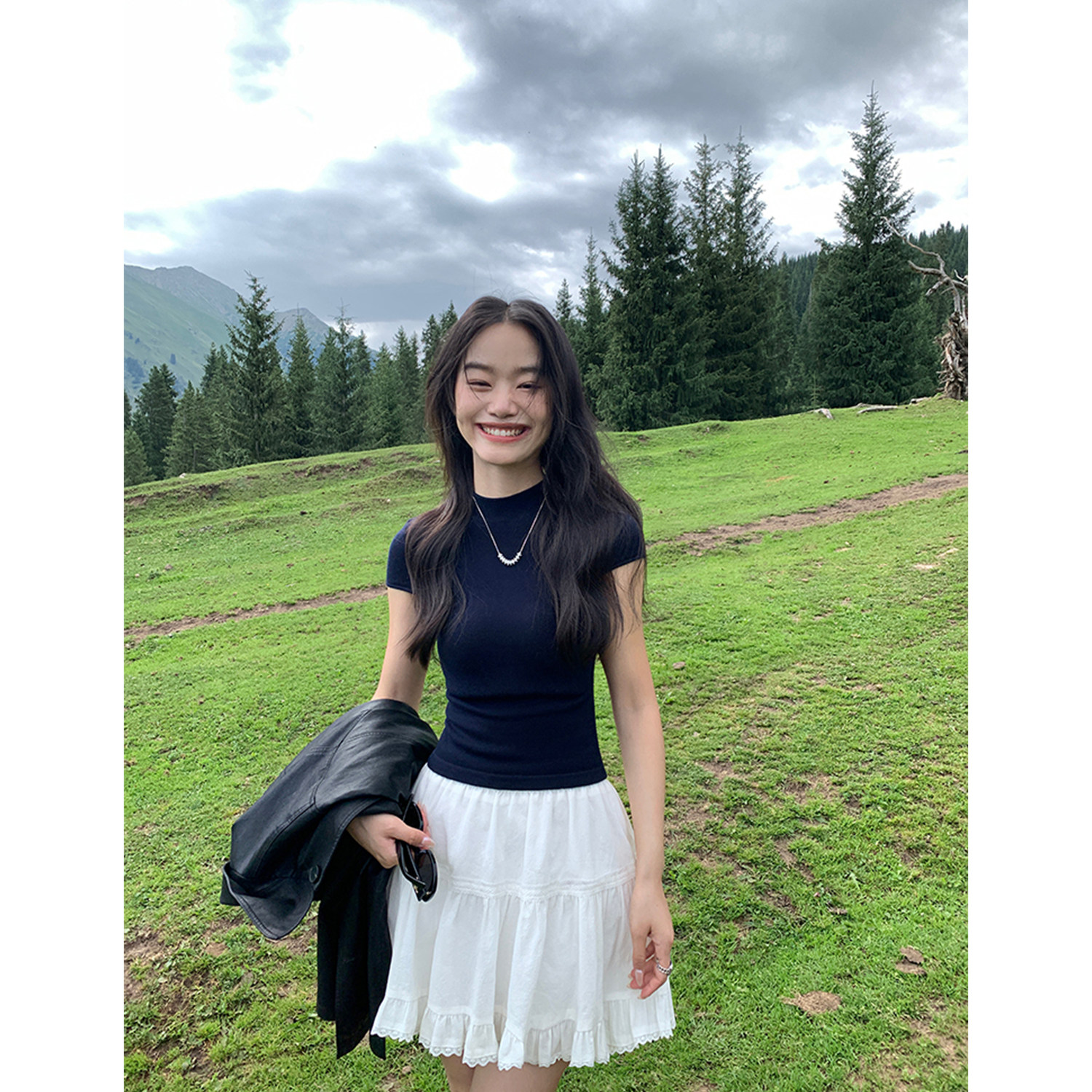 pusumede Милая белая приталенная юбка, французский стиль, высокая талия, А-силуэт