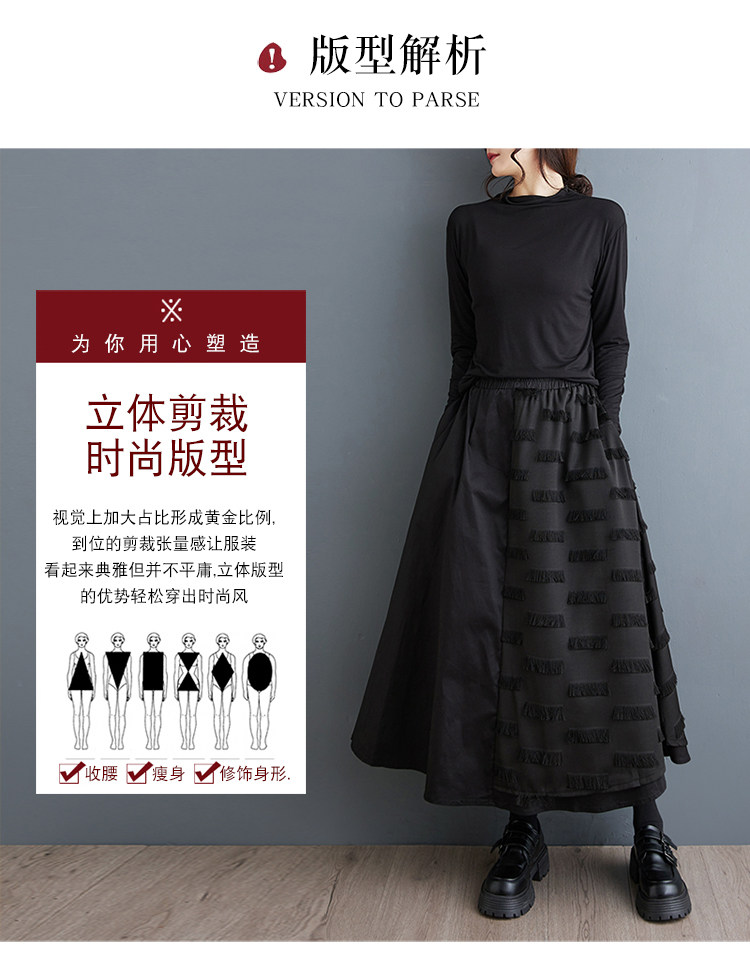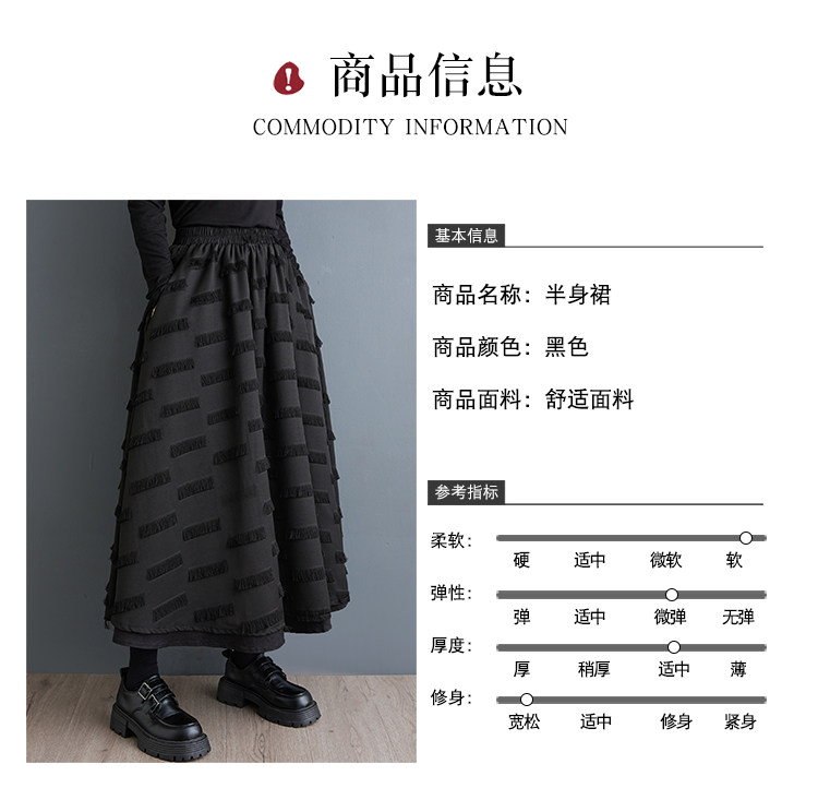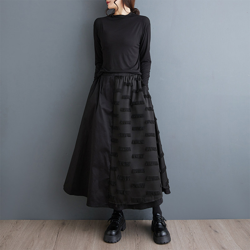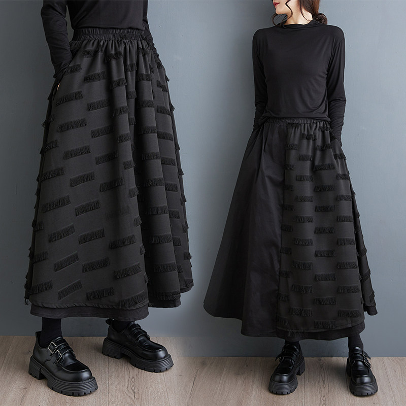 Черная осенняя юбка, свободный крой, А-силуэт