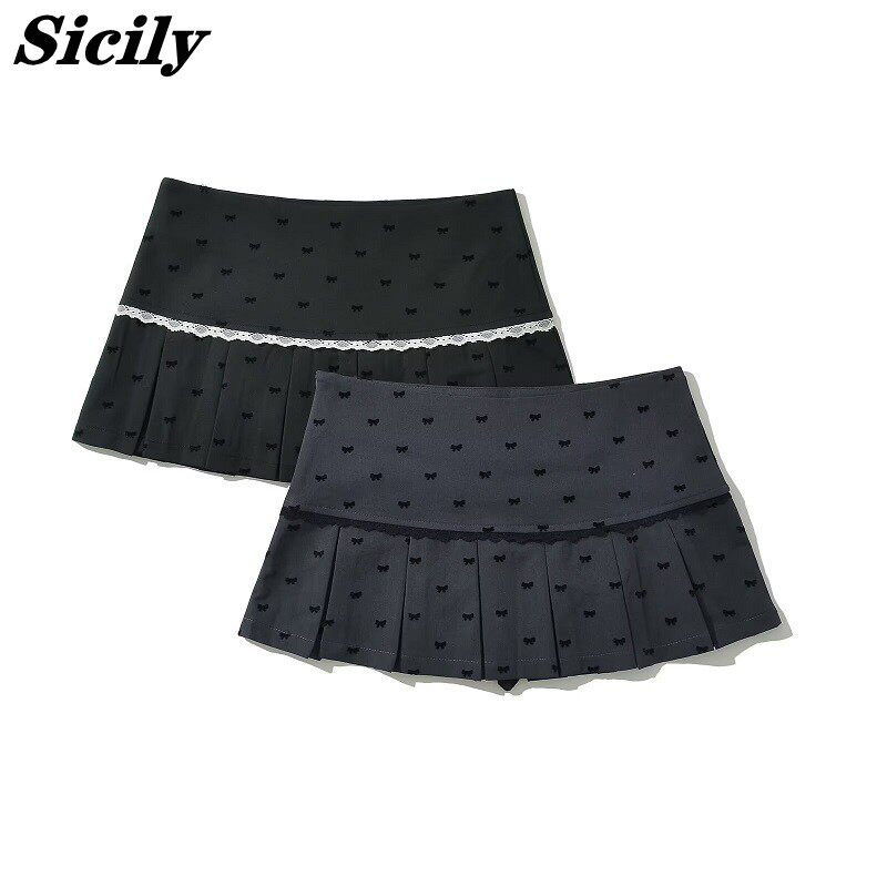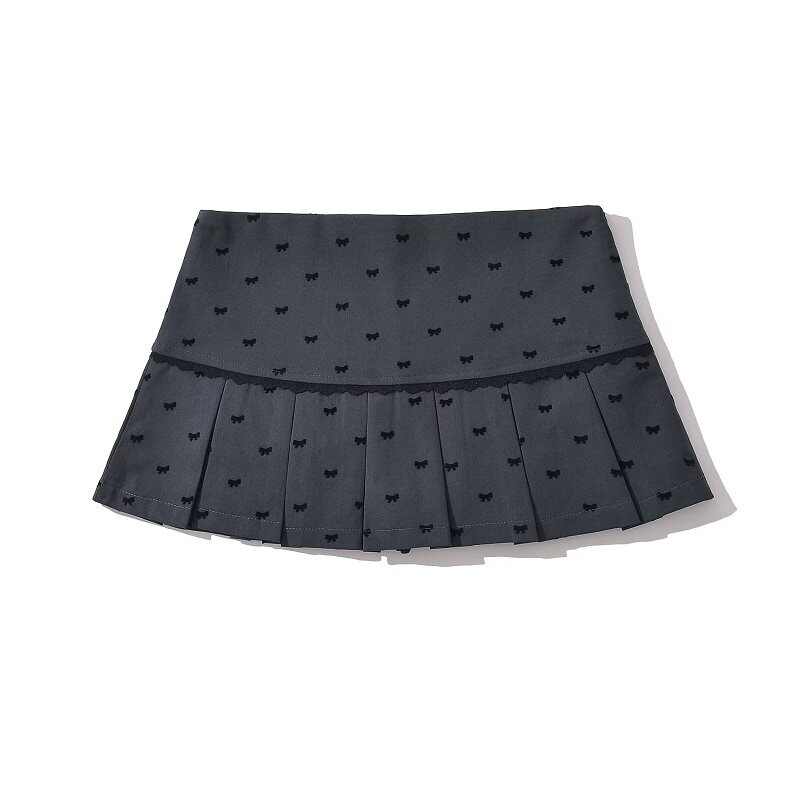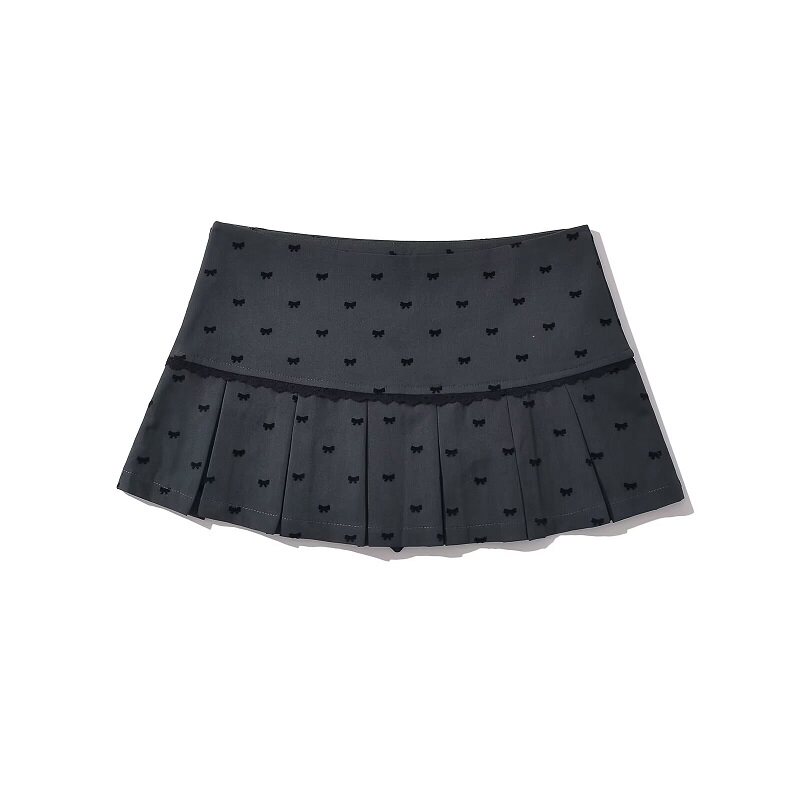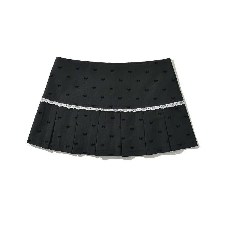 Кружевная осенняя юбка в складку с бантиком, защитное белье, мини-юбка, А-силуэт