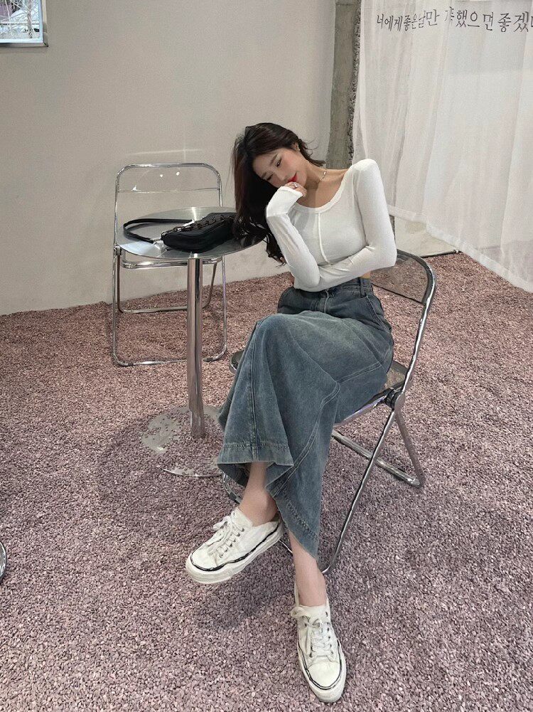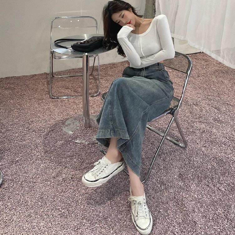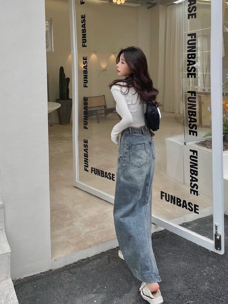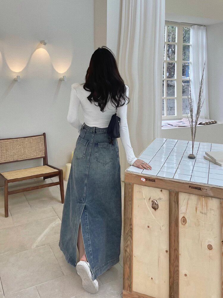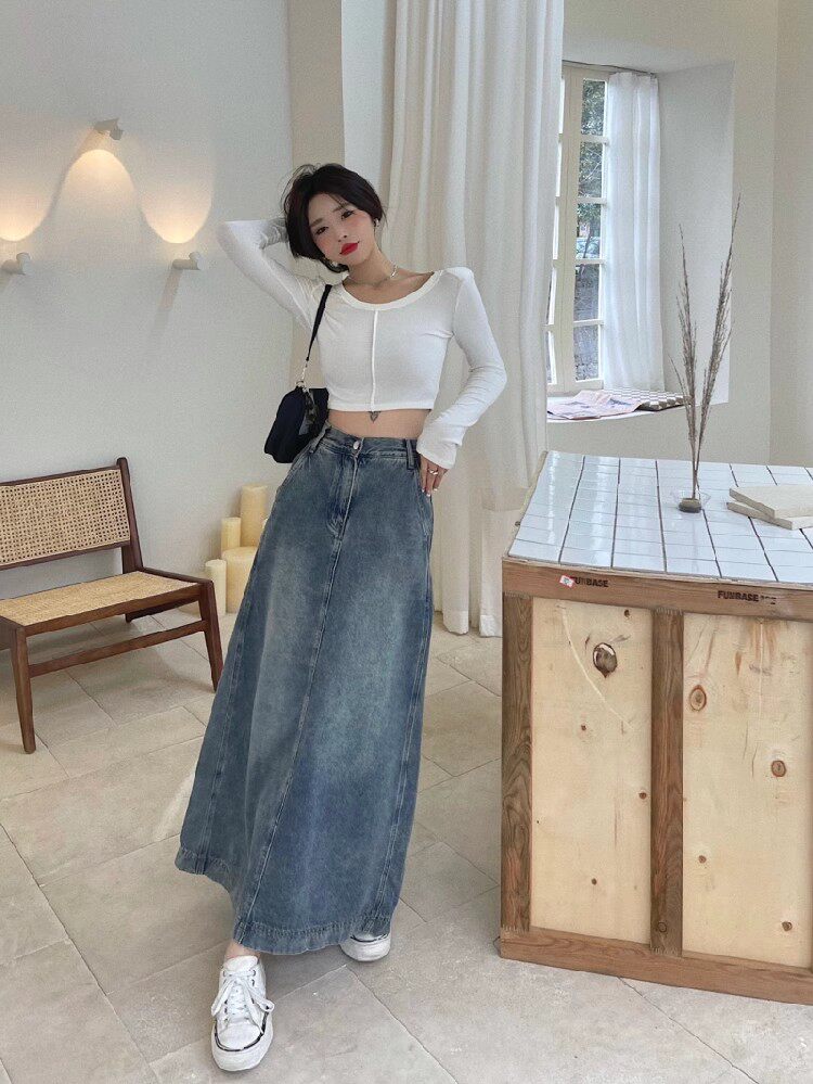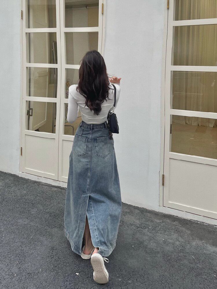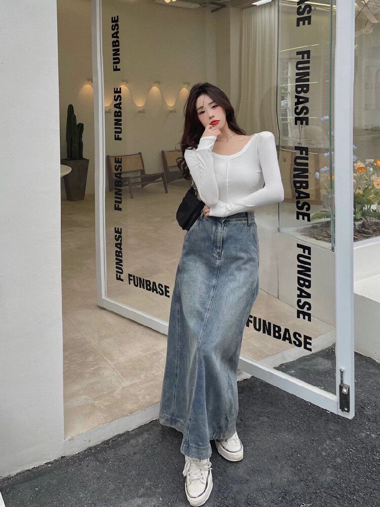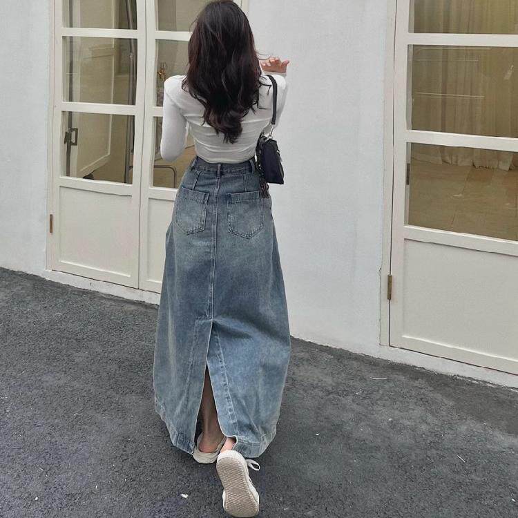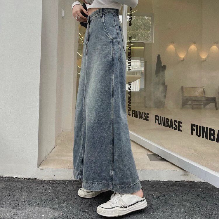 Осенняя джинсовая юбка, длинная юбка, размер, для формы тела «груша», средней длины