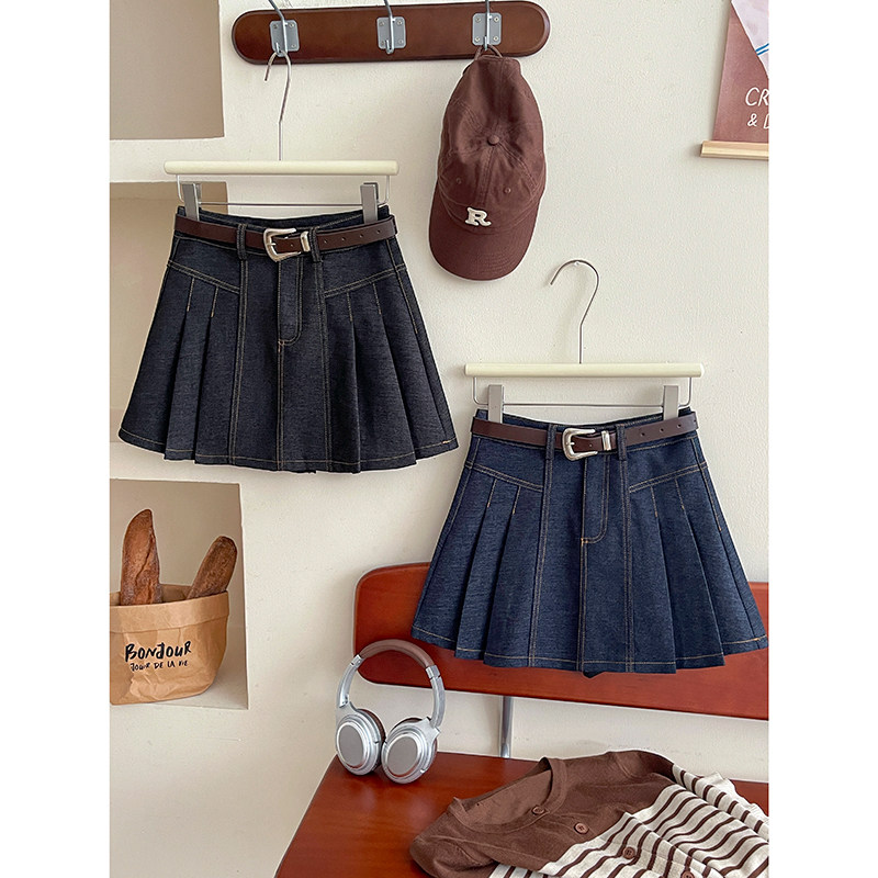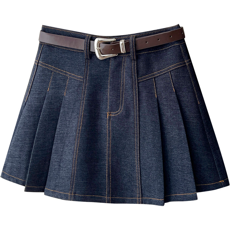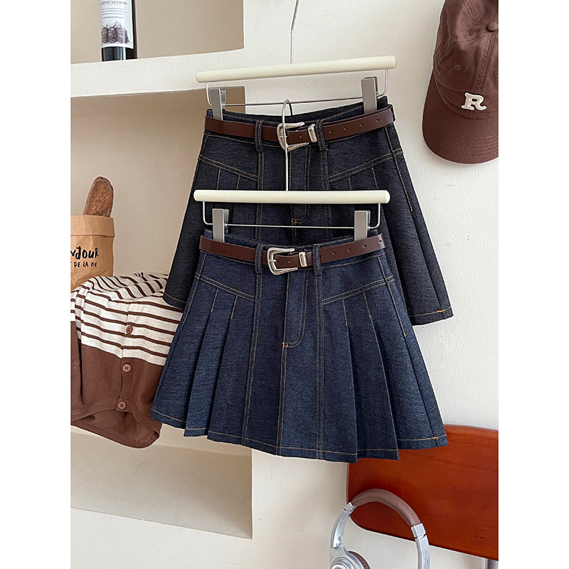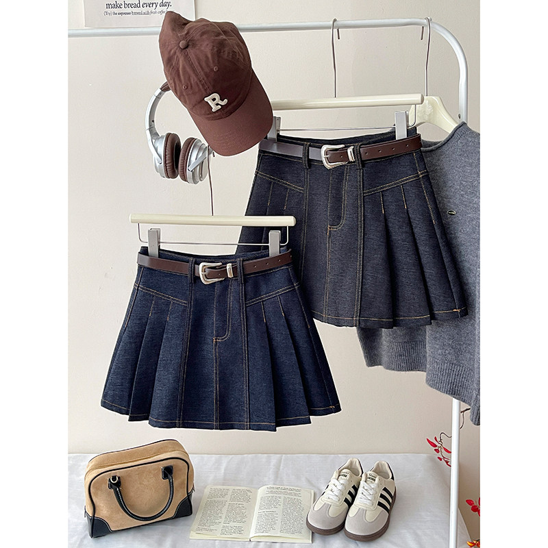 Ретро джинсовая юбка в складку для отдыха, защитное белье, А-силуэт