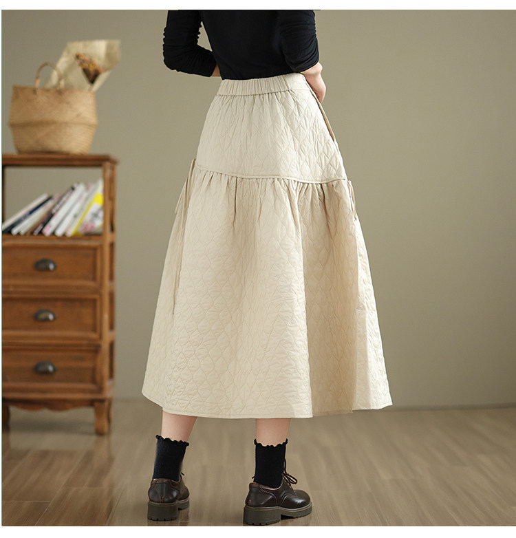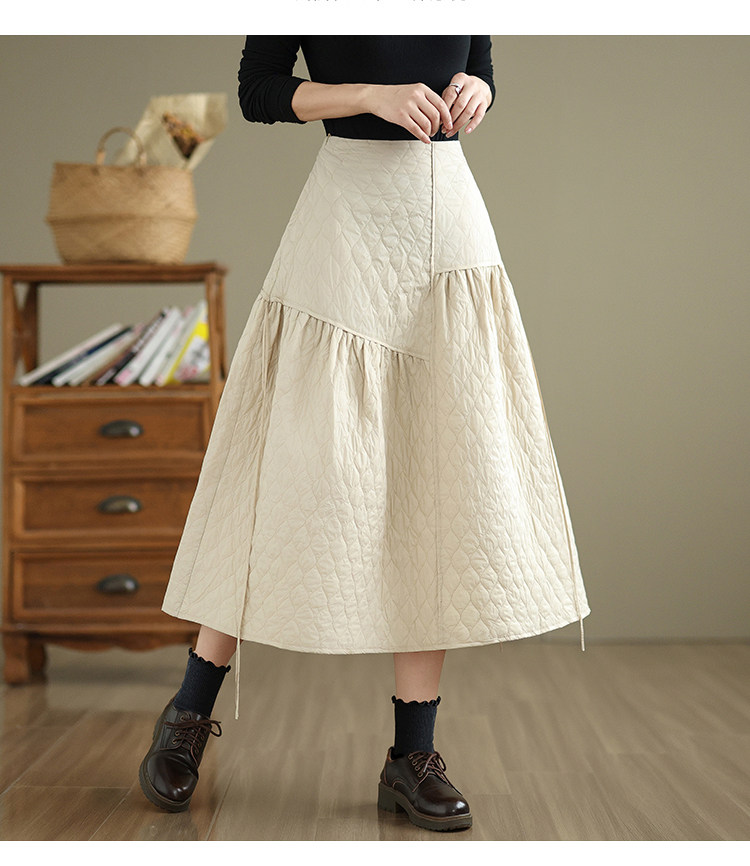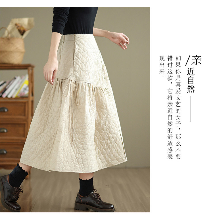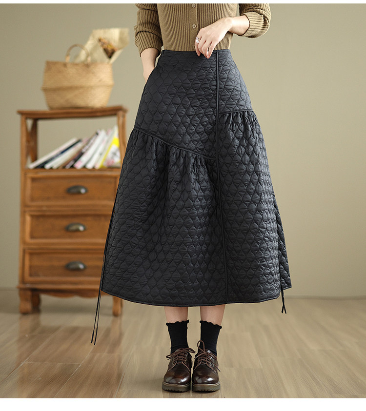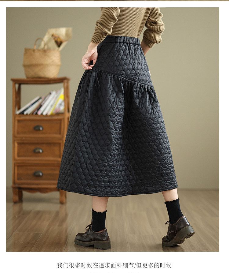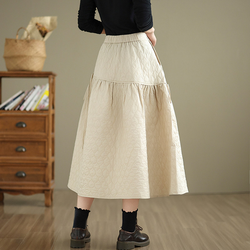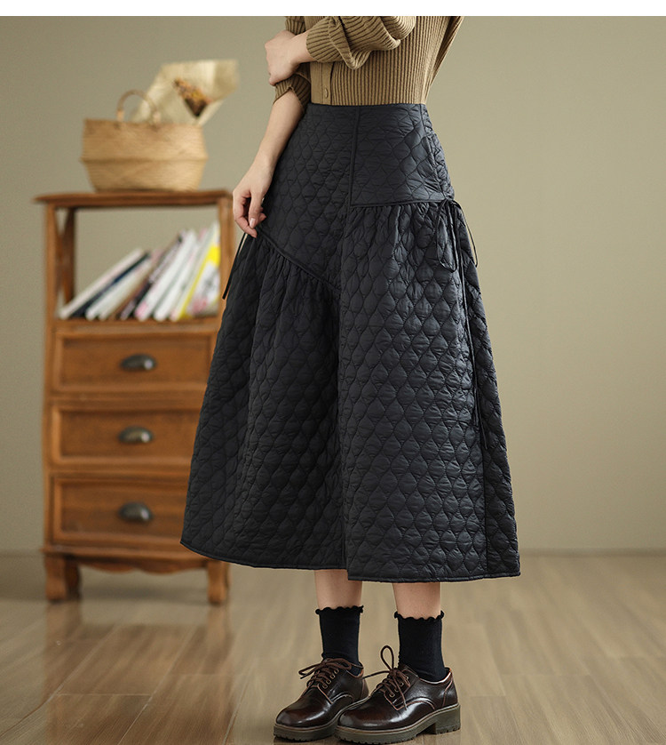 Стеганая демисезонная легкая и тонкая юбка с ромбовидным узором с пухом, свободный крой, А-силуэт