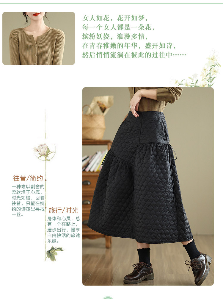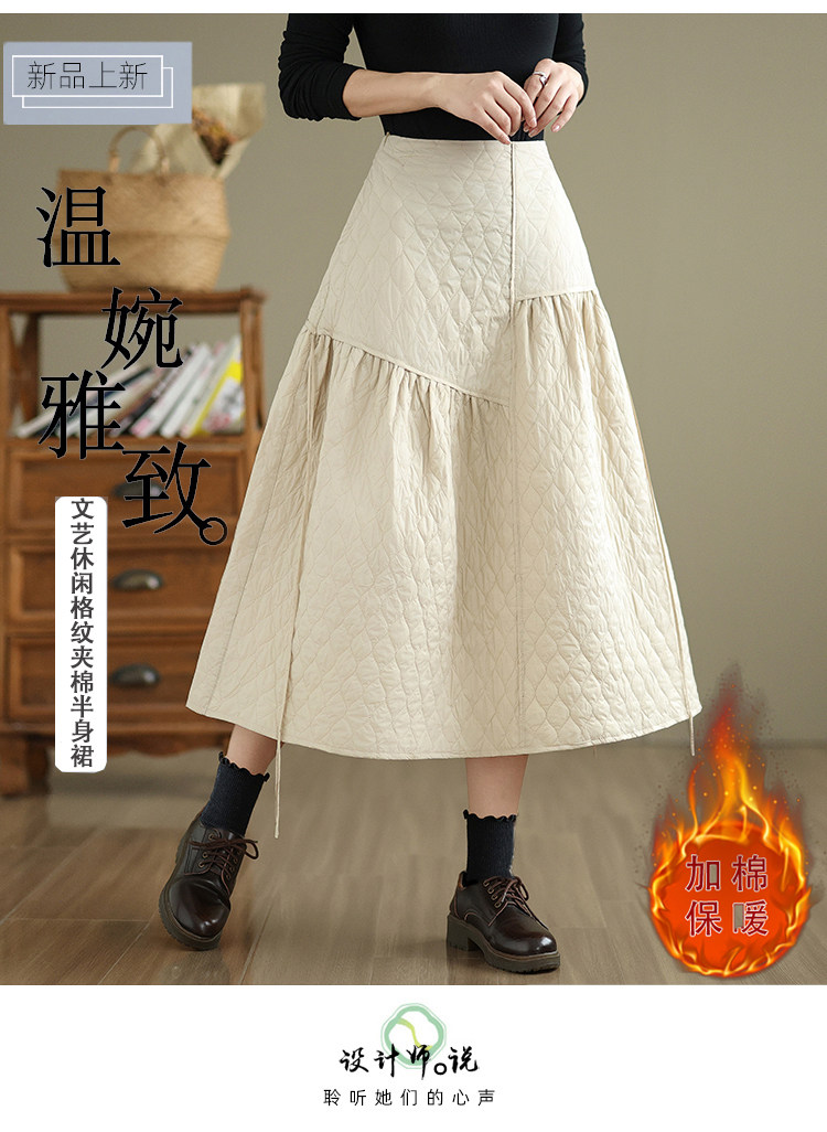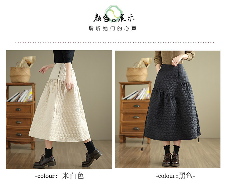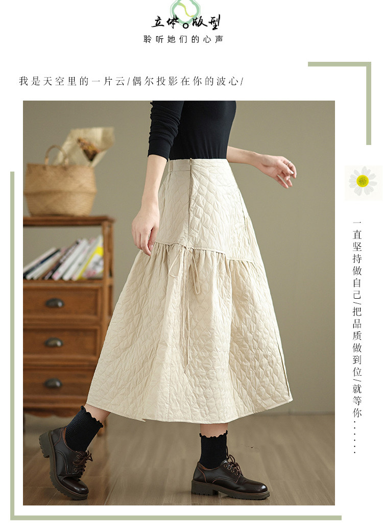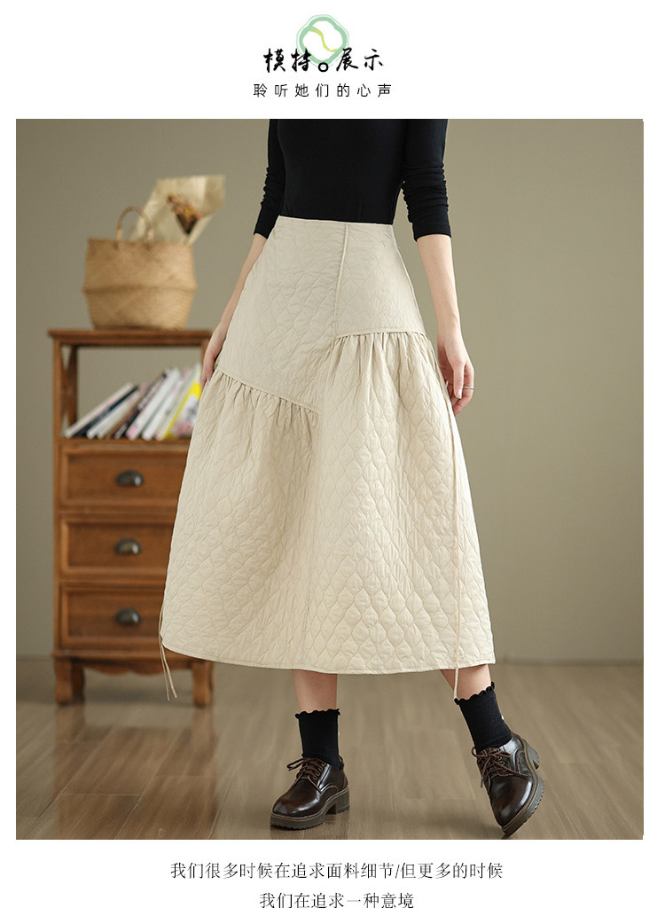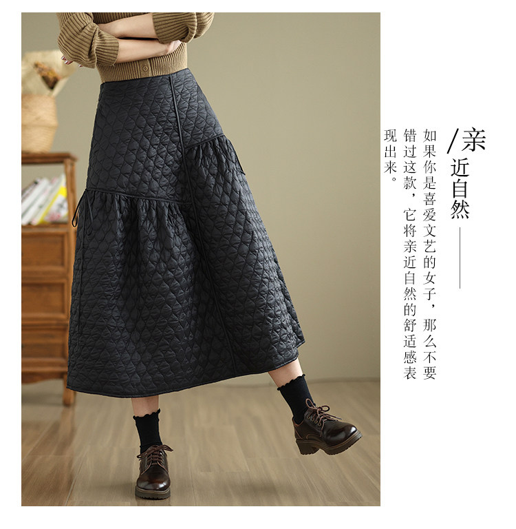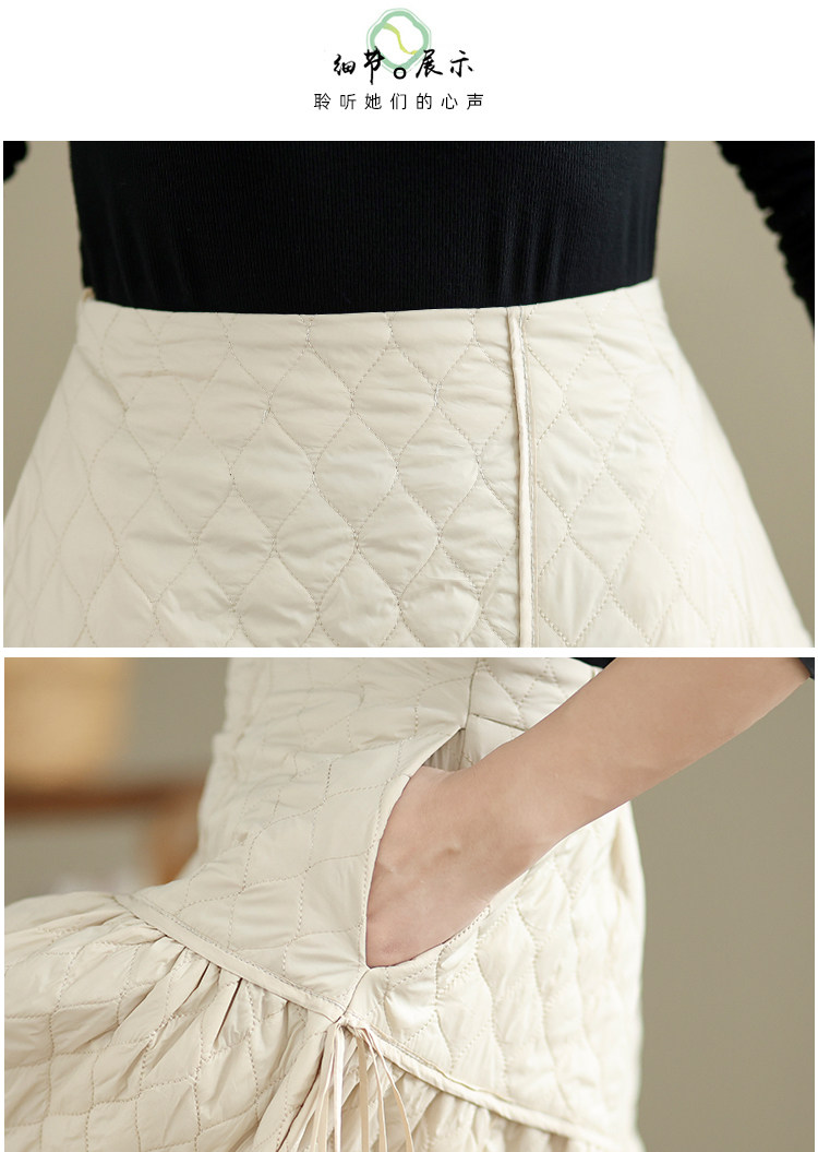 Стеганая демисезонная легкая и тонкая юбка с ромбовидным узором с пухом, свободный крой, А-силуэт