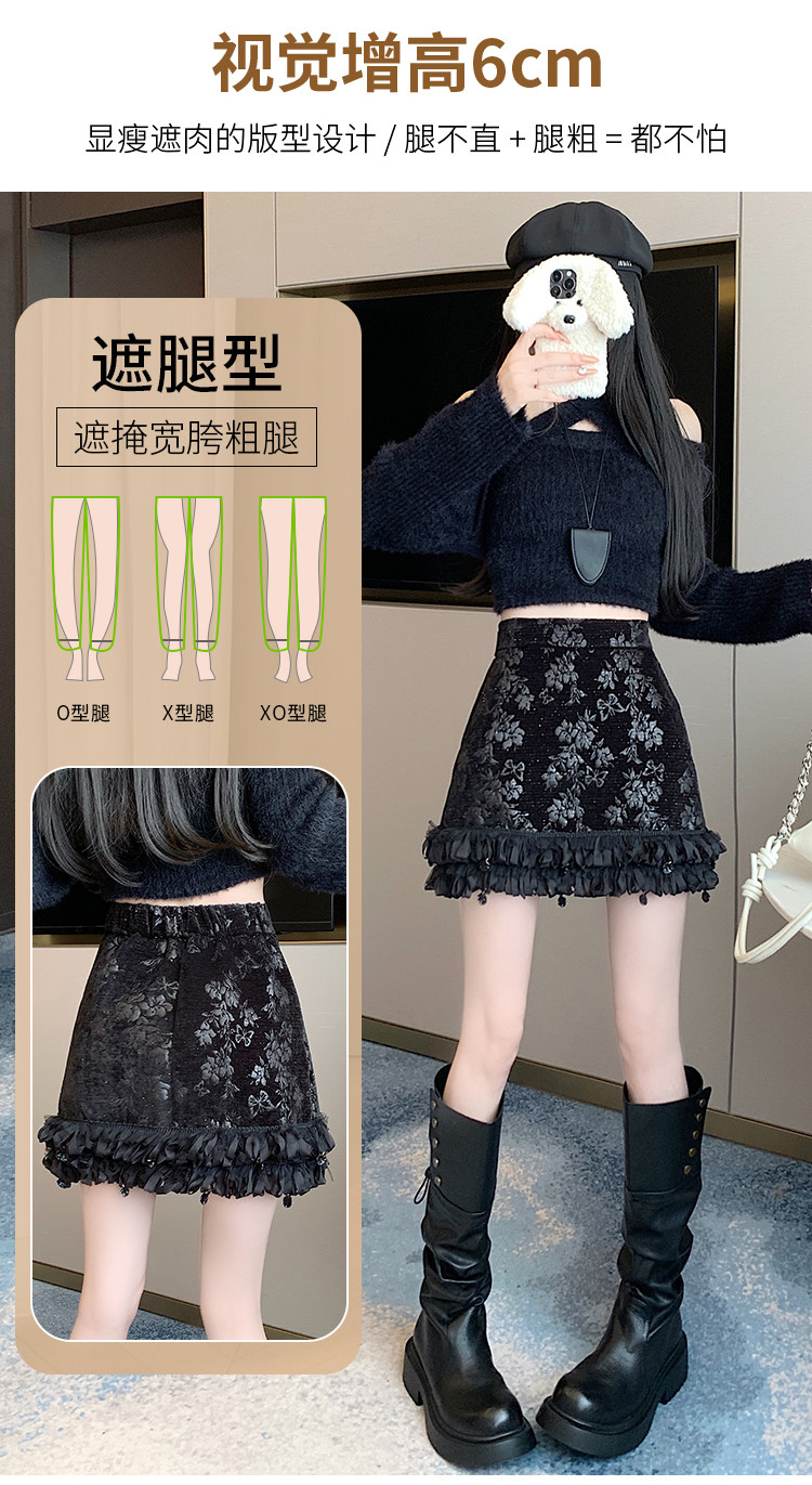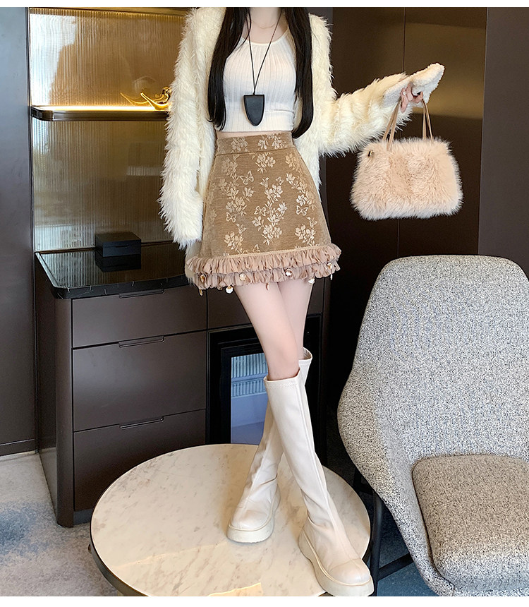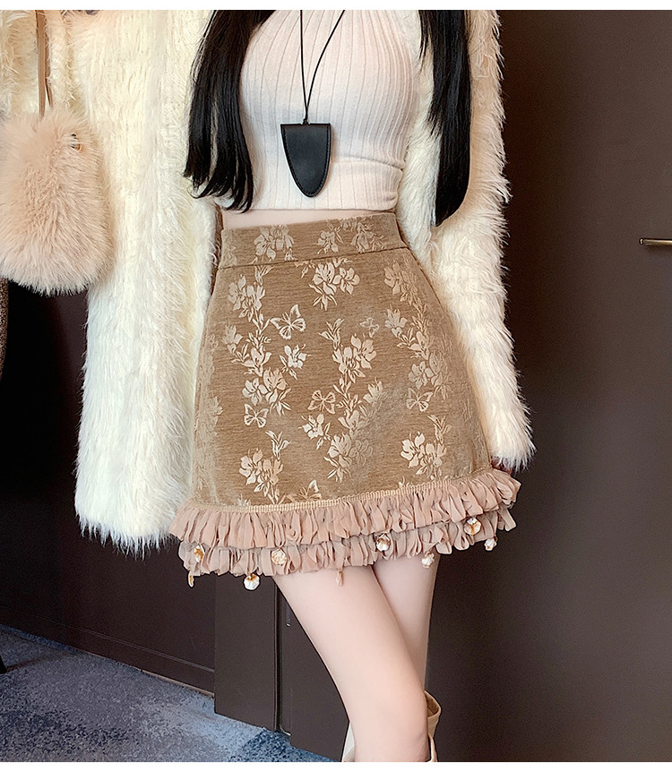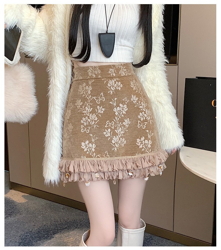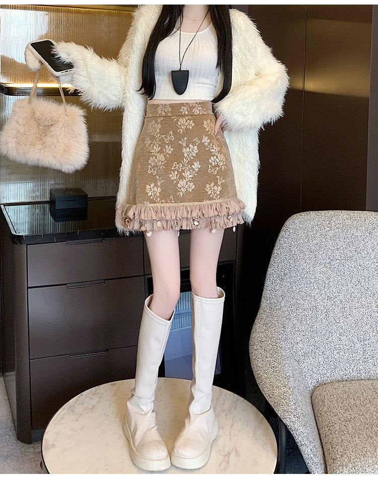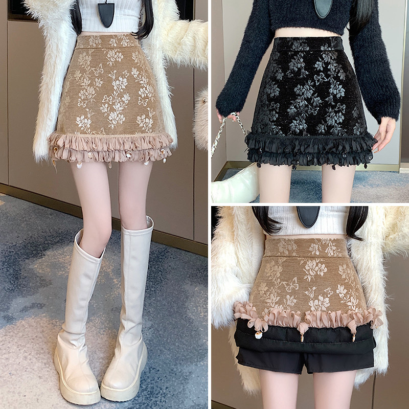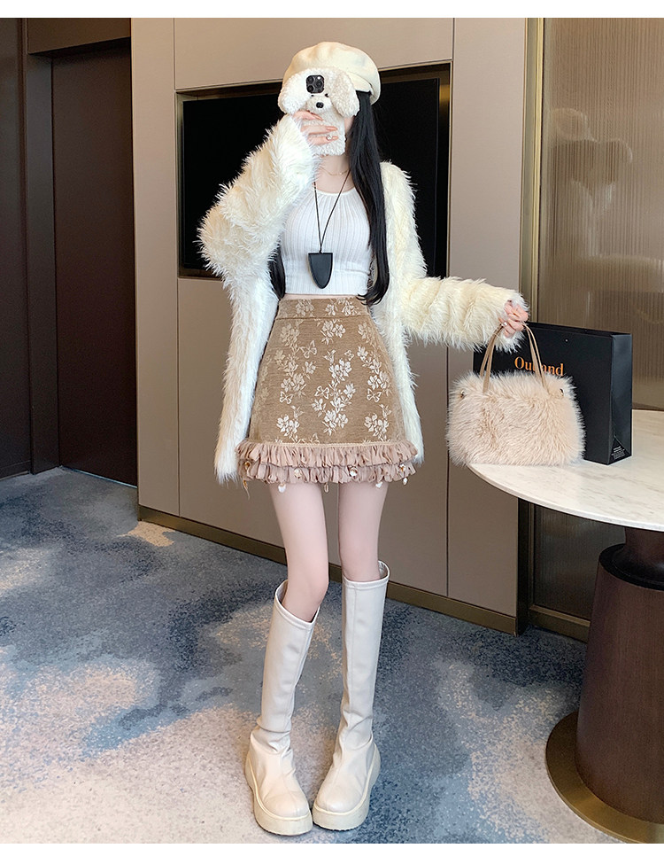 Зимняя юбка, мини-юбка, французский стиль, с вышивкой, высокая талия, А-силуэт, подходит для подростков