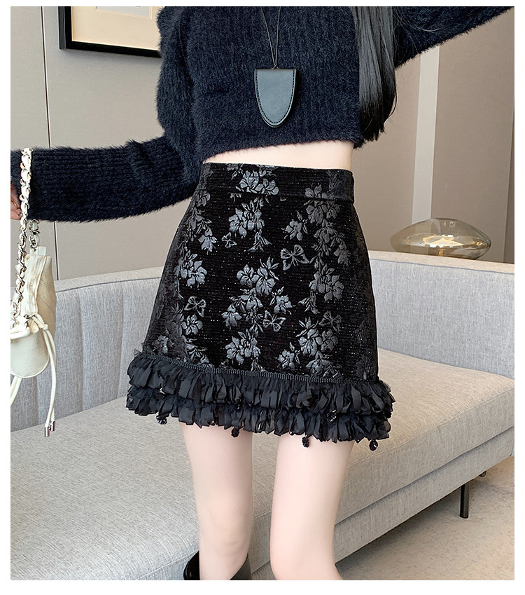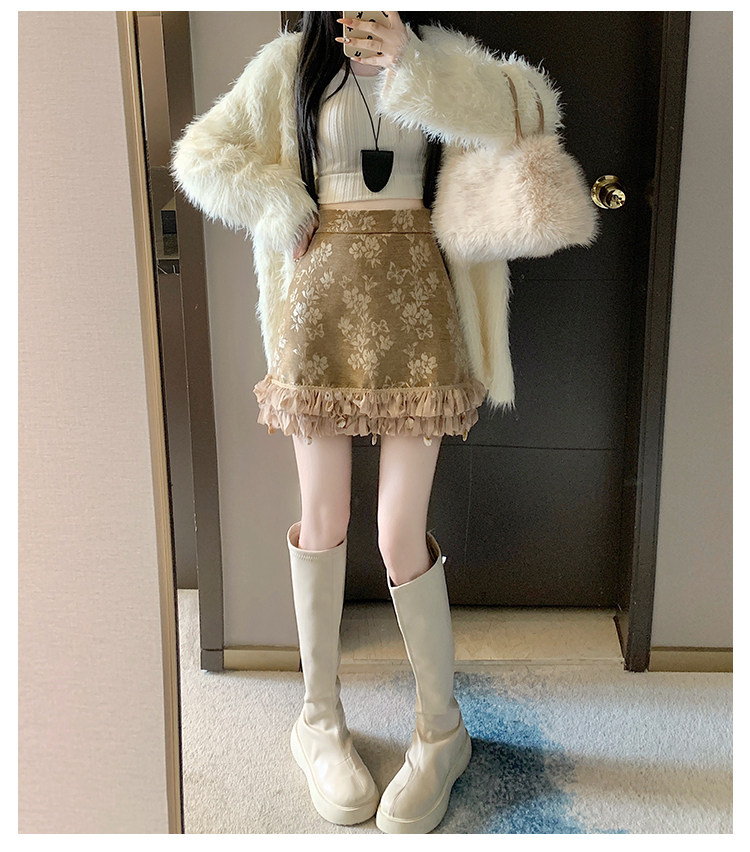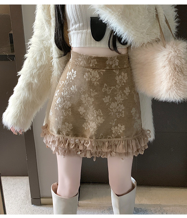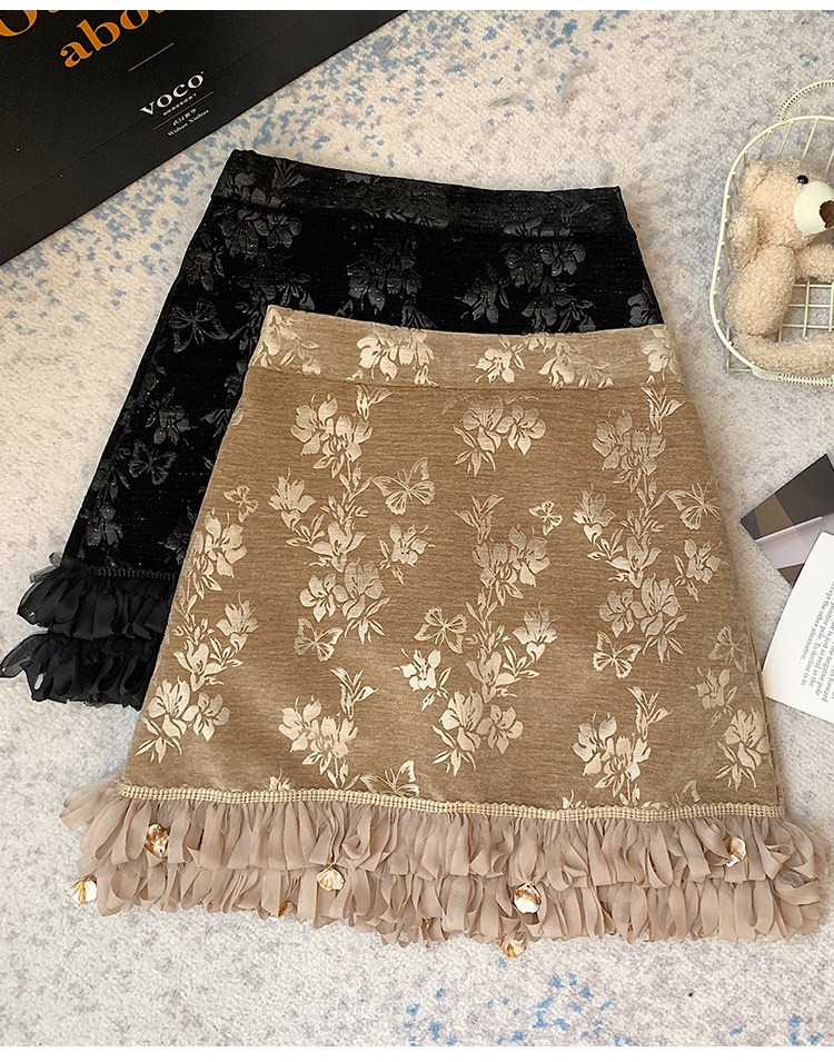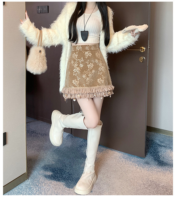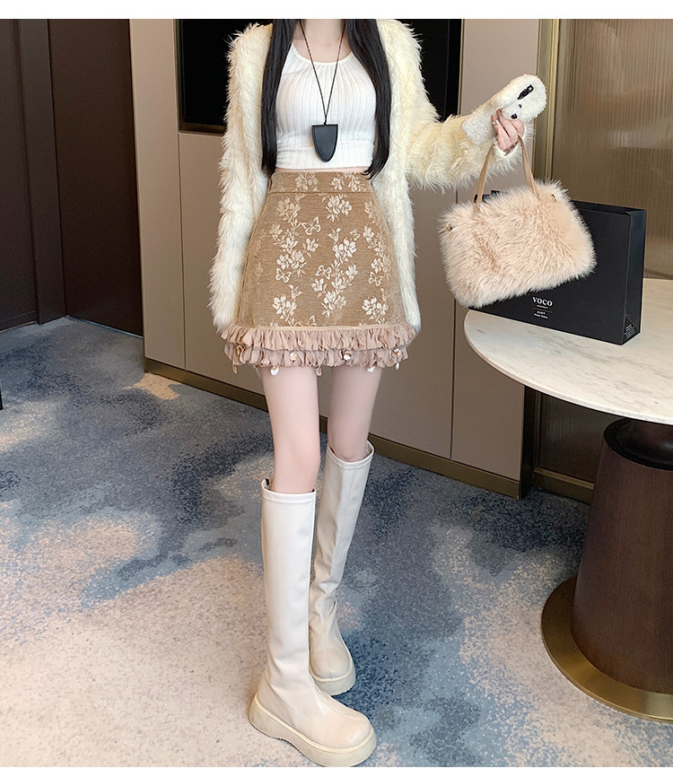 Зимняя юбка, мини-юбка, французский стиль, с вышивкой, высокая талия, А-силуэт, подходит для подростков