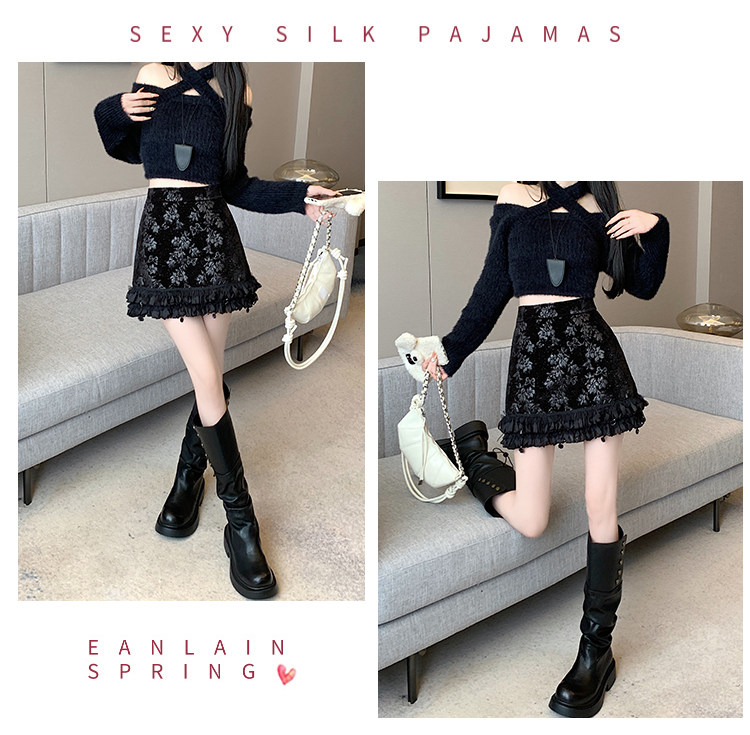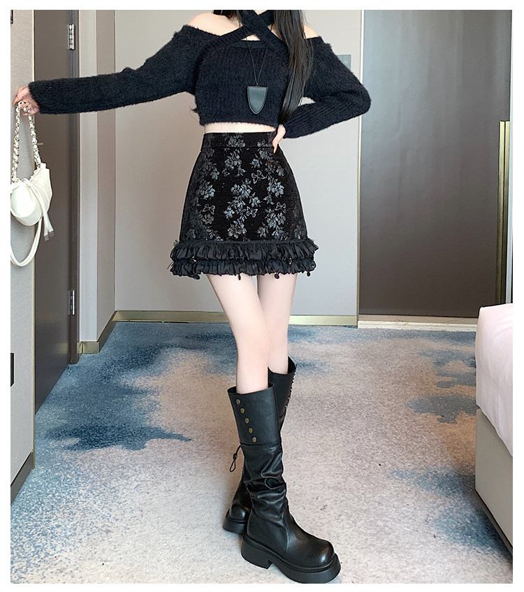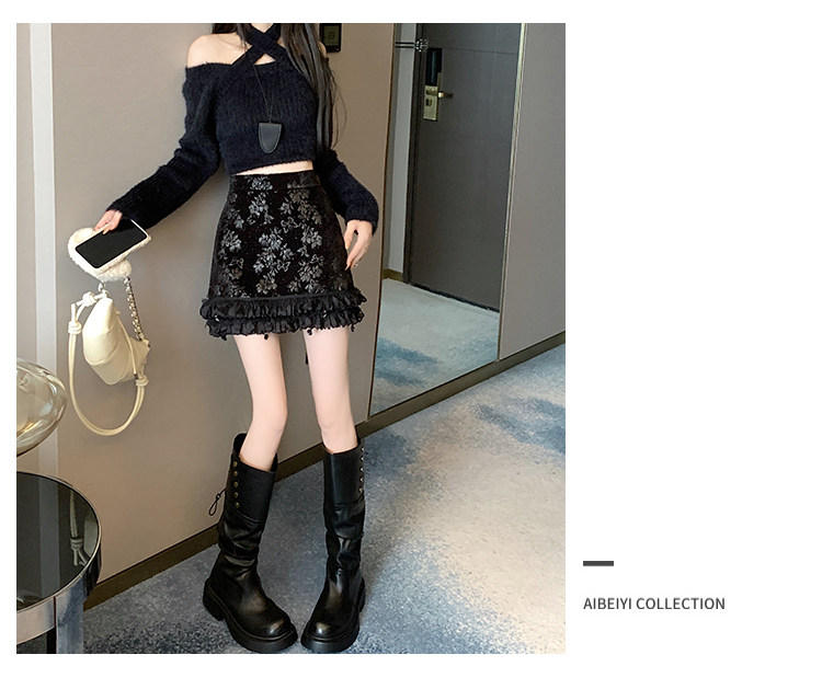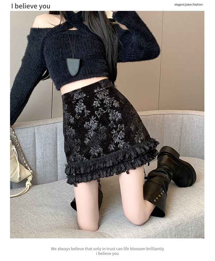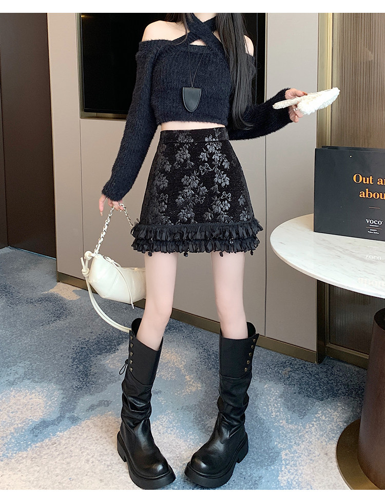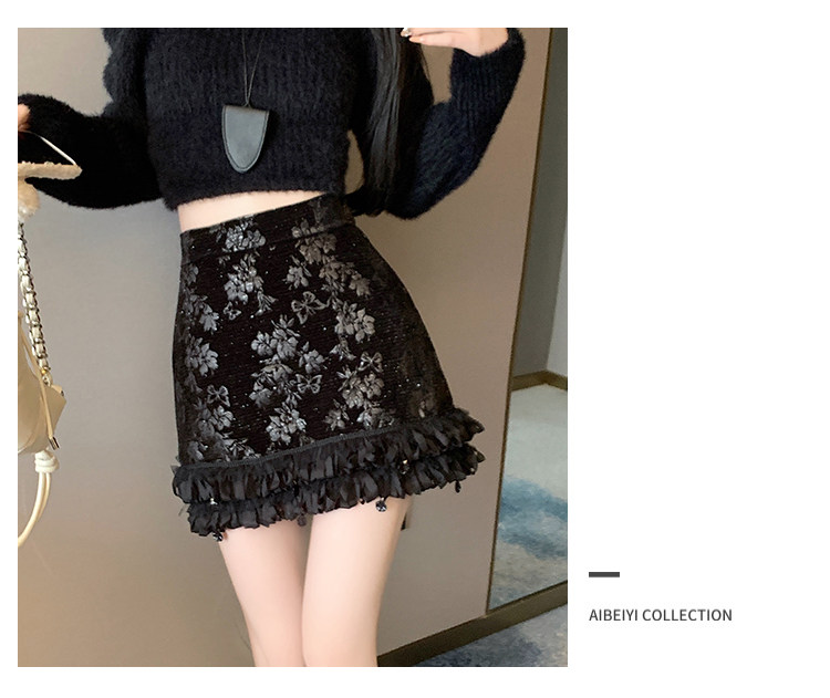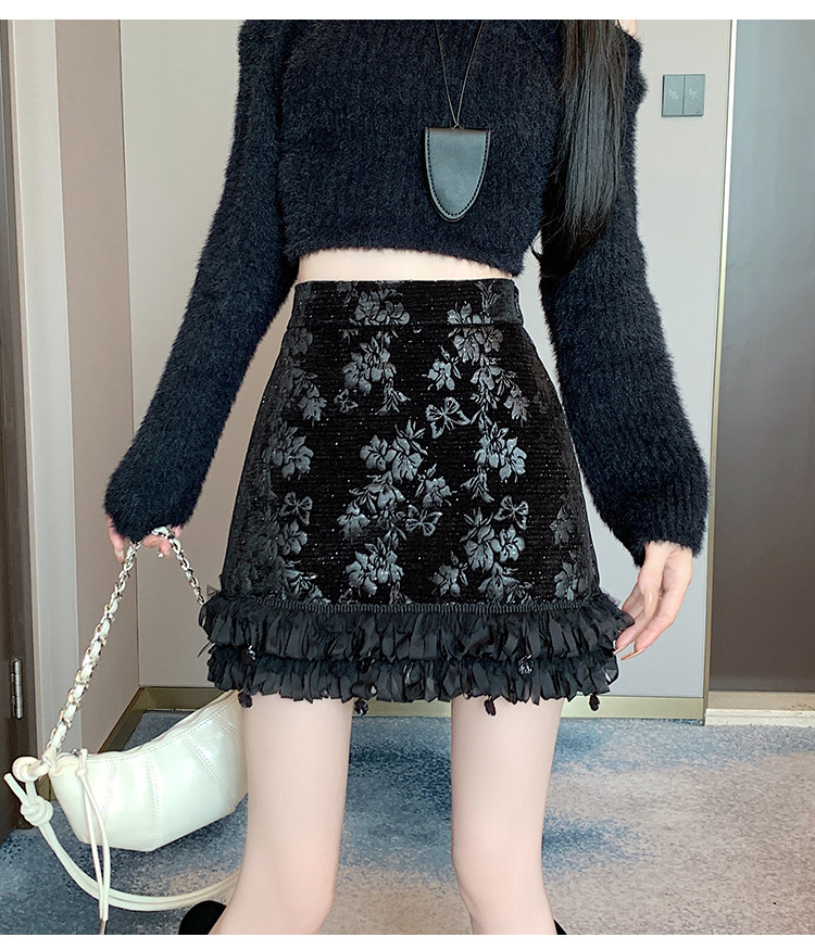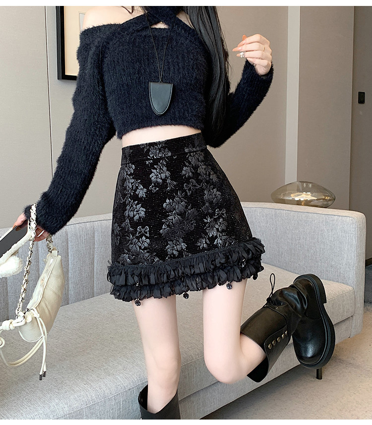 Зимняя юбка, мини-юбка, французский стиль, с вышивкой, высокая талия, А-силуэт, подходит для подростков