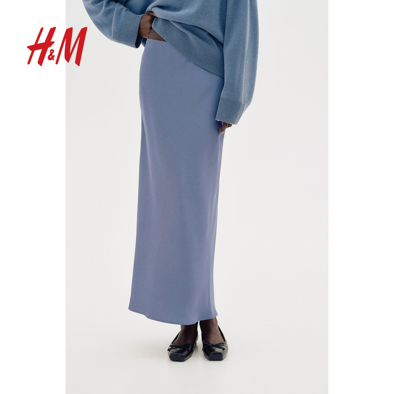 HM женская юбка, осенняя модная мягкая драпированная атласная блестящая длинная юбка 1184662