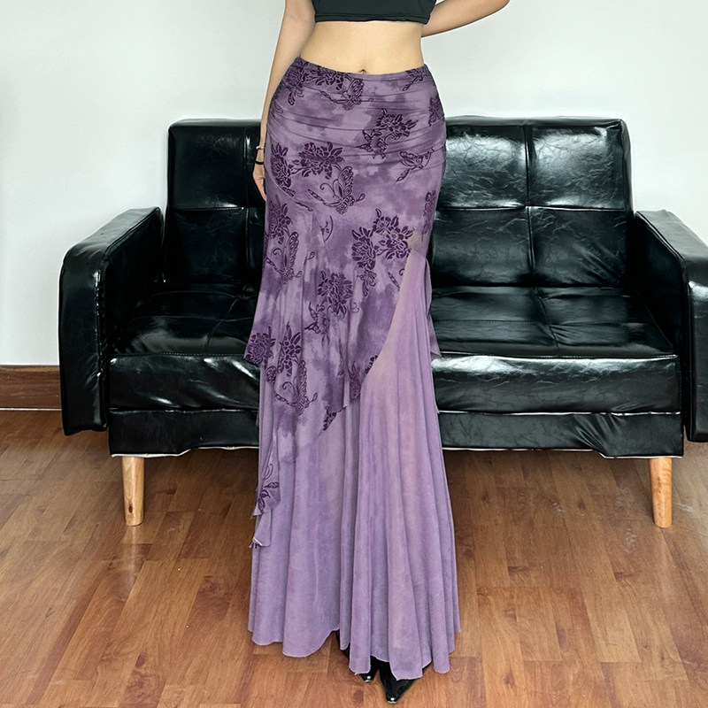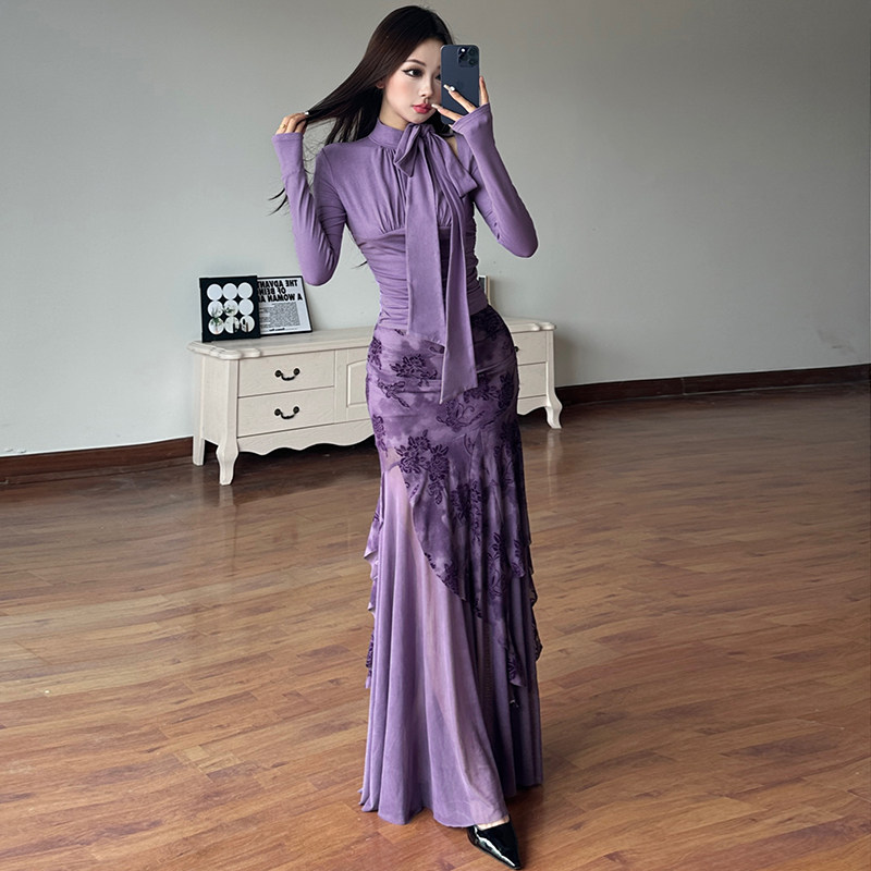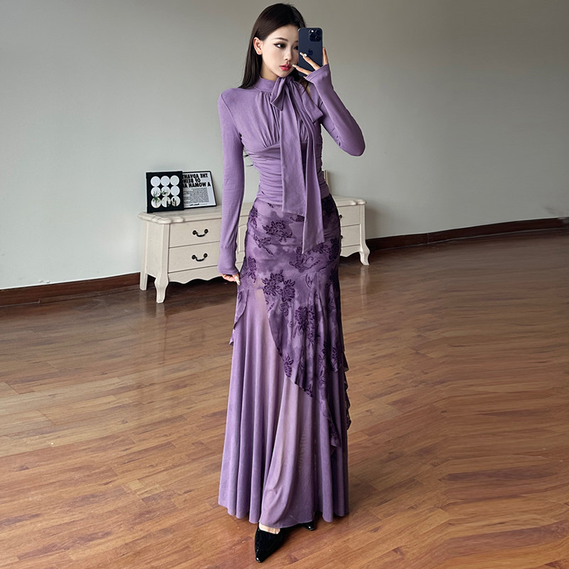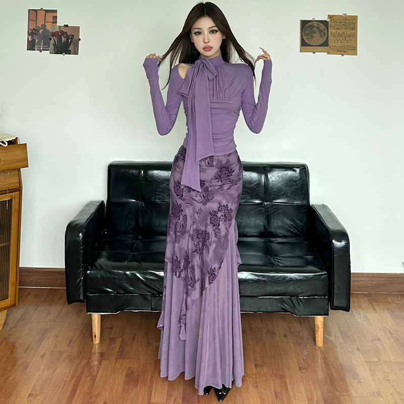 WEEKEEP Элегантная сиреневая длинная юбка, шарф, ремень, комплект, крой «рыбий хвост»