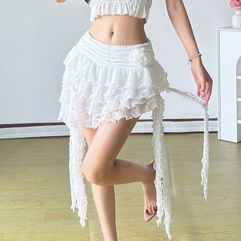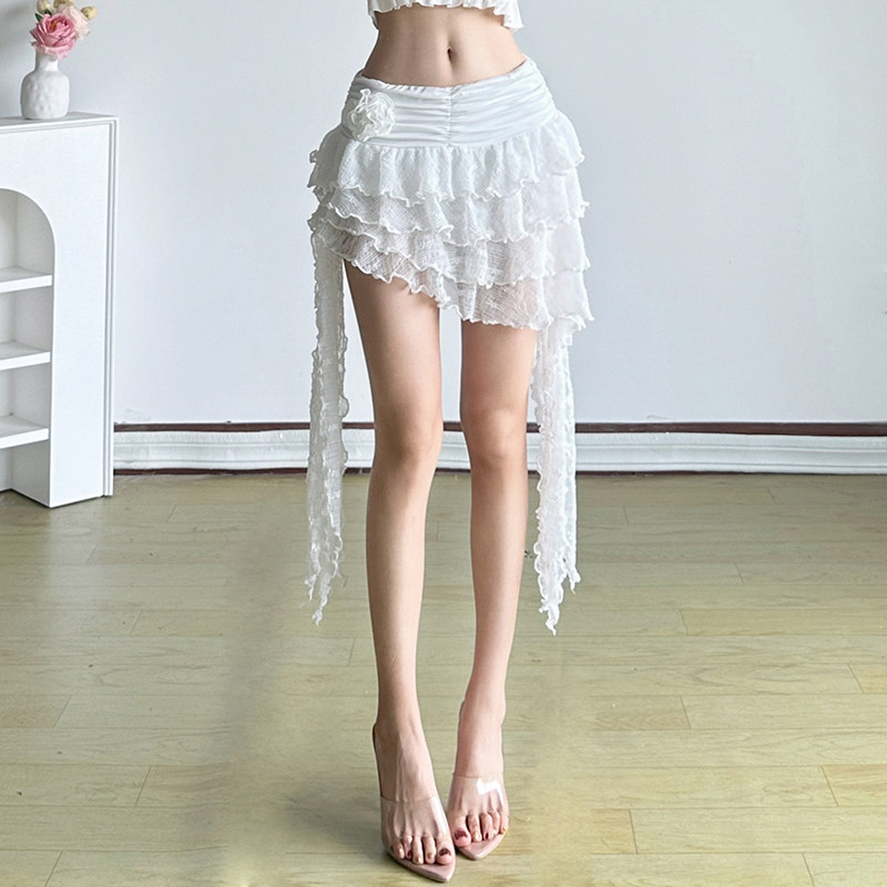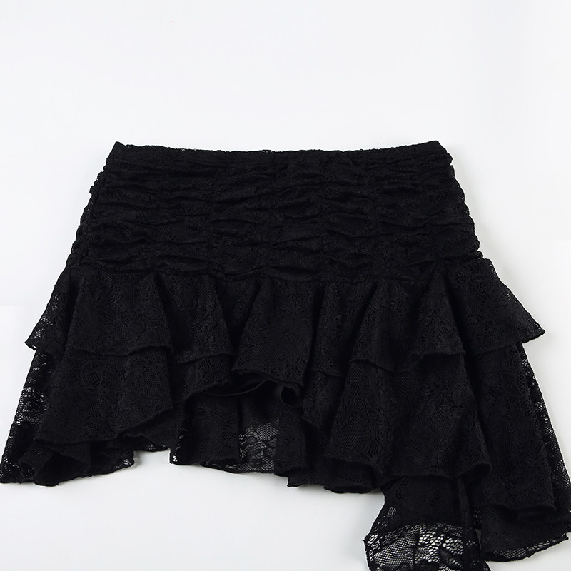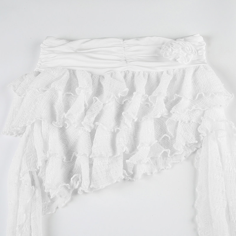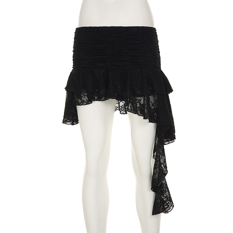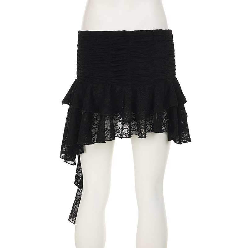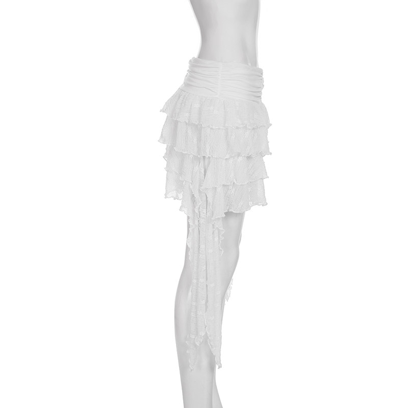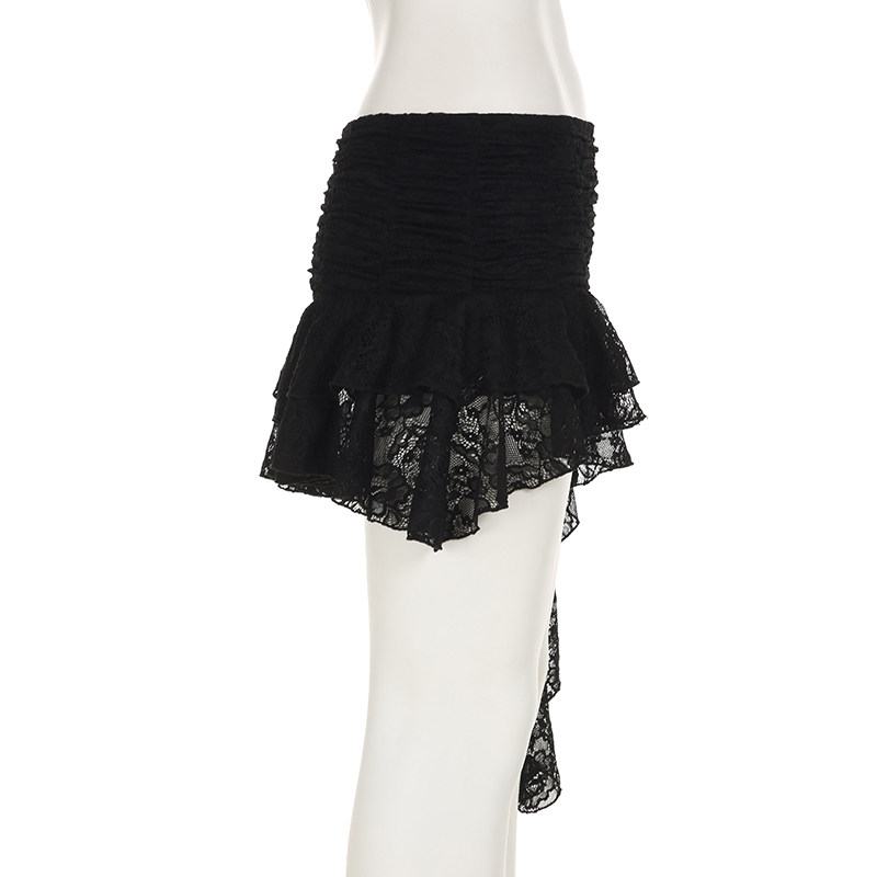 ROCKMORE [Pure Sexy] Юбка с рюшами и лентой нерегулярного края, узкая юбка трапециевидной формы с заниженной талией