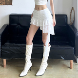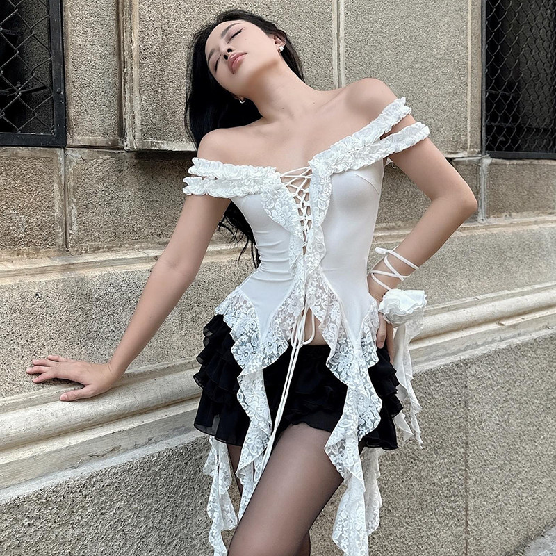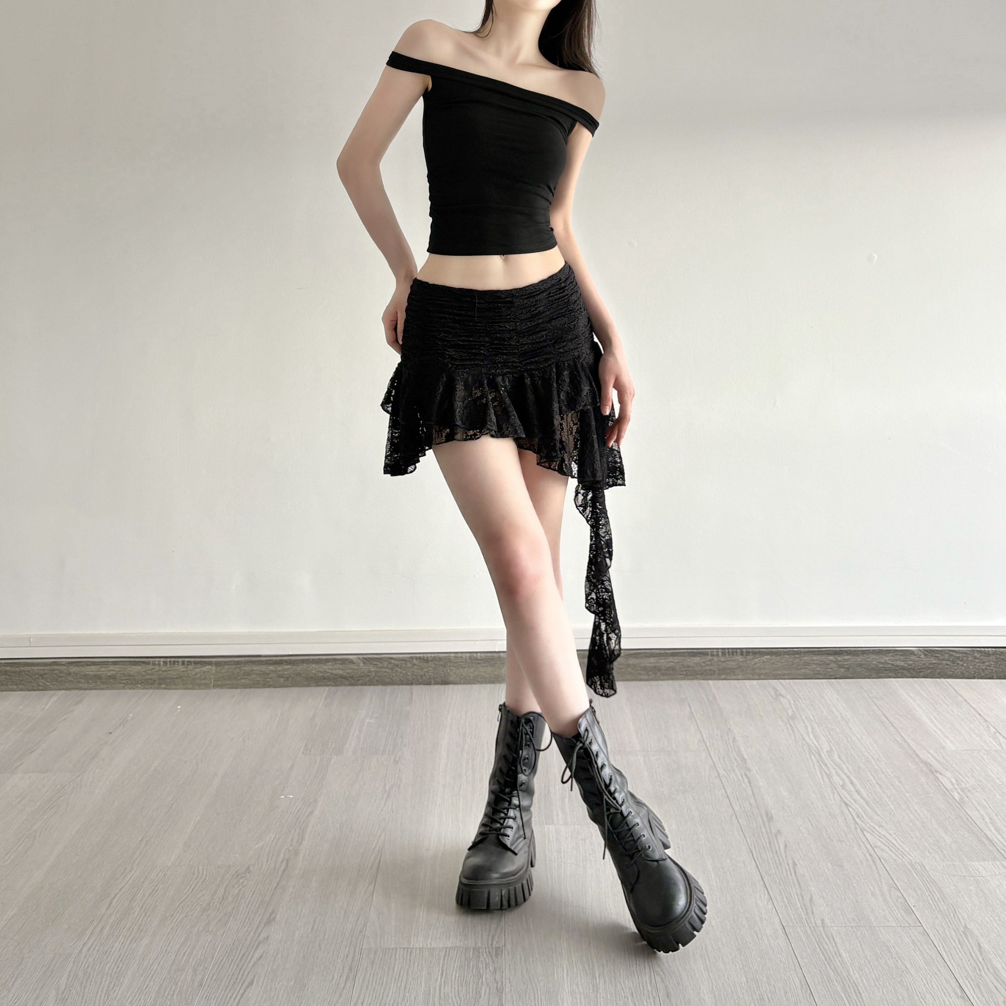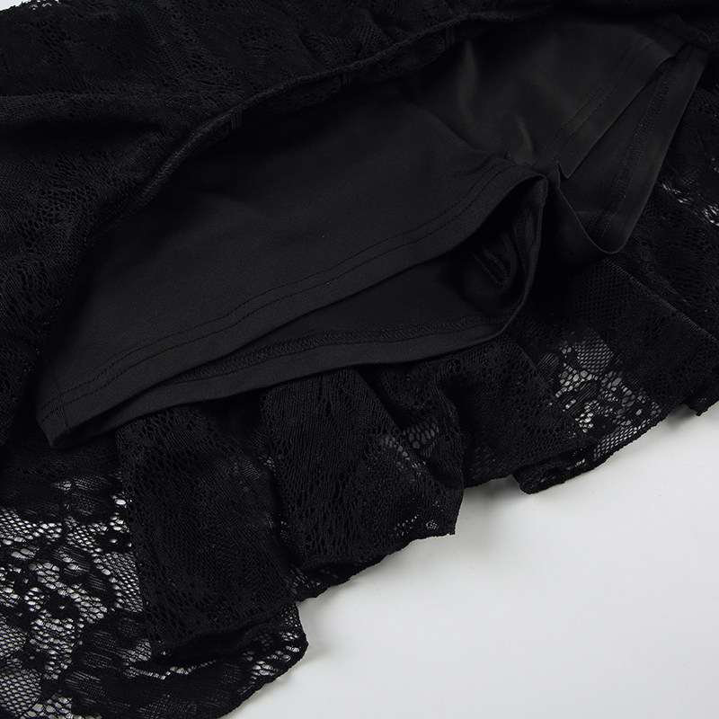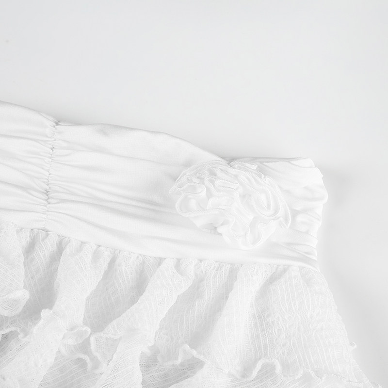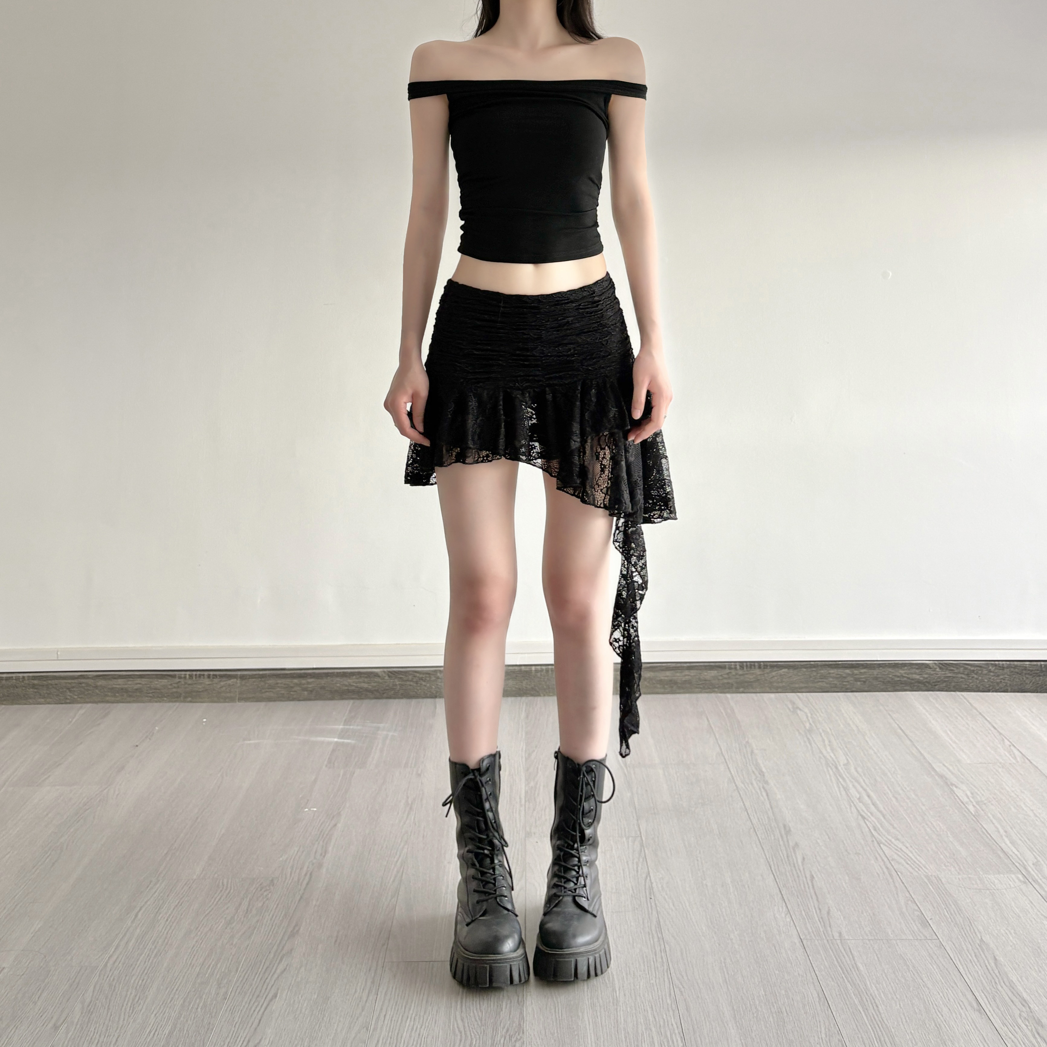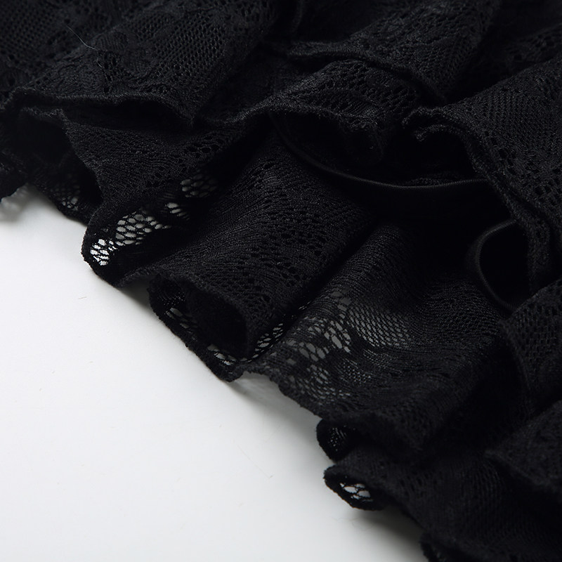 ROCKMORE [Pure Sexy] Юбка с рюшами и лентой нерегулярного края, узкая юбка трапециевидной формы с заниженной талией