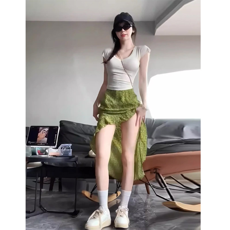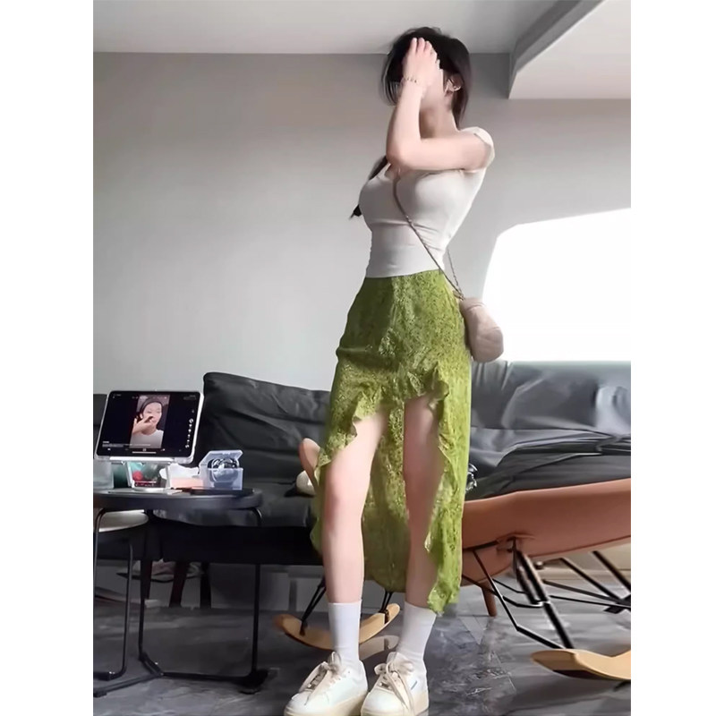 Зеленая летняя длинная юбка, цветочный принт, высокая талия, А-силуэт