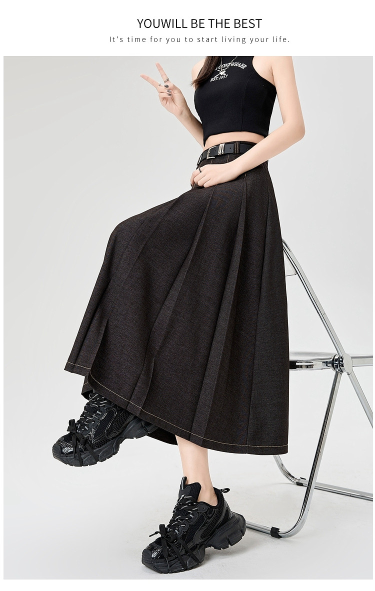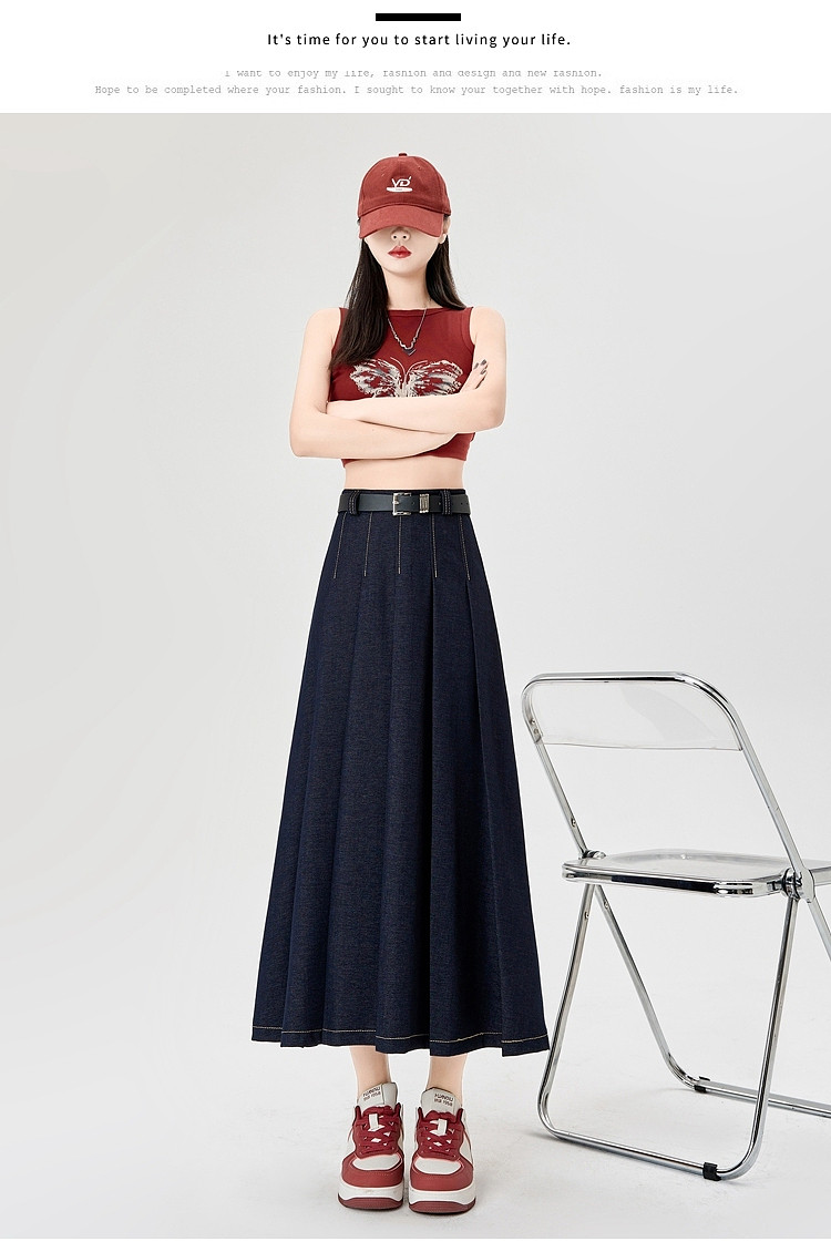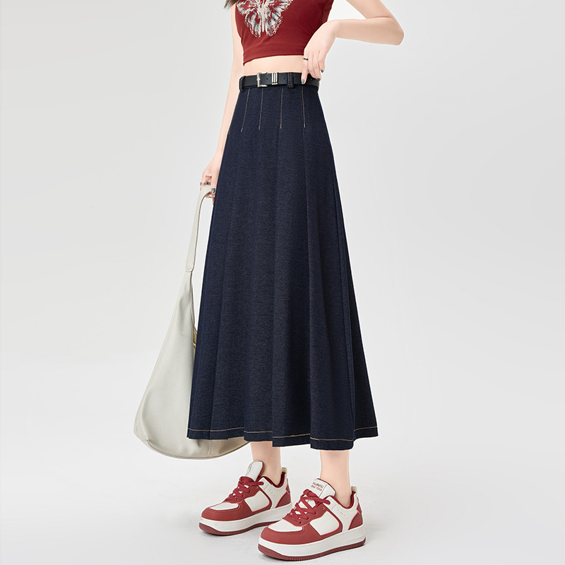 Осенняя джинсовая юбка, длинная юбка для школьников, для средней школы, свободный крой, высокая талия