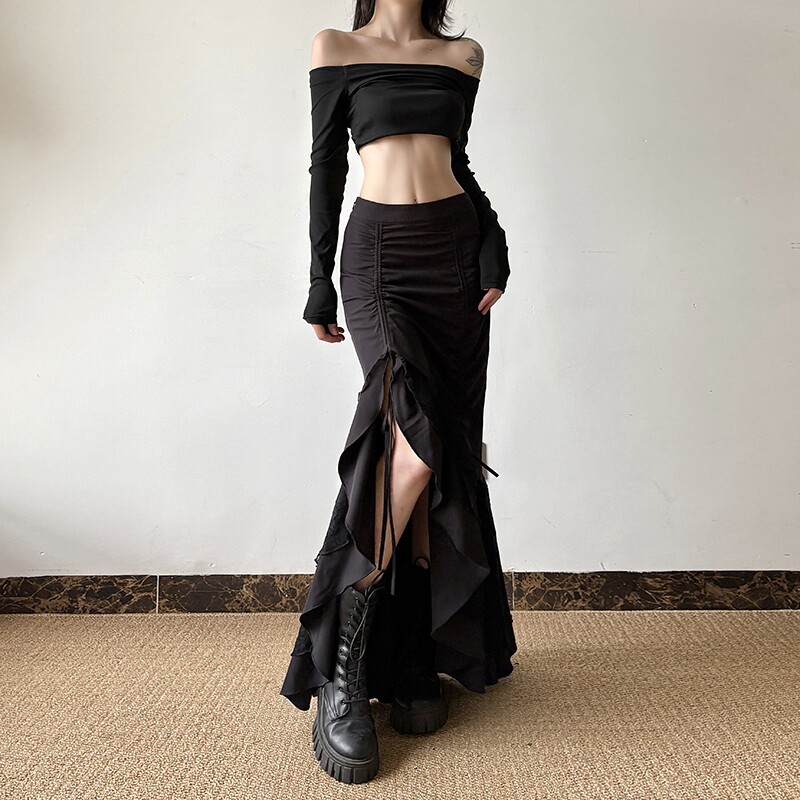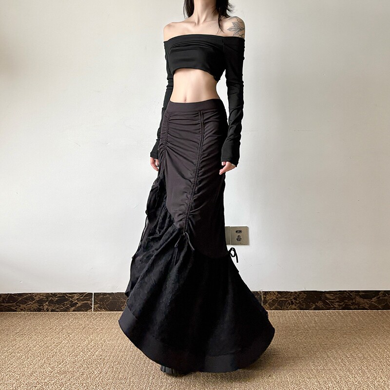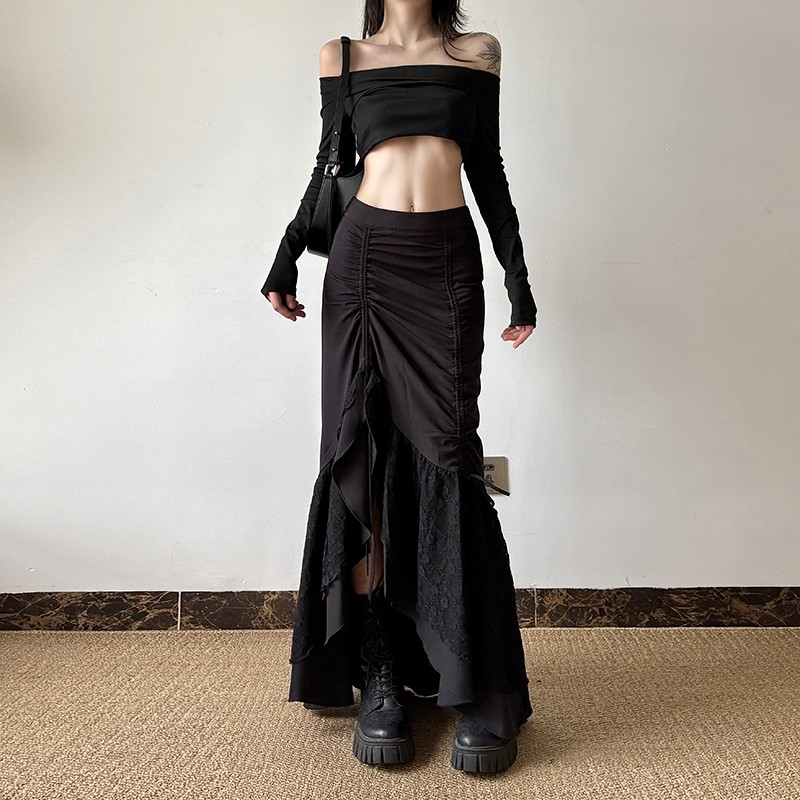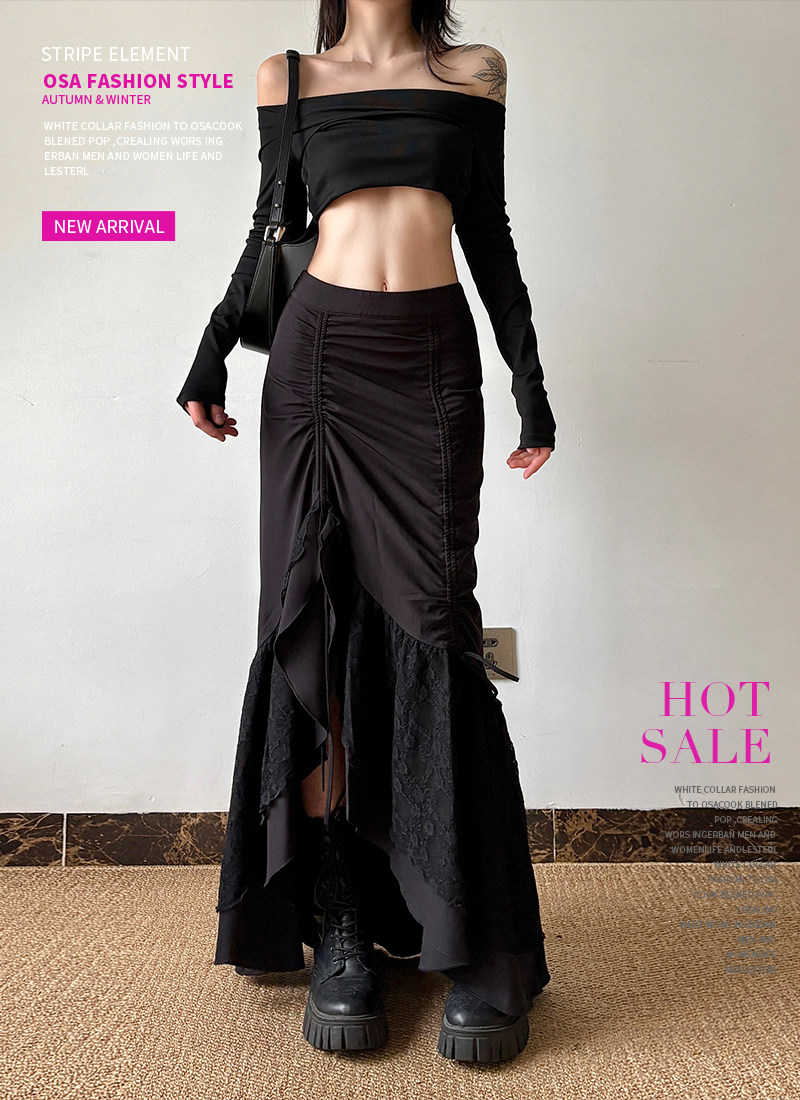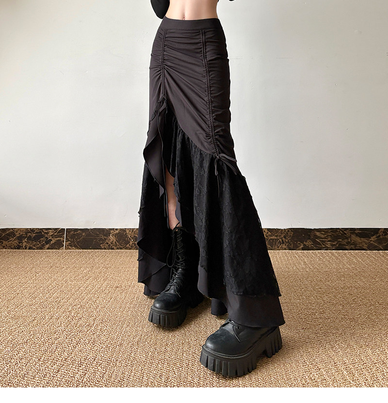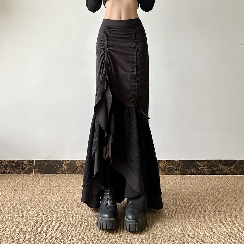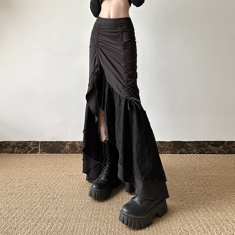 gagaopt Дизайнерская кружевная приталенная юбка с бантиком, тренд сезона, высокая талия, рыбий хвост