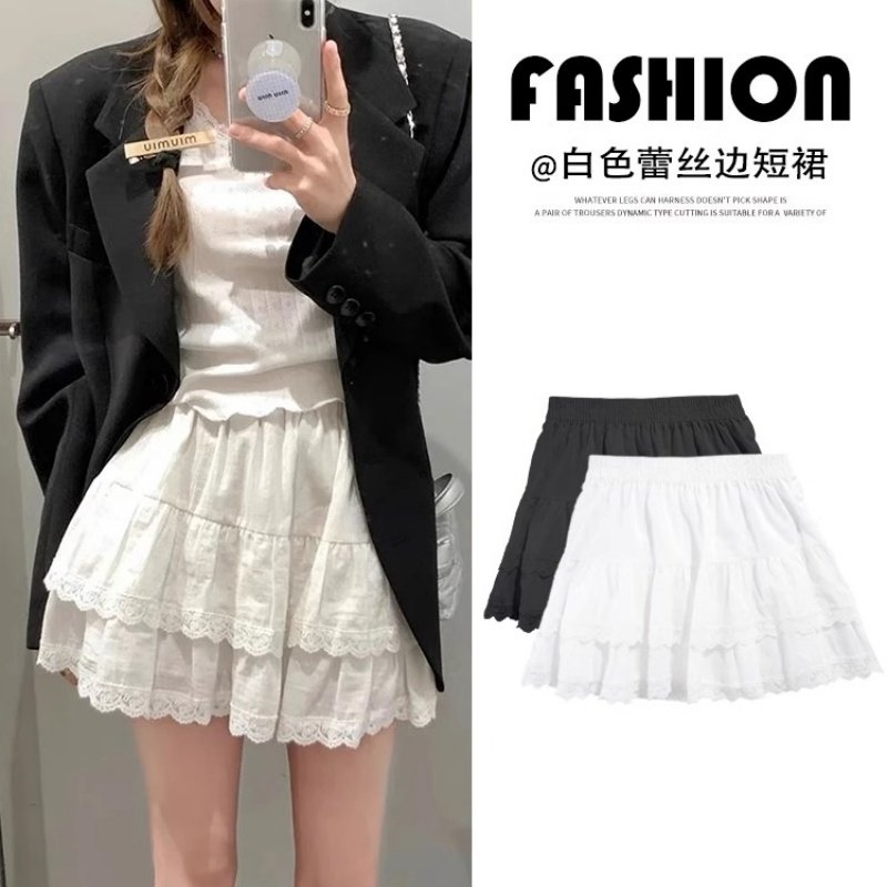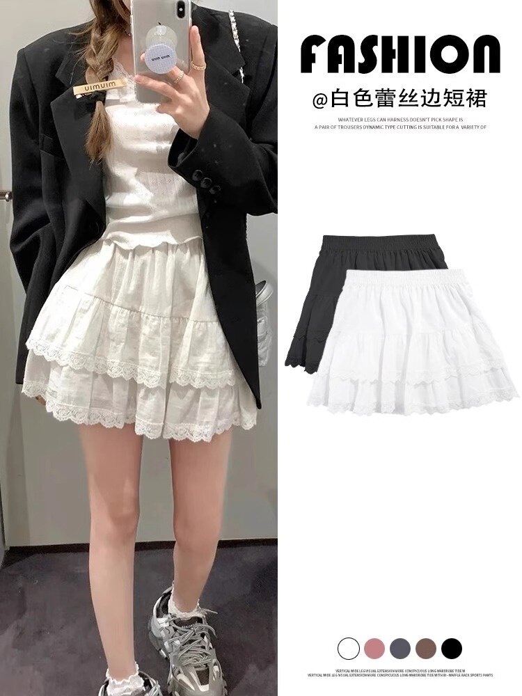 Белая кружевная осенняя мини-юбка, юбка, высокая талия, А-силуэт, подходит для подростков