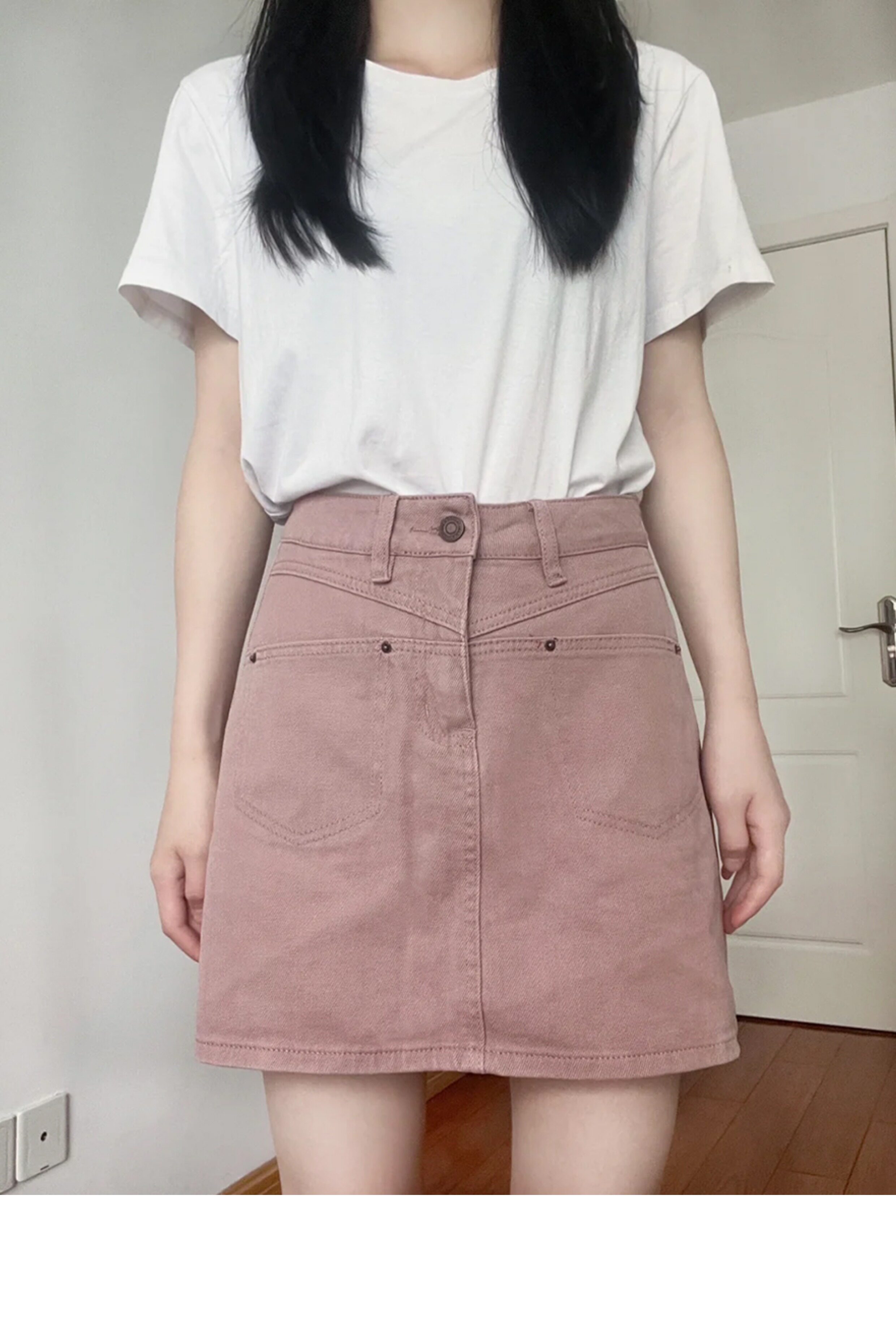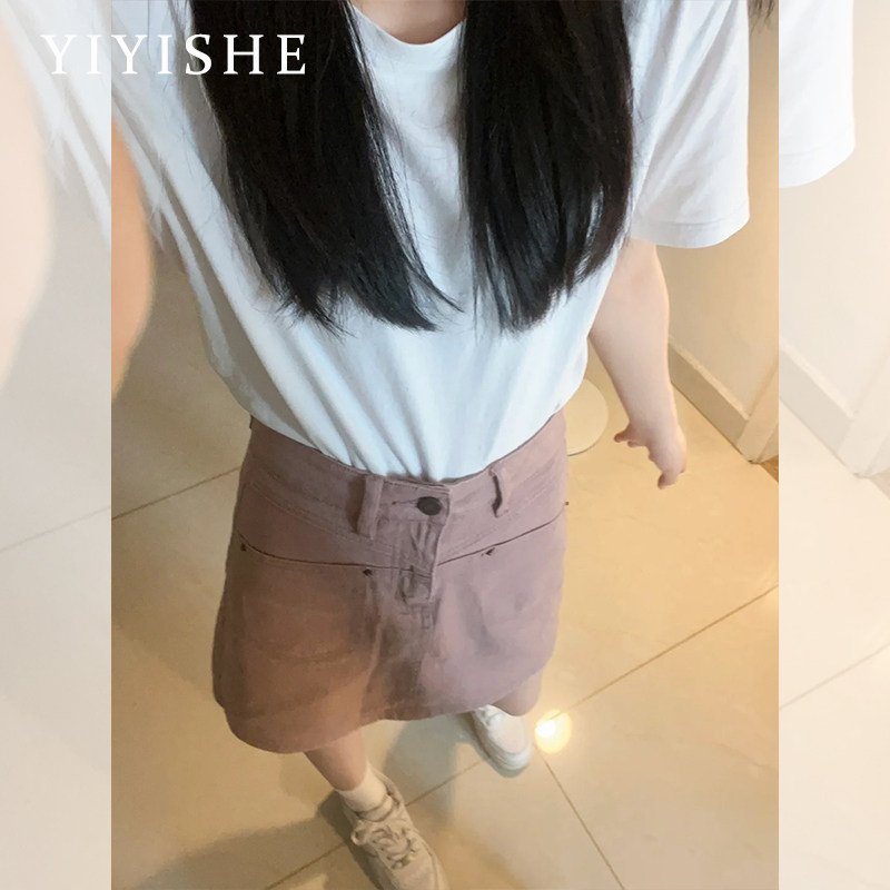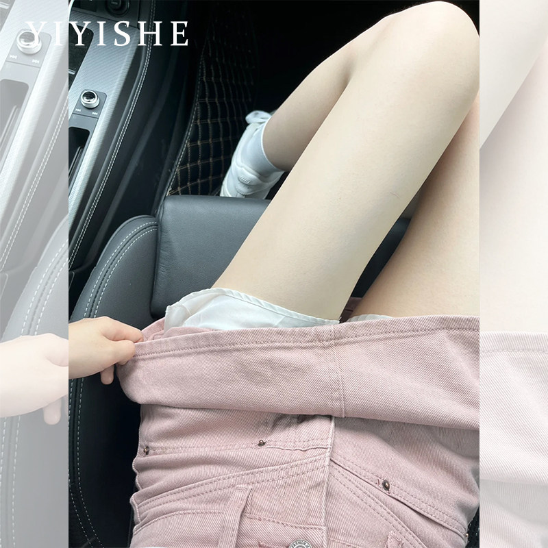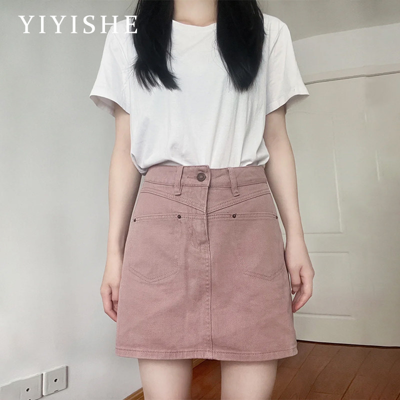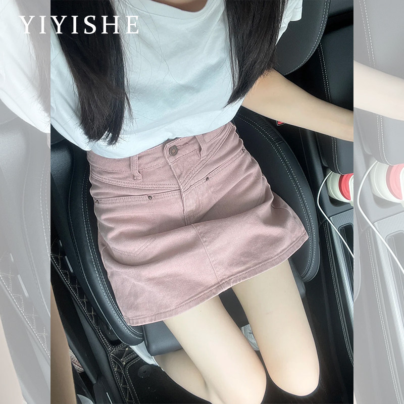 Розовая цветная джинсовая юбка, летнее защитное белье, штаны, мини-юбка, высокая талия, А-силуэт, с акцентом на бедрах