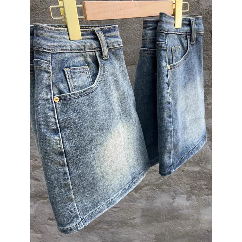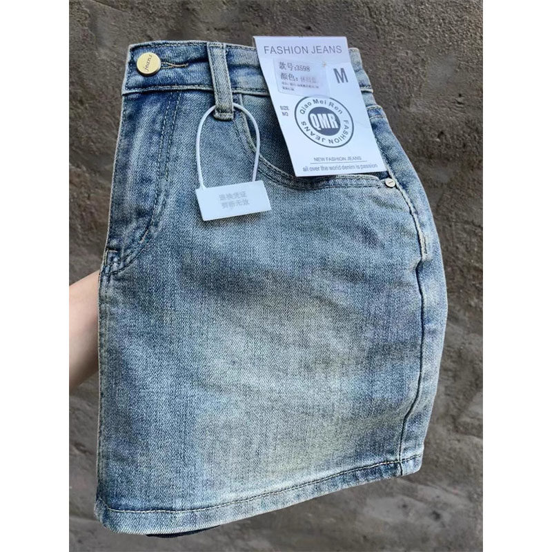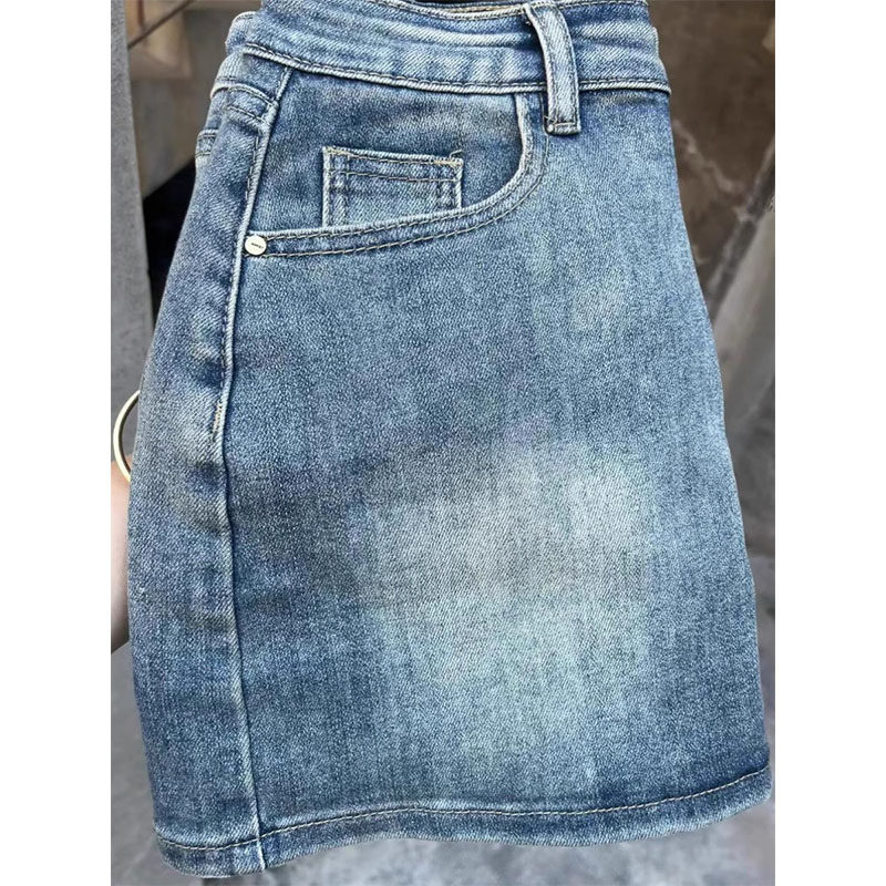 Ретро весенняя джинсовая юбка, эластичная мини-юбка, большой размер, в американском стиле, высокая талия, с акцентом на бедрах