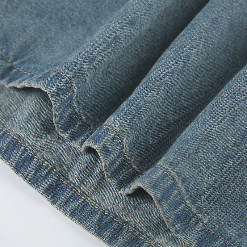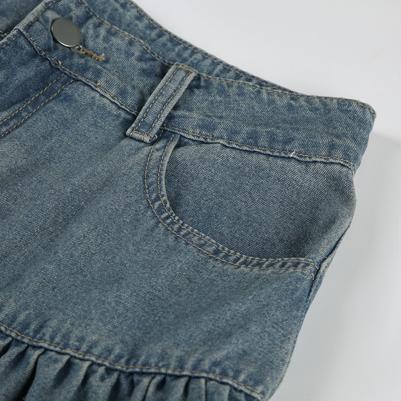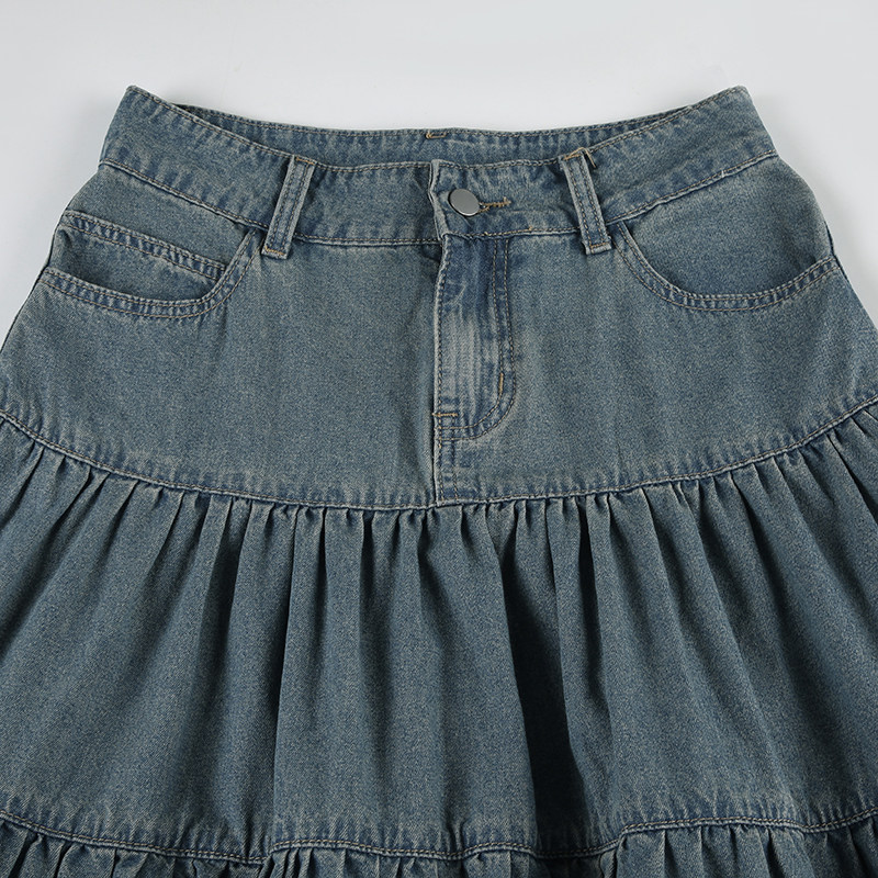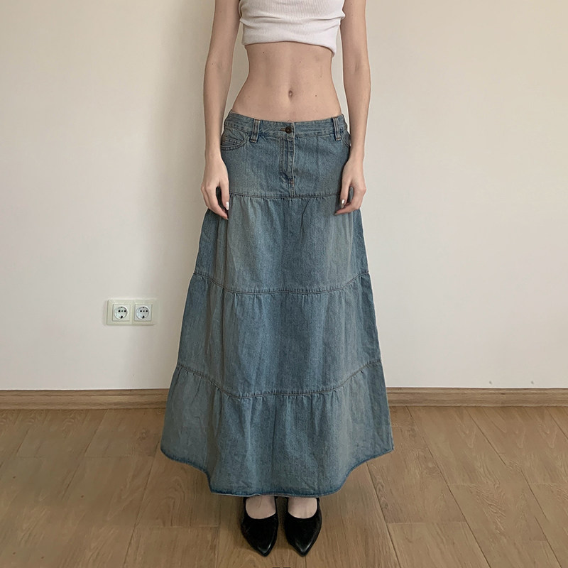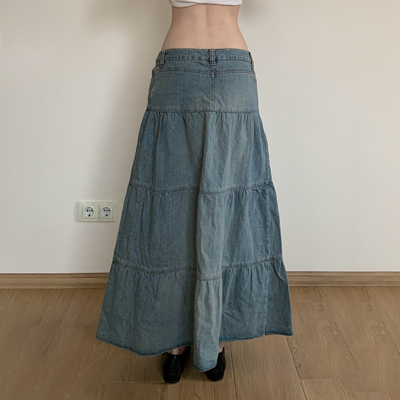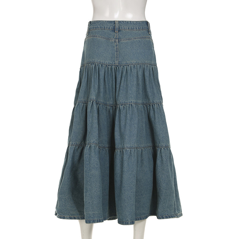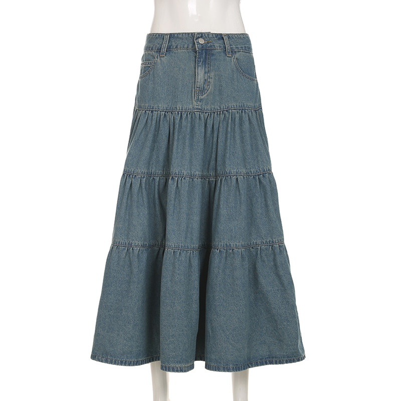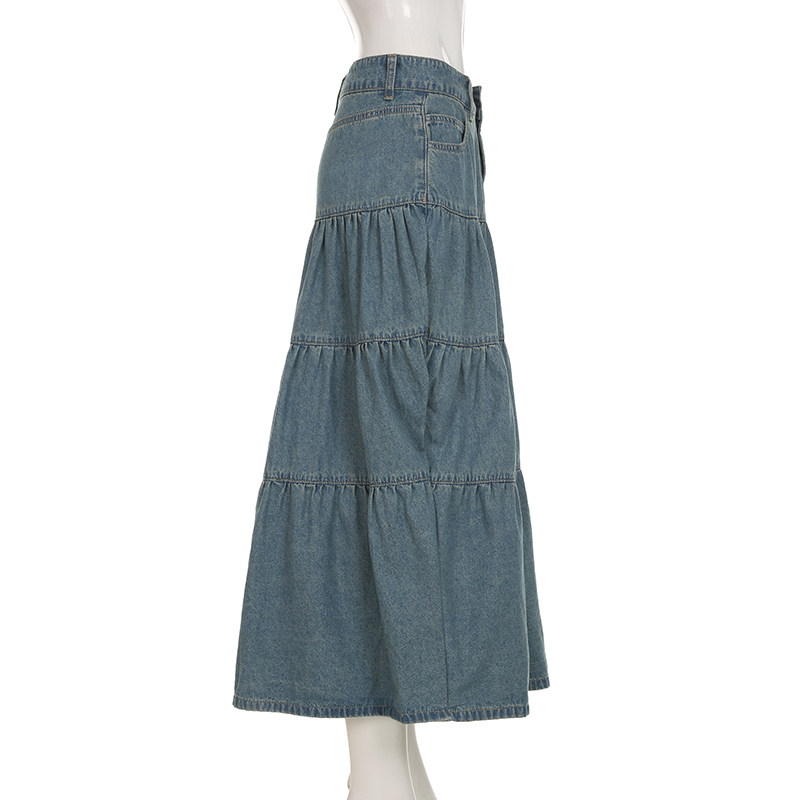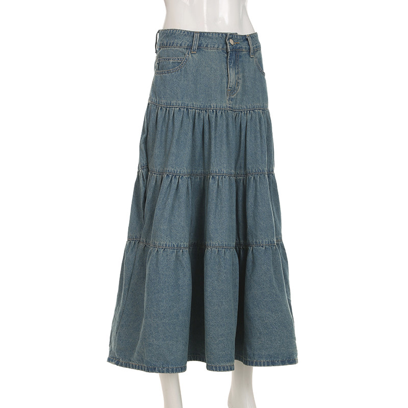 WEEKEEP Ретро джинсовая юбка, юбка в складку, длинная юбка, свободный крой, А-силуэт