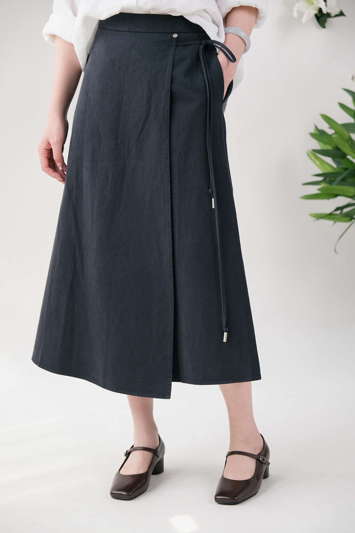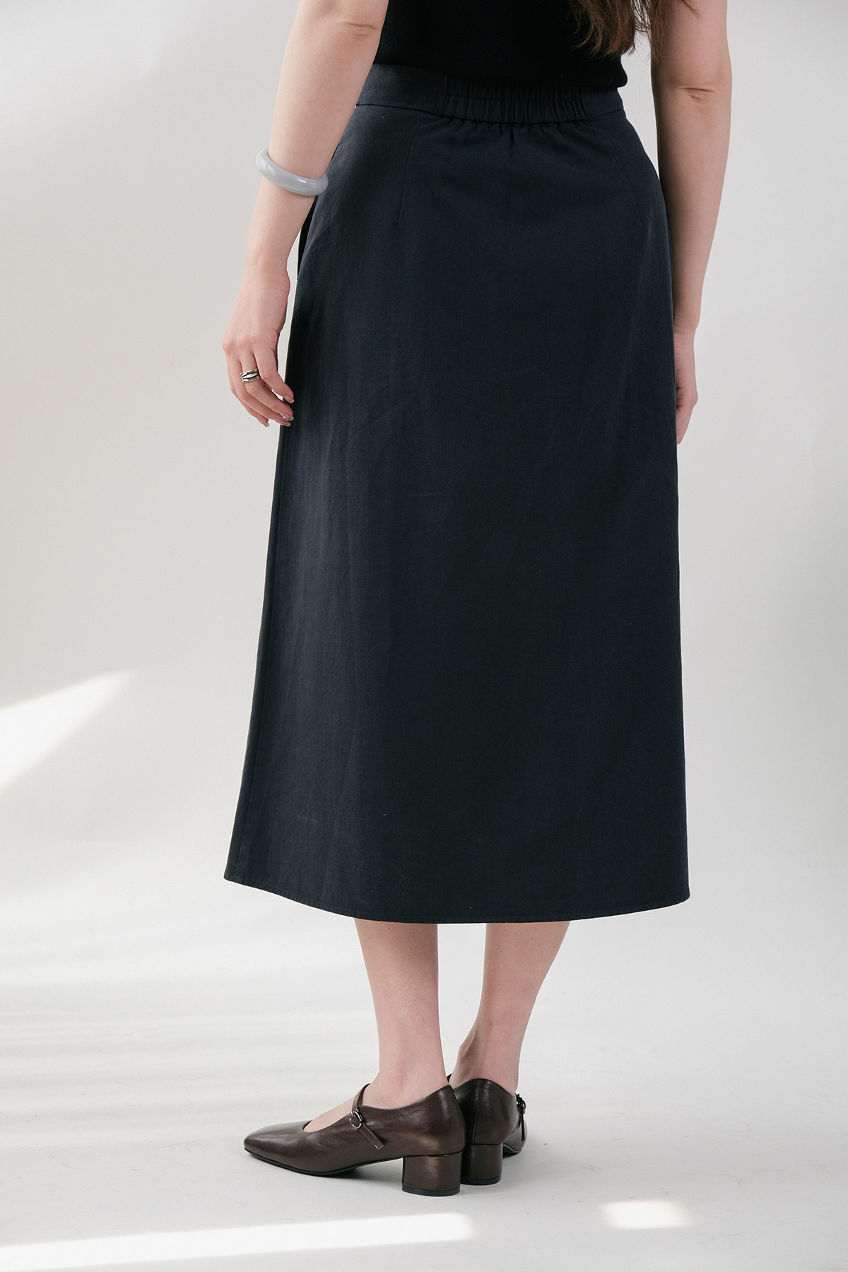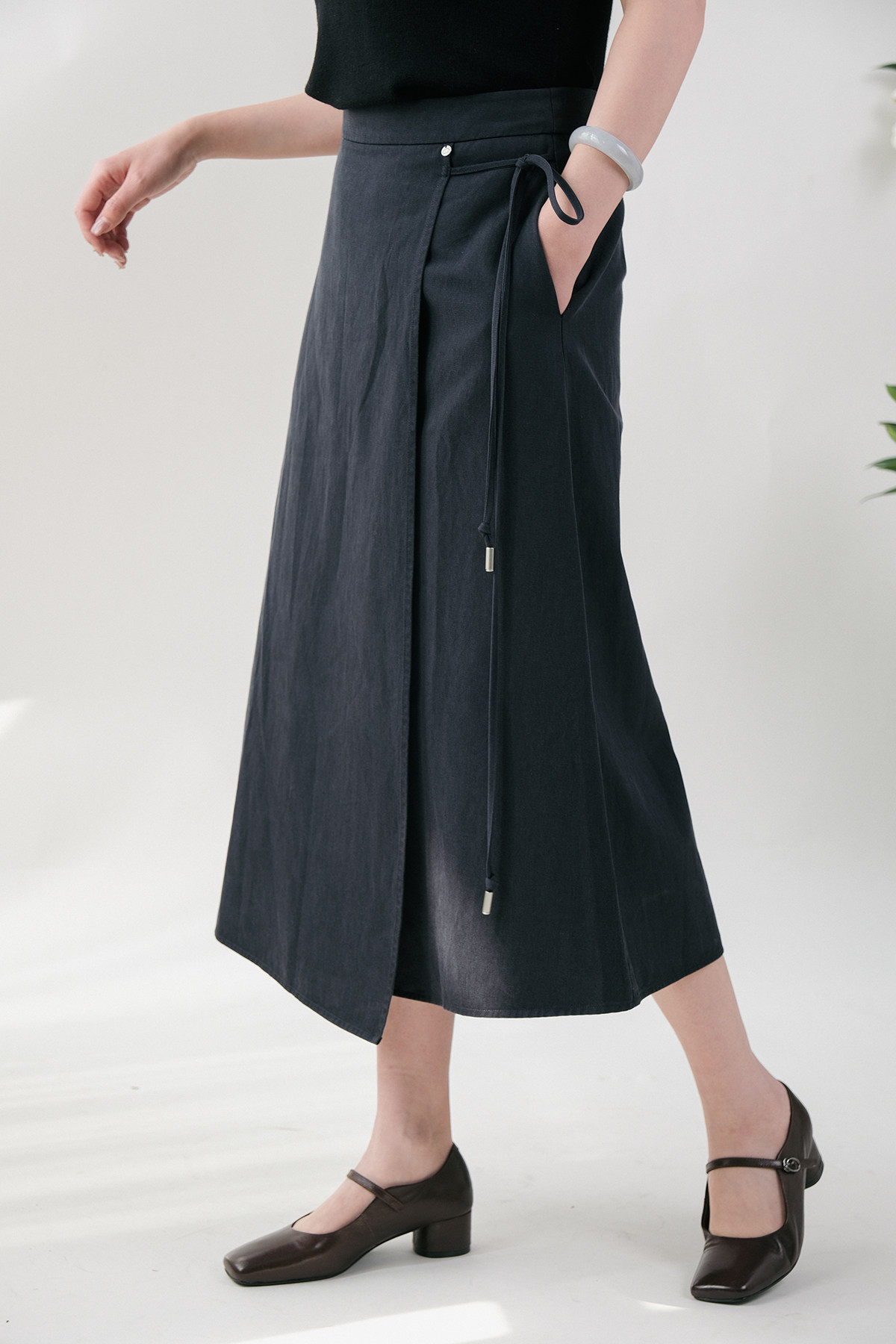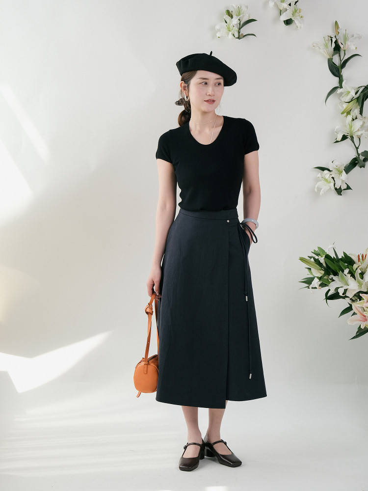 Юаньдзиатианский шелковый хлопок с эластичной эластичной юбкой, передняя юбка средней длины F-103 Ограничения