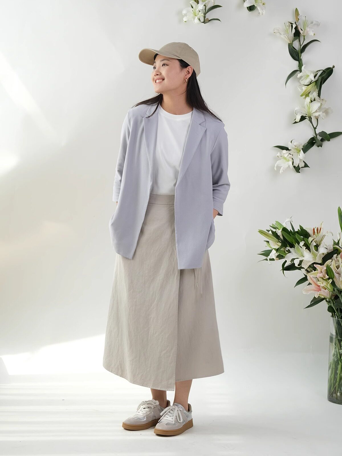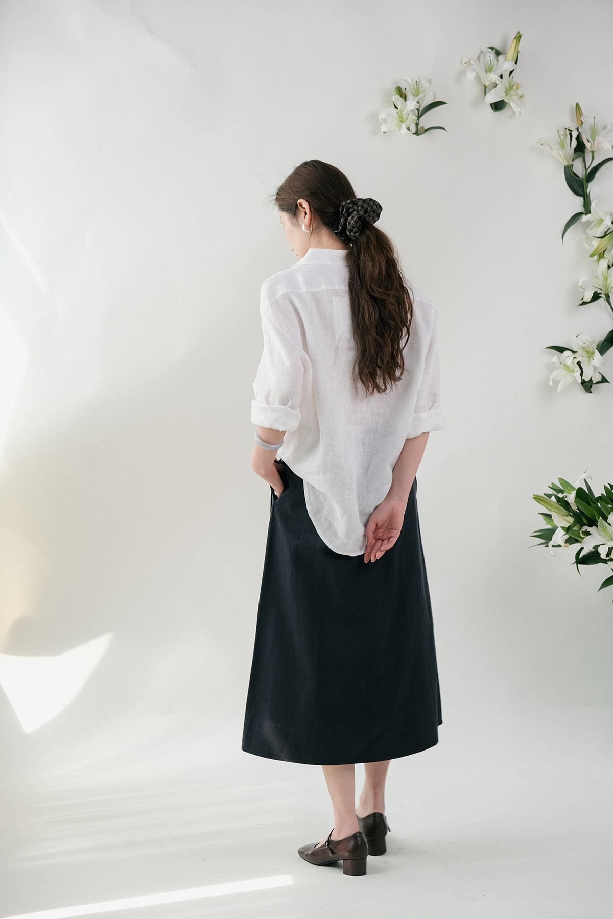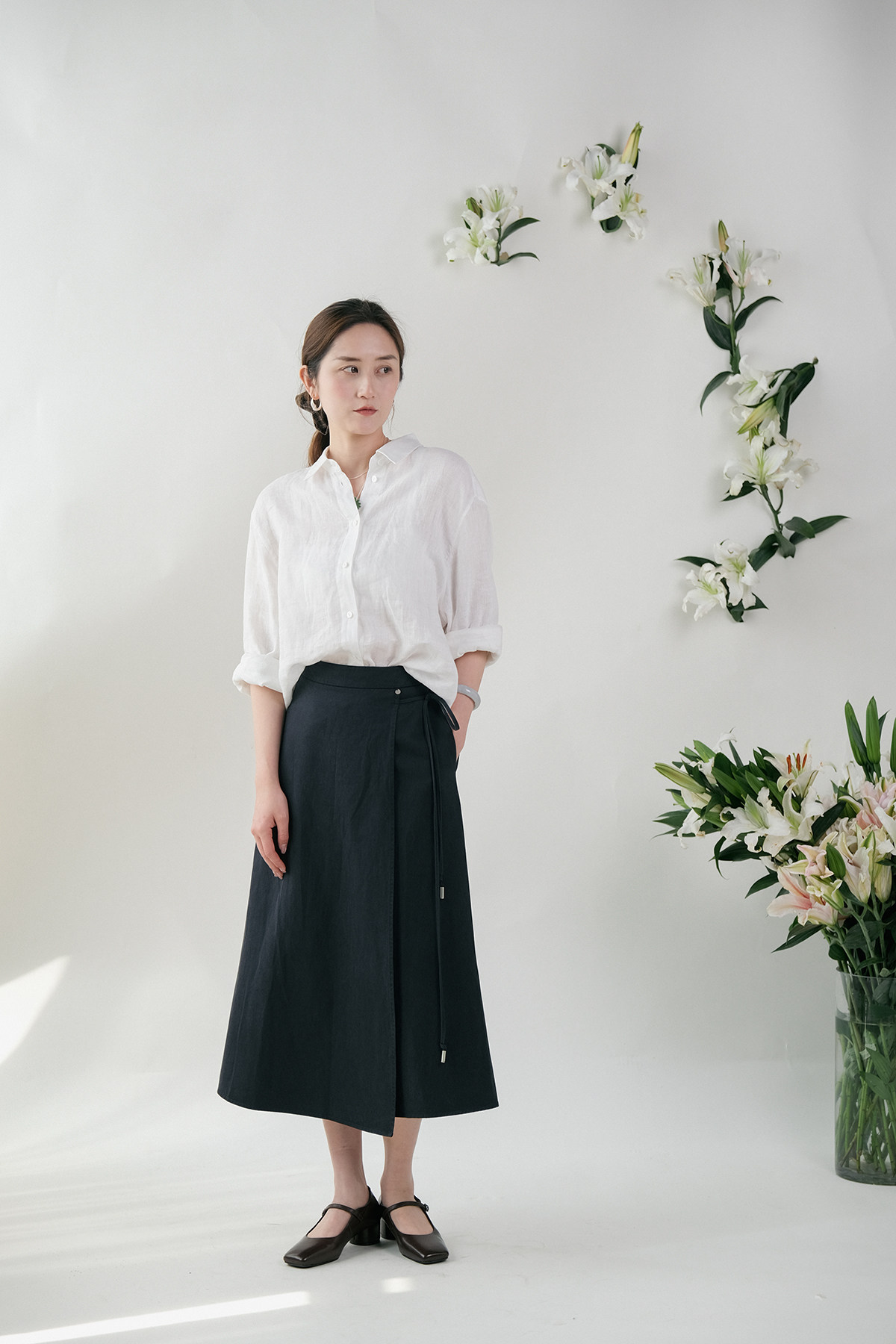 Юаньдзиатианский шелковый хлопок с эластичной эластичной юбкой, передняя юбка средней длины F-103 Ограничения
