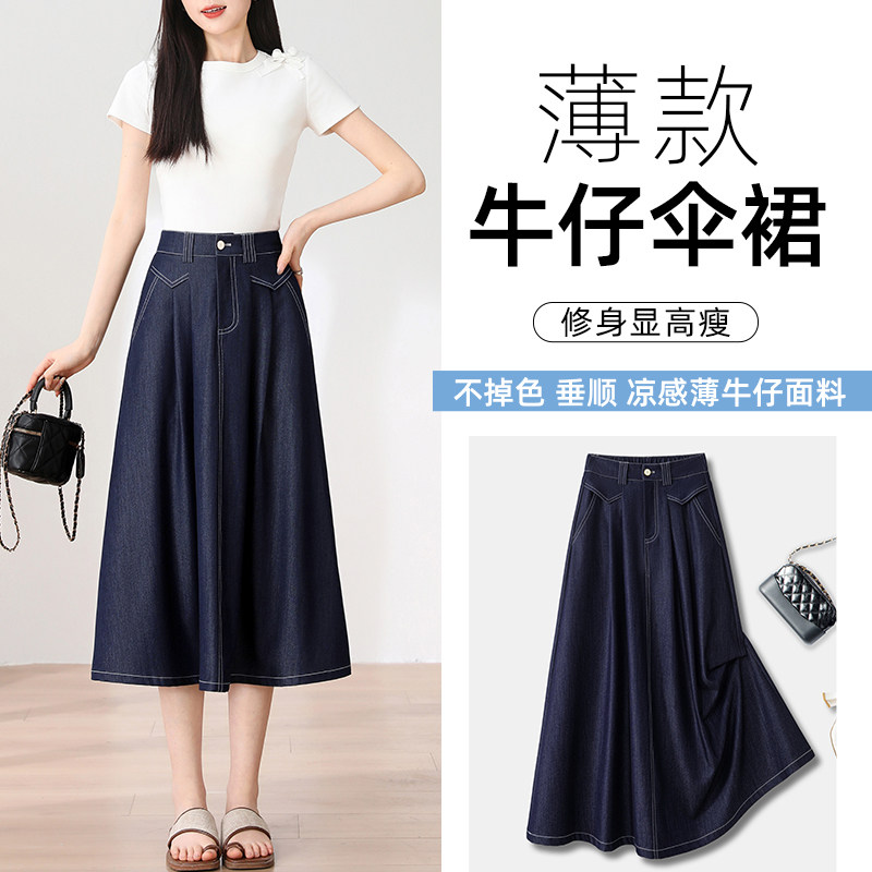 Летняя тонкая джинсовая юбка, оверсайз, А-силуэт, подходит для подростков, средней длины