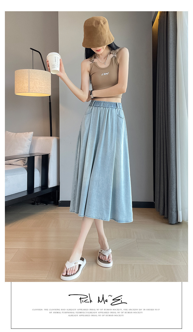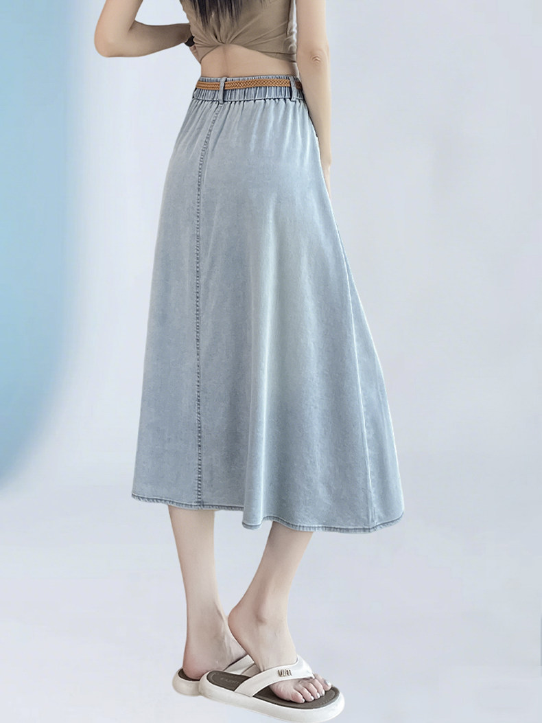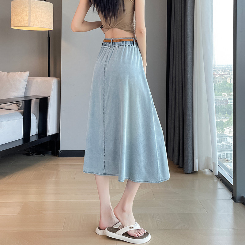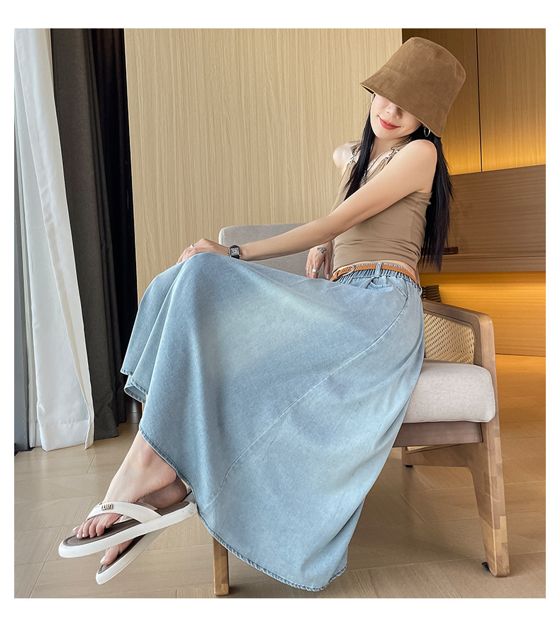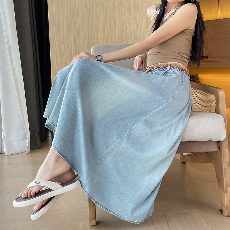 Синяя летняя тонкая джинсовая юбка, длинная длинная юбка, А-силуэт