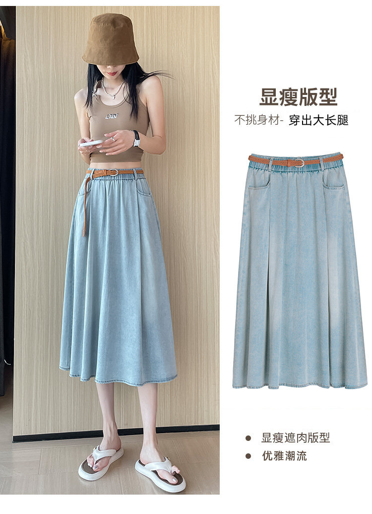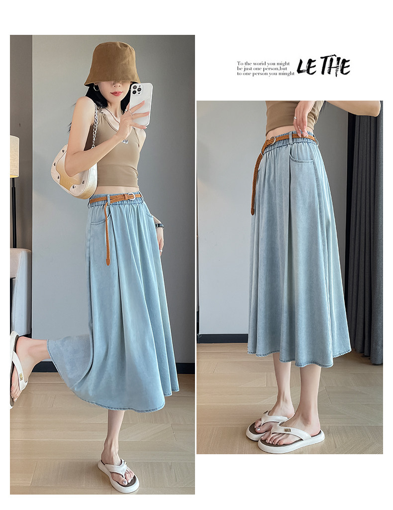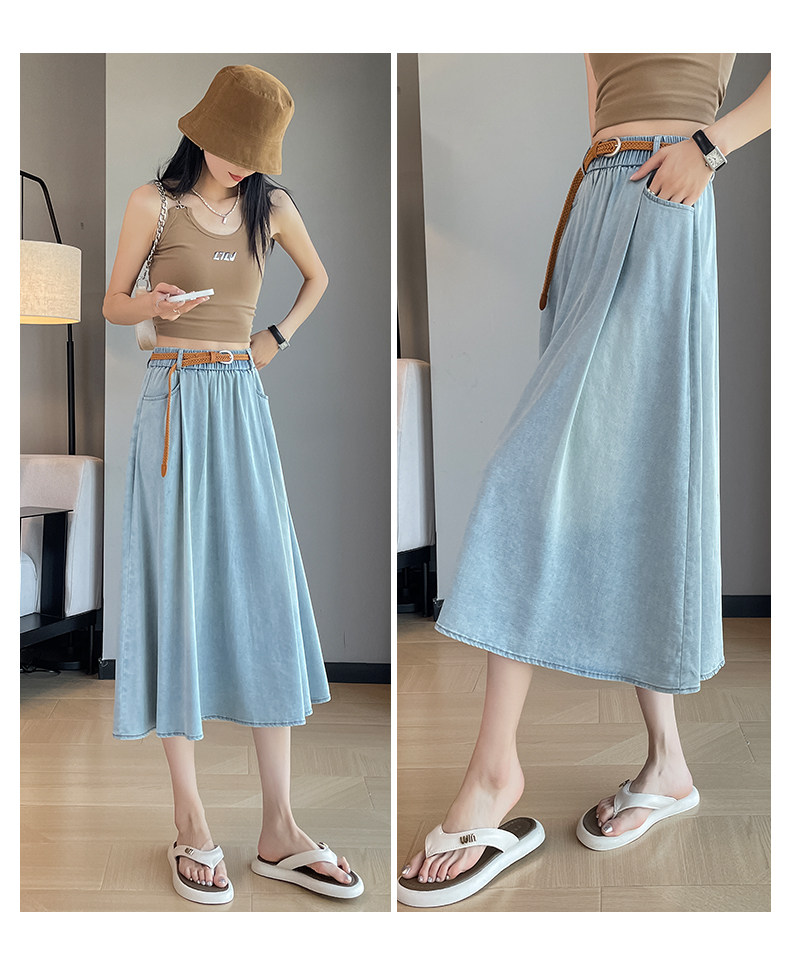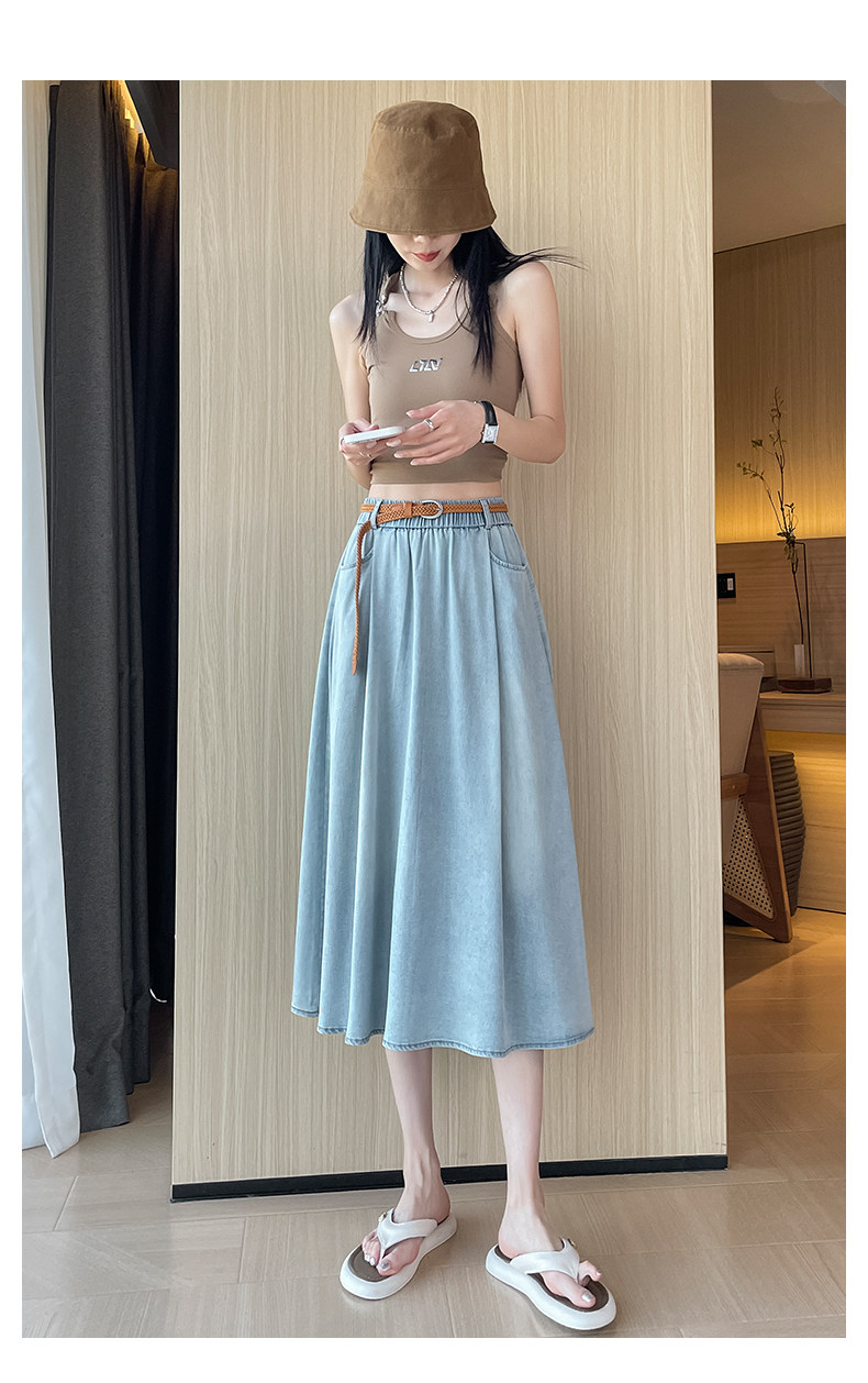 Синяя летняя тонкая джинсовая юбка, длинная длинная юбка, А-силуэт