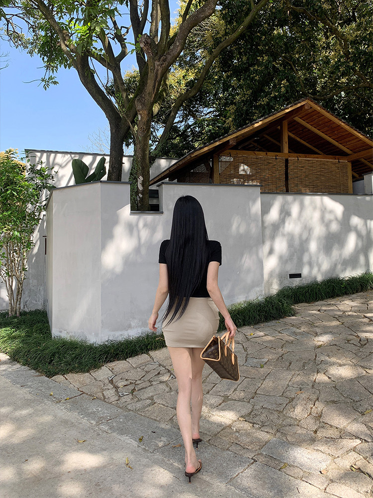 Летняя приталенная эластичная юбка, в корейском стиле, с акцентом на бедрах