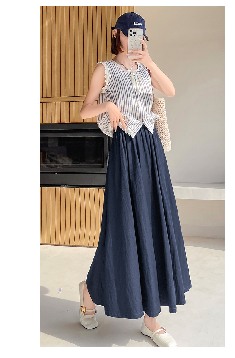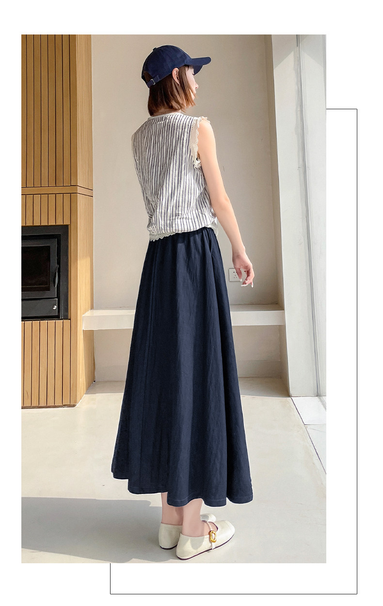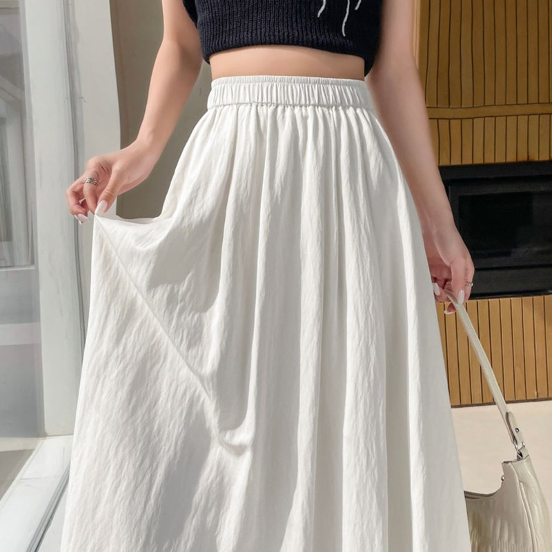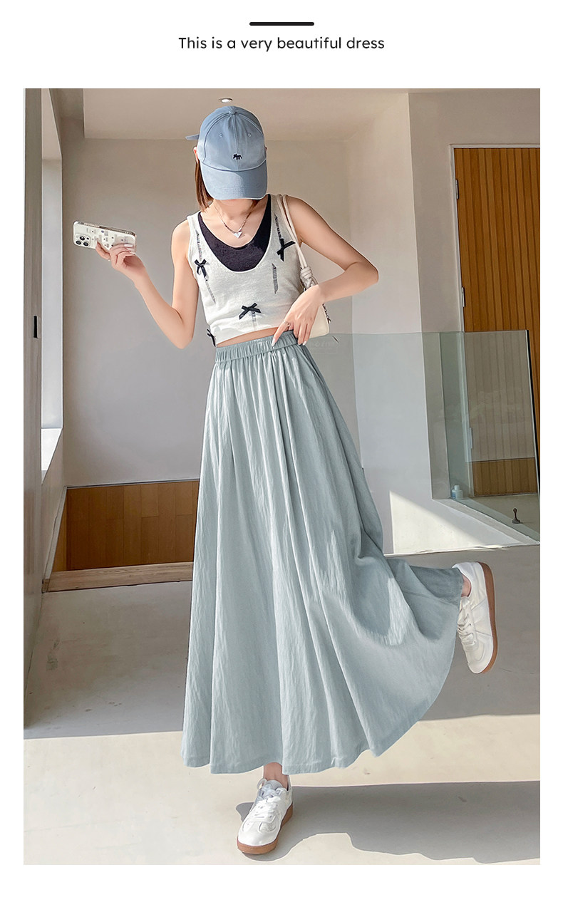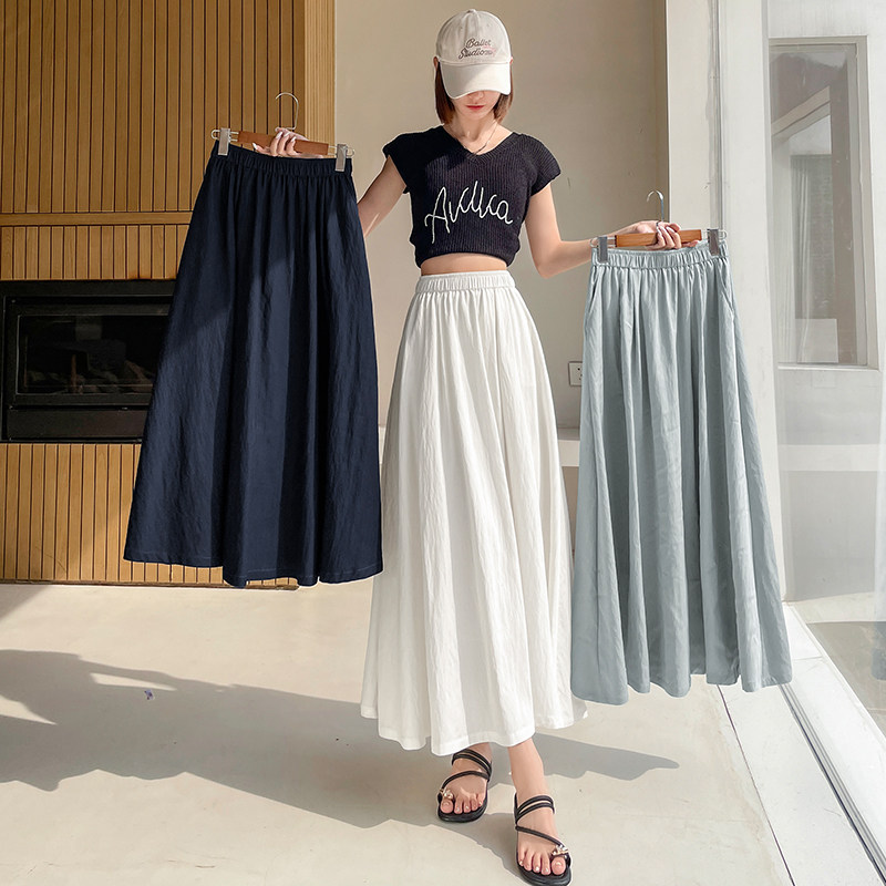 Белая летняя юбка в складку, из хлопка и льна, свободный крой, высокая талия, длина миди