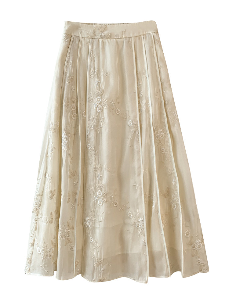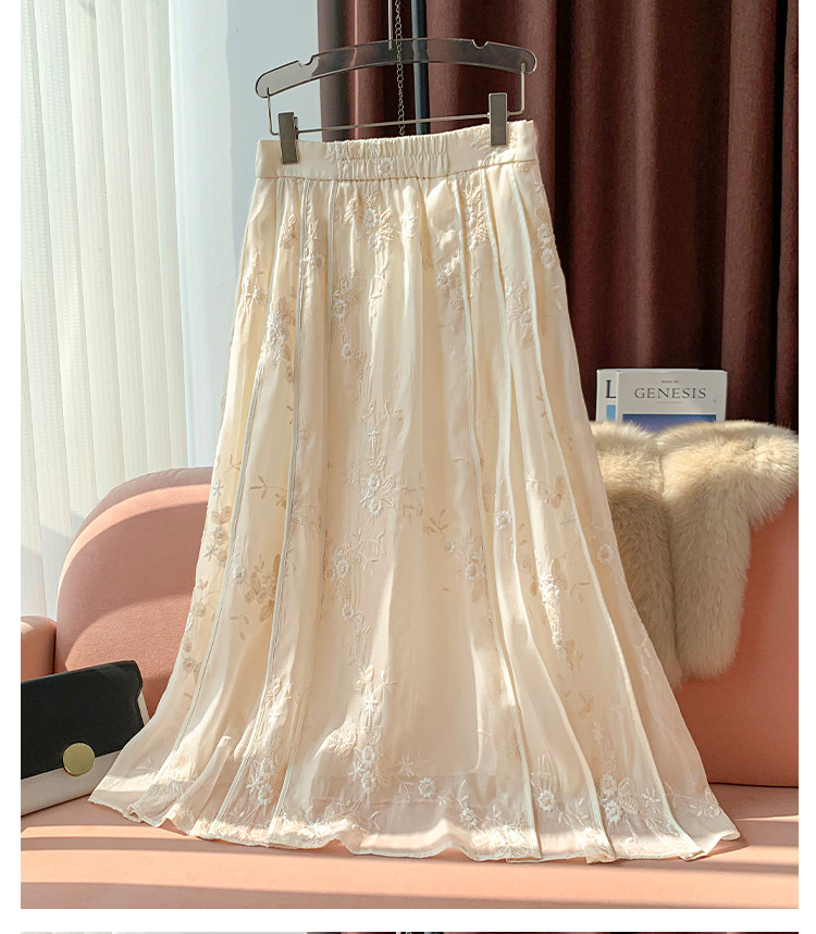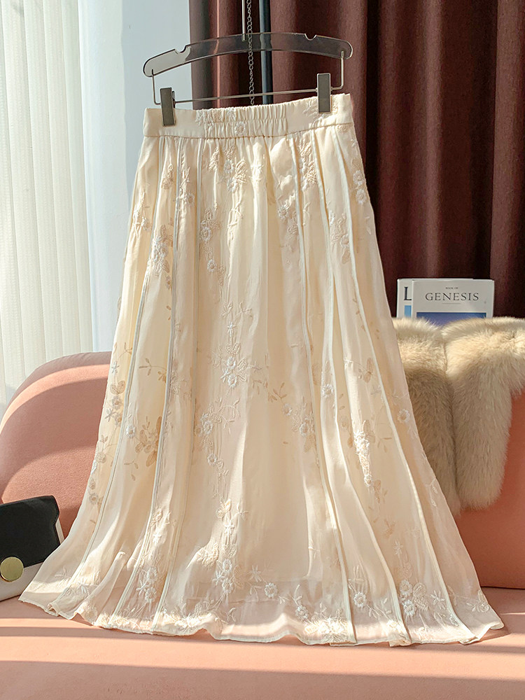 Новая китайская юбка трапециевидной формы в этническом стиле с вышивкой Tencel, 2025 летняя женская новая высококачественная тонкая шифоновая юбка