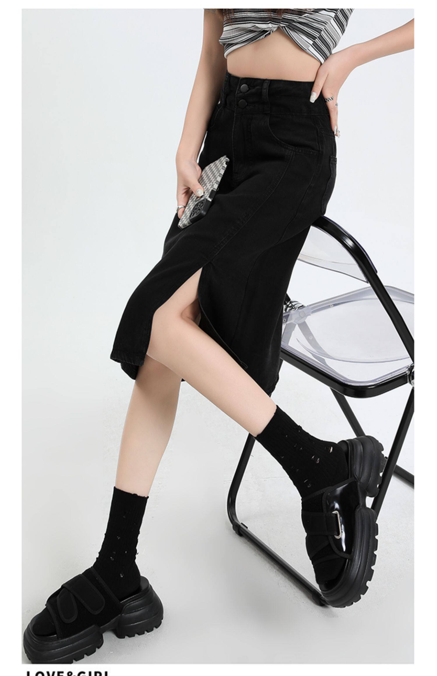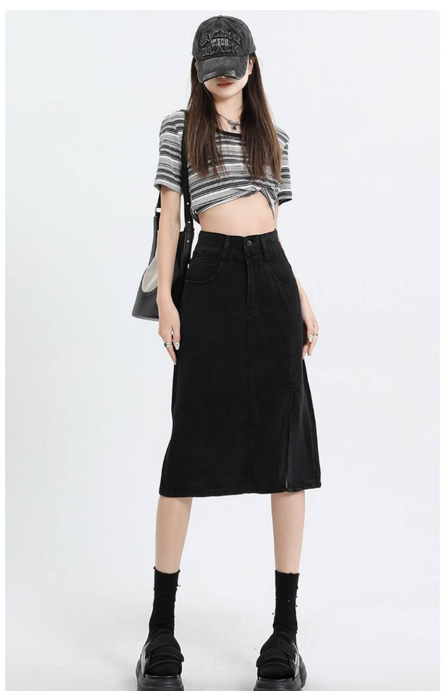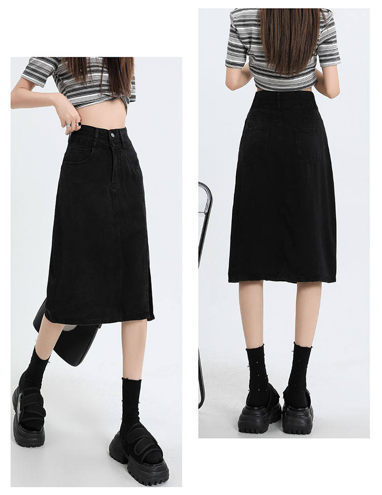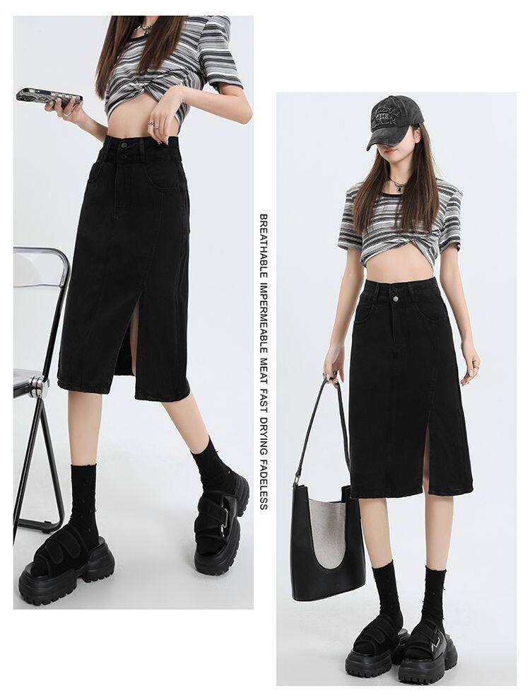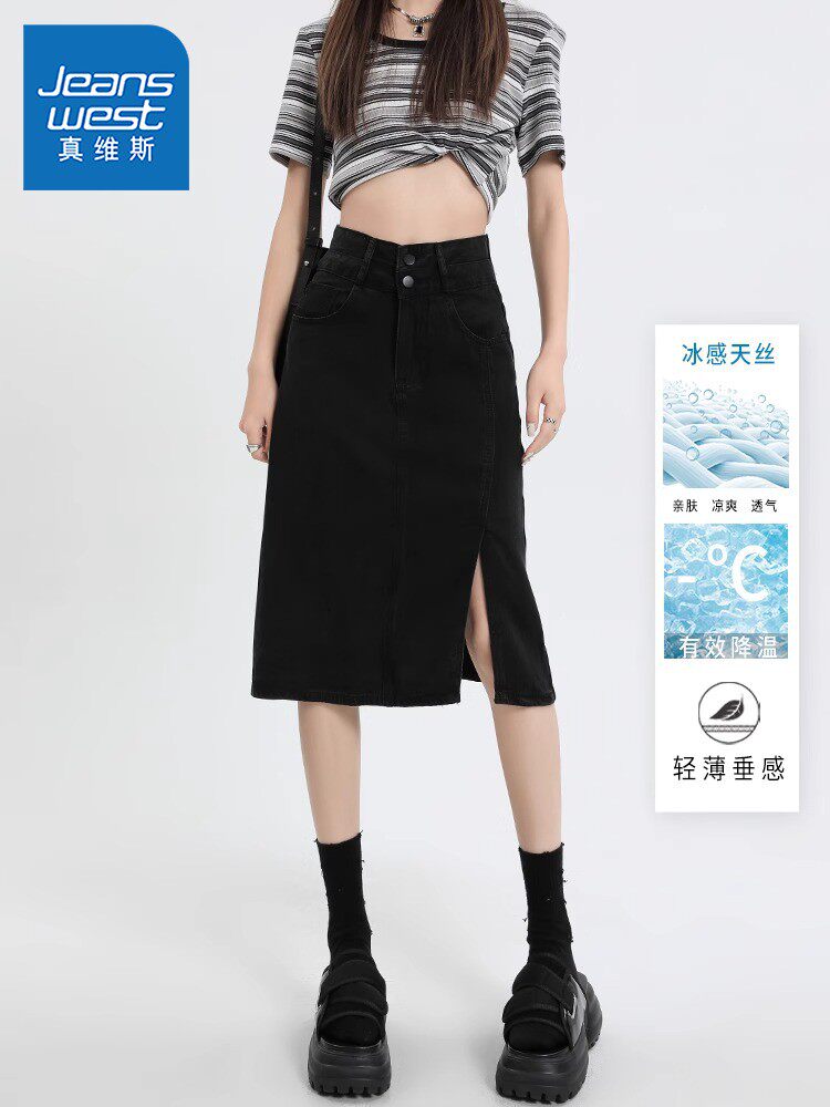 Летняя черная шелковая джинсовая юбка, высокая талия
