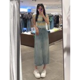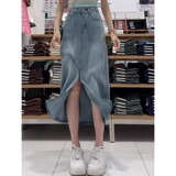 Синяя летняя тонкая приталенная длинная джинсовая юбка, для формы тела «груша», большой размер, средней длины, А-силуэт