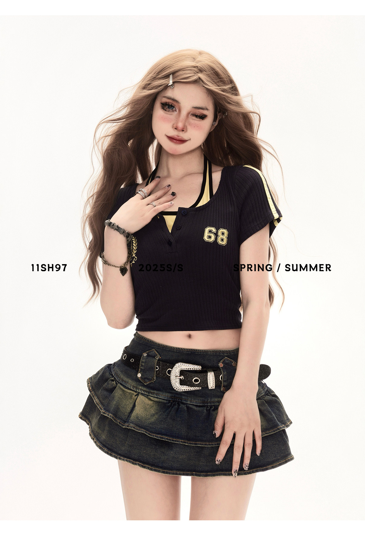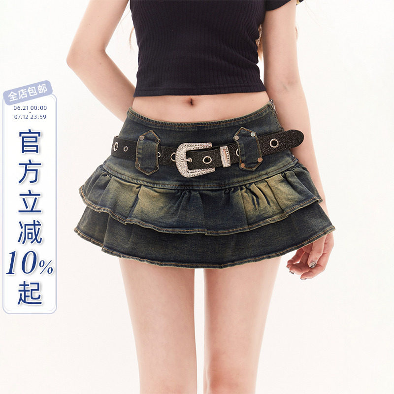 11SH97 Ретро летняя короткая джинсовая юбка, юбка в складку, мини-юбка, А-силуэт