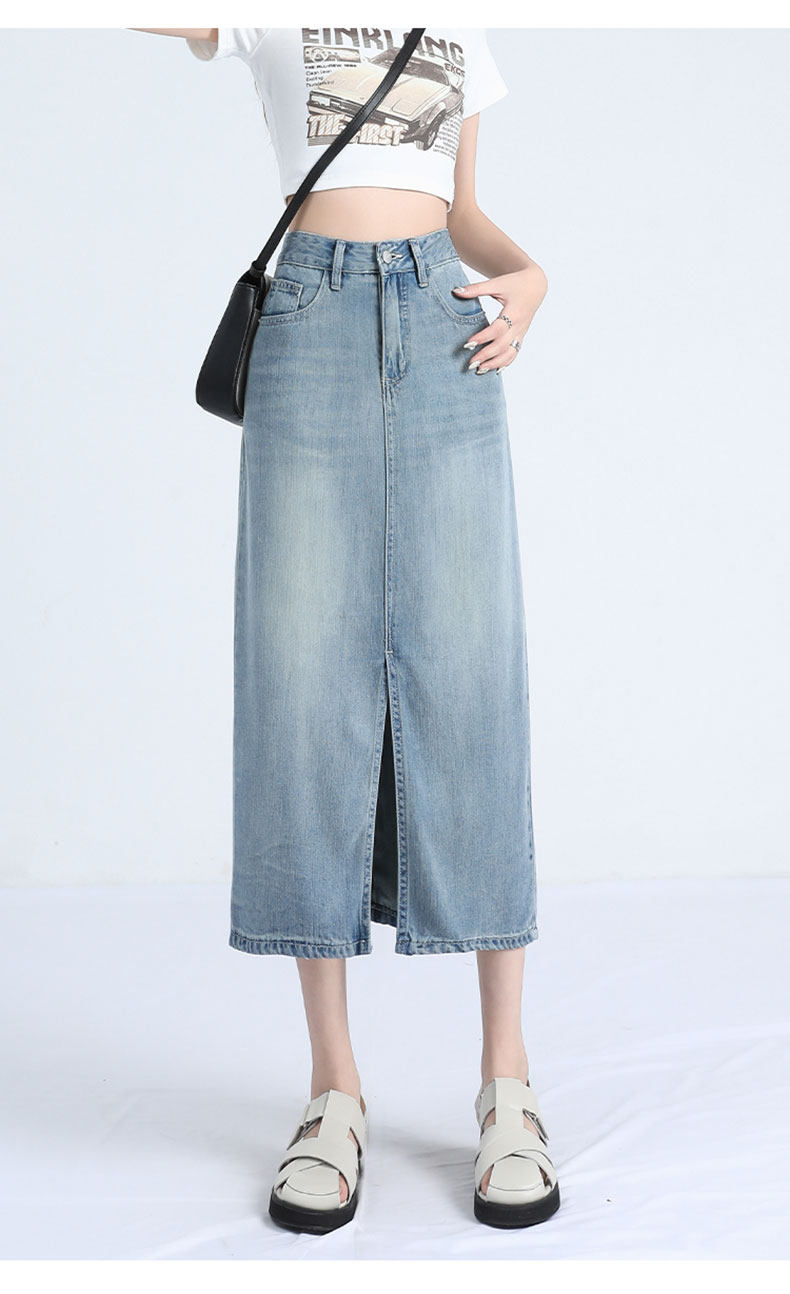 Летняя тонкая длинная шелковая джинсовая юбка, 2026 года, средней длины, высокая талия, А-силуэт