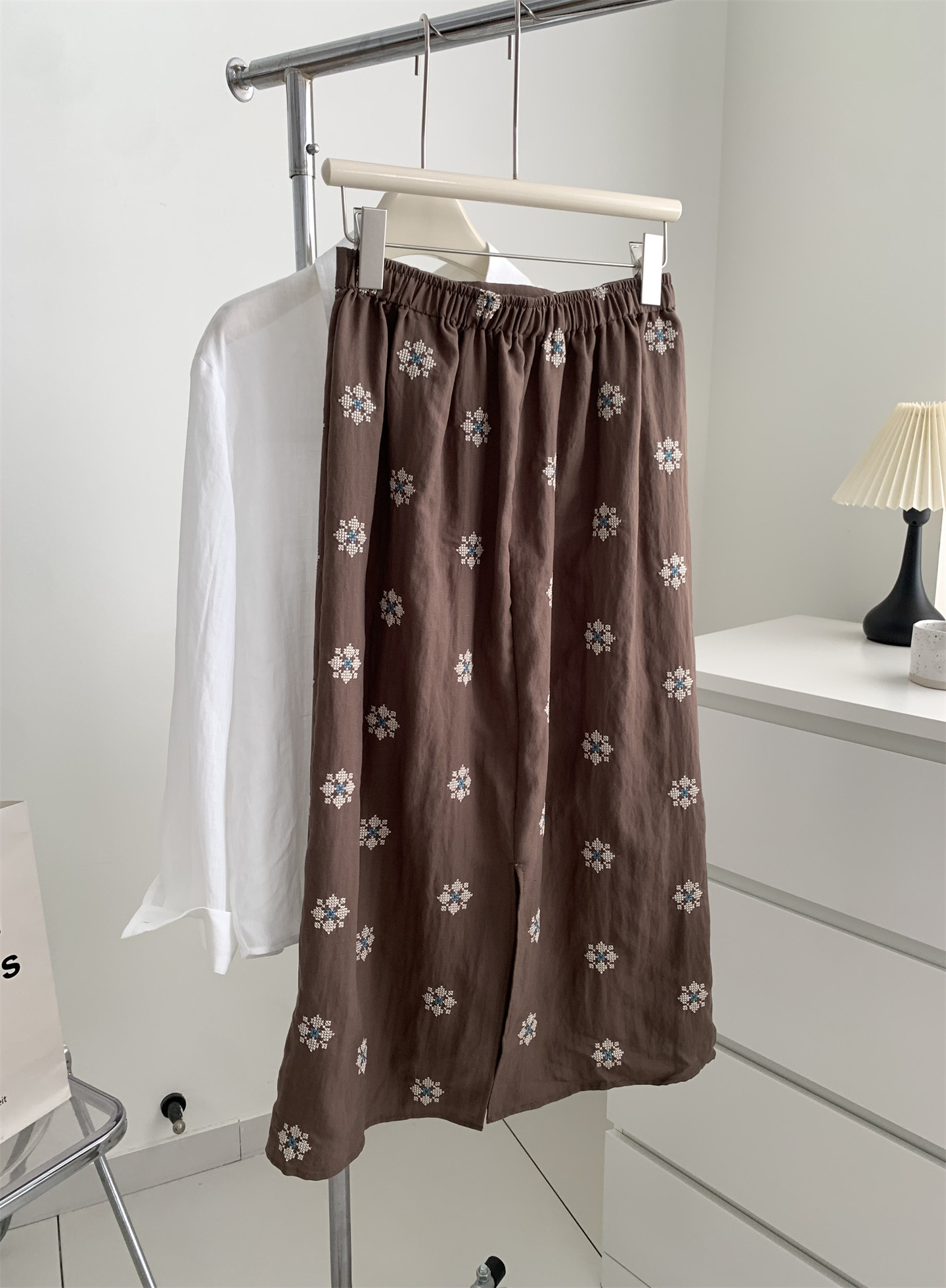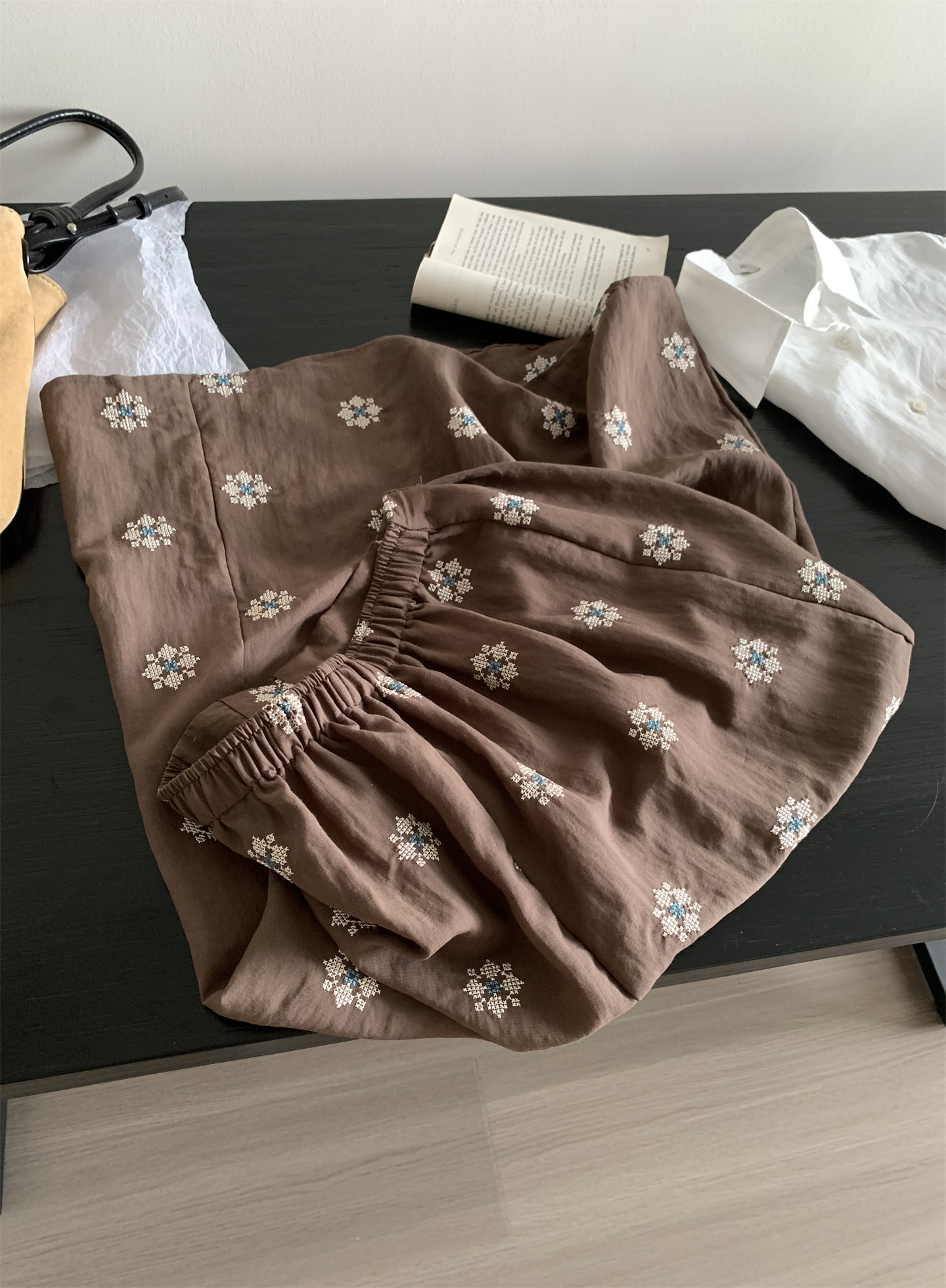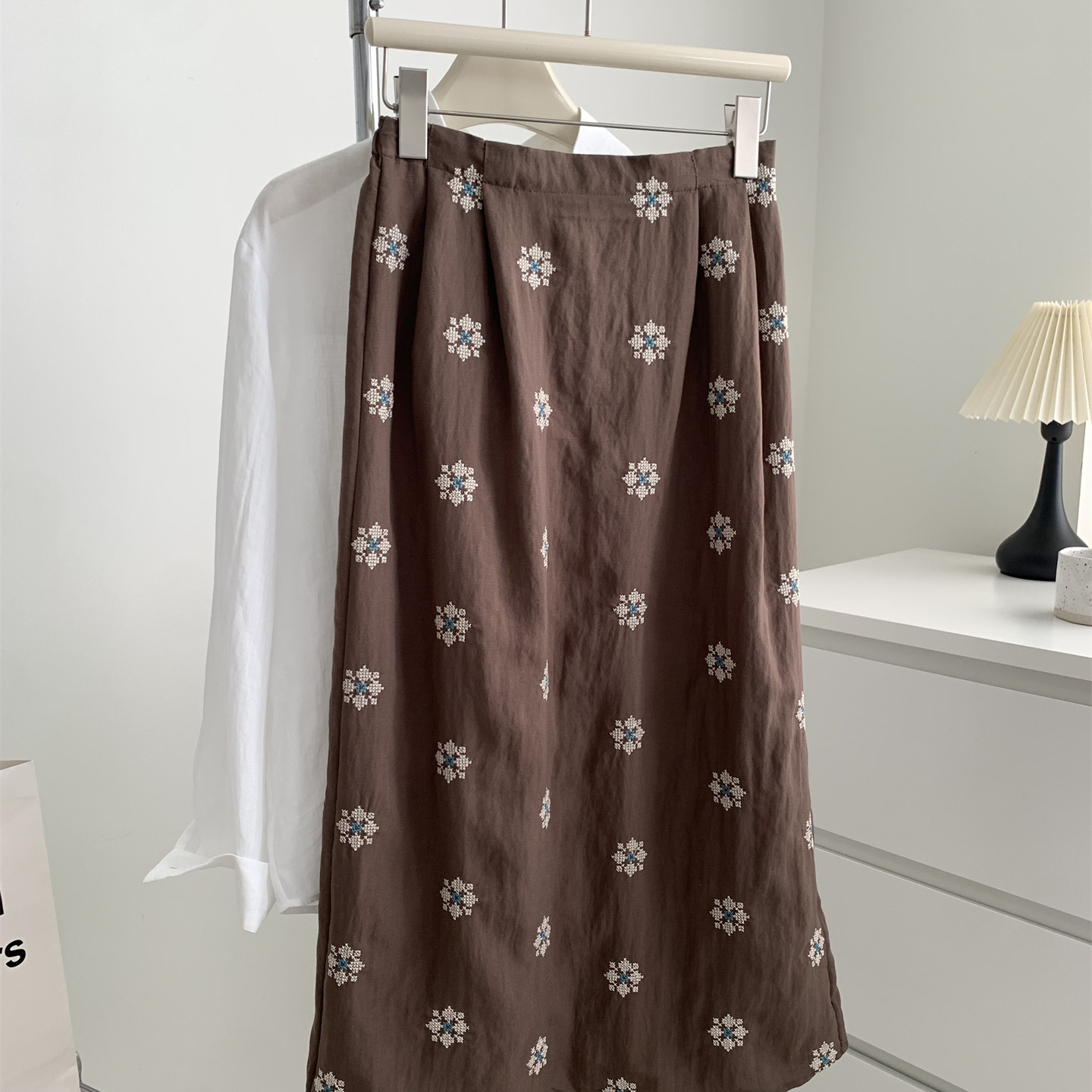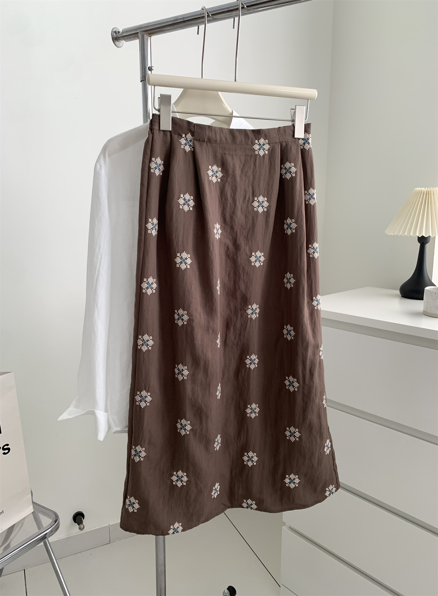 Ретро летняя тонкая юбка, с вышивкой, свободный прямой крой, длина миди