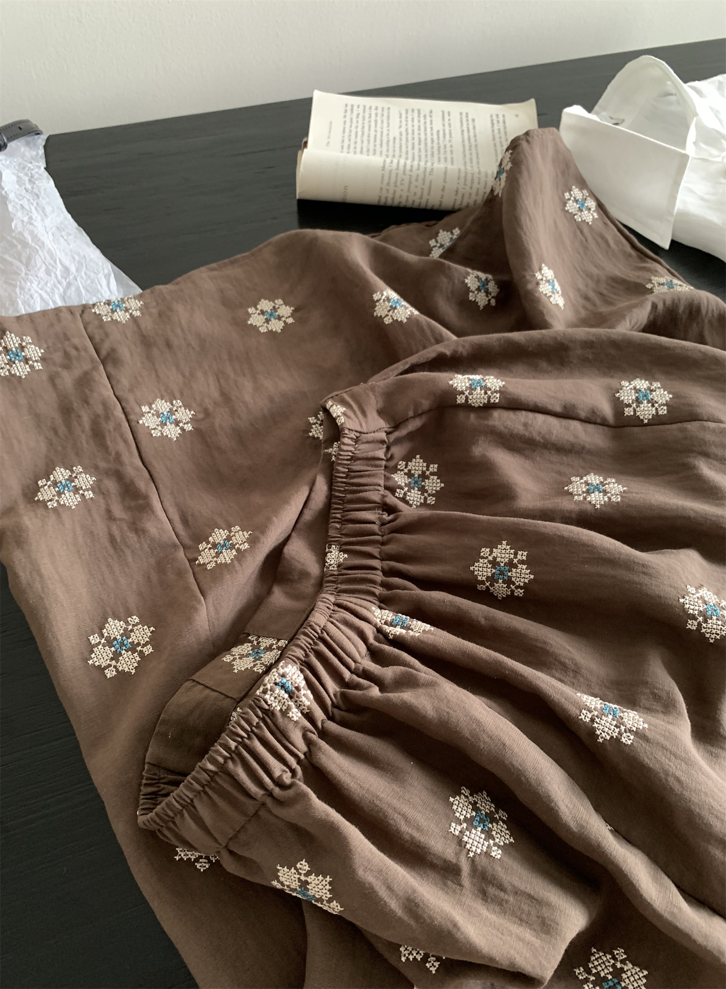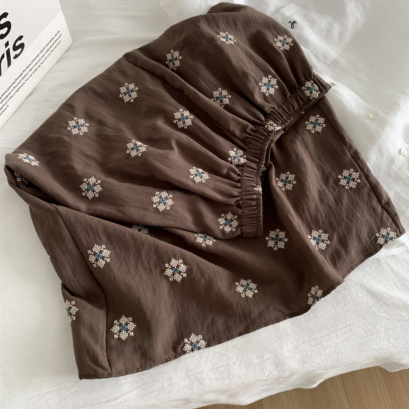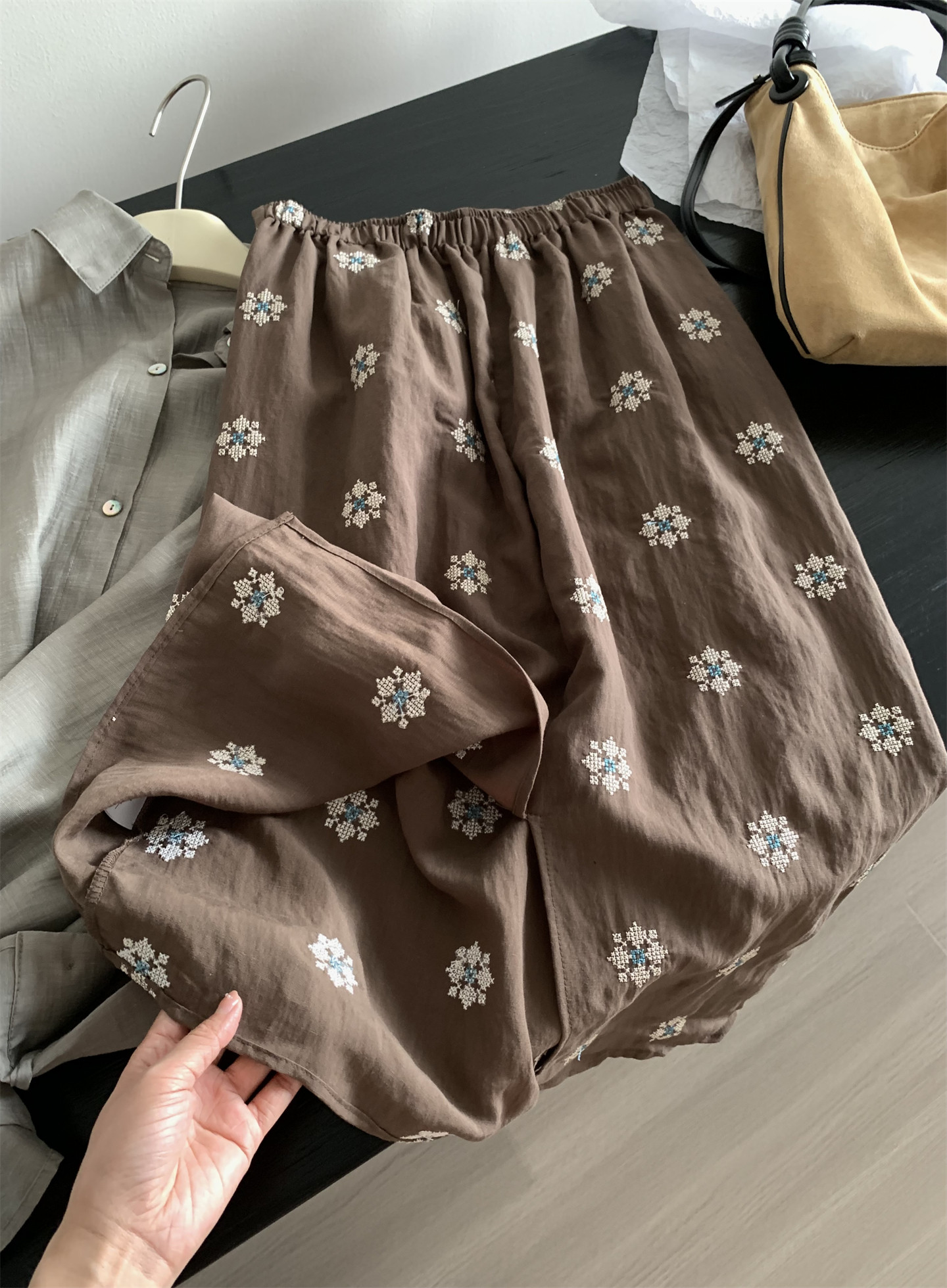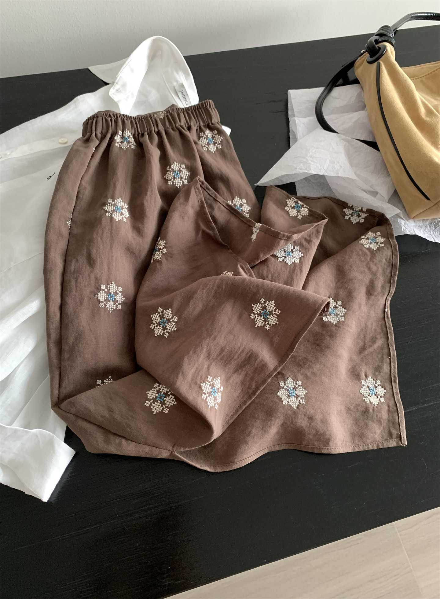 Ретро летняя тонкая юбка, с вышивкой, свободный прямой крой, длина миди