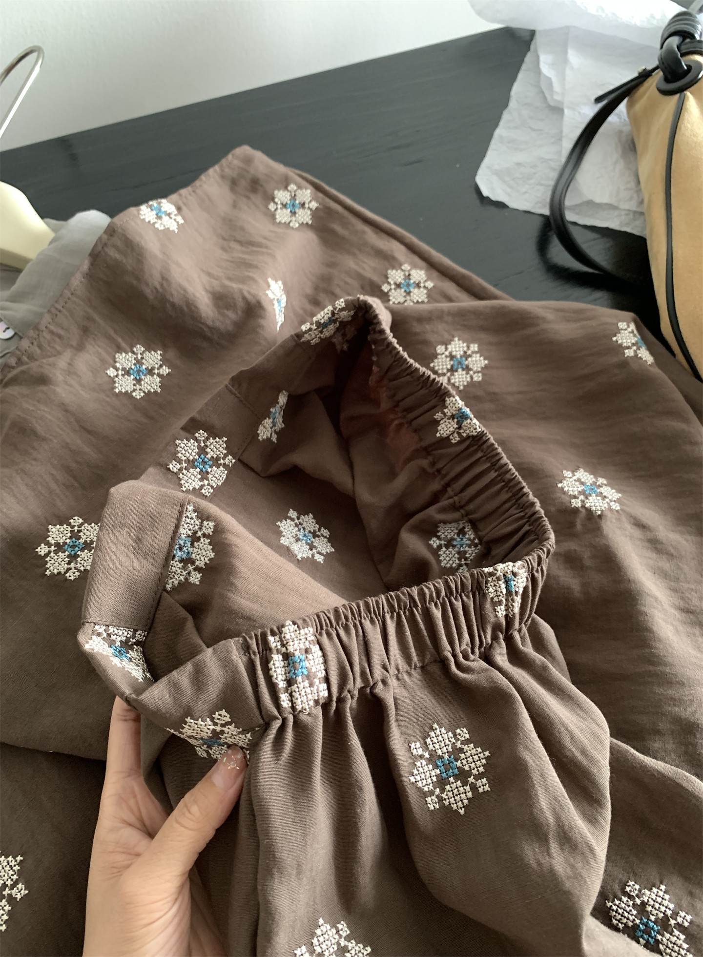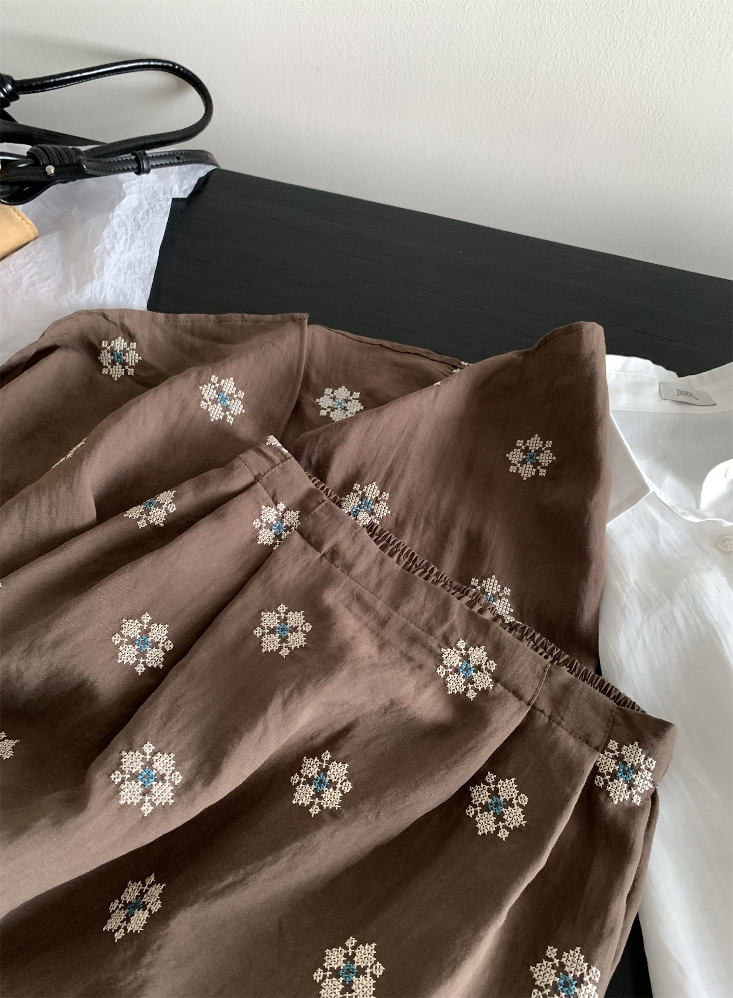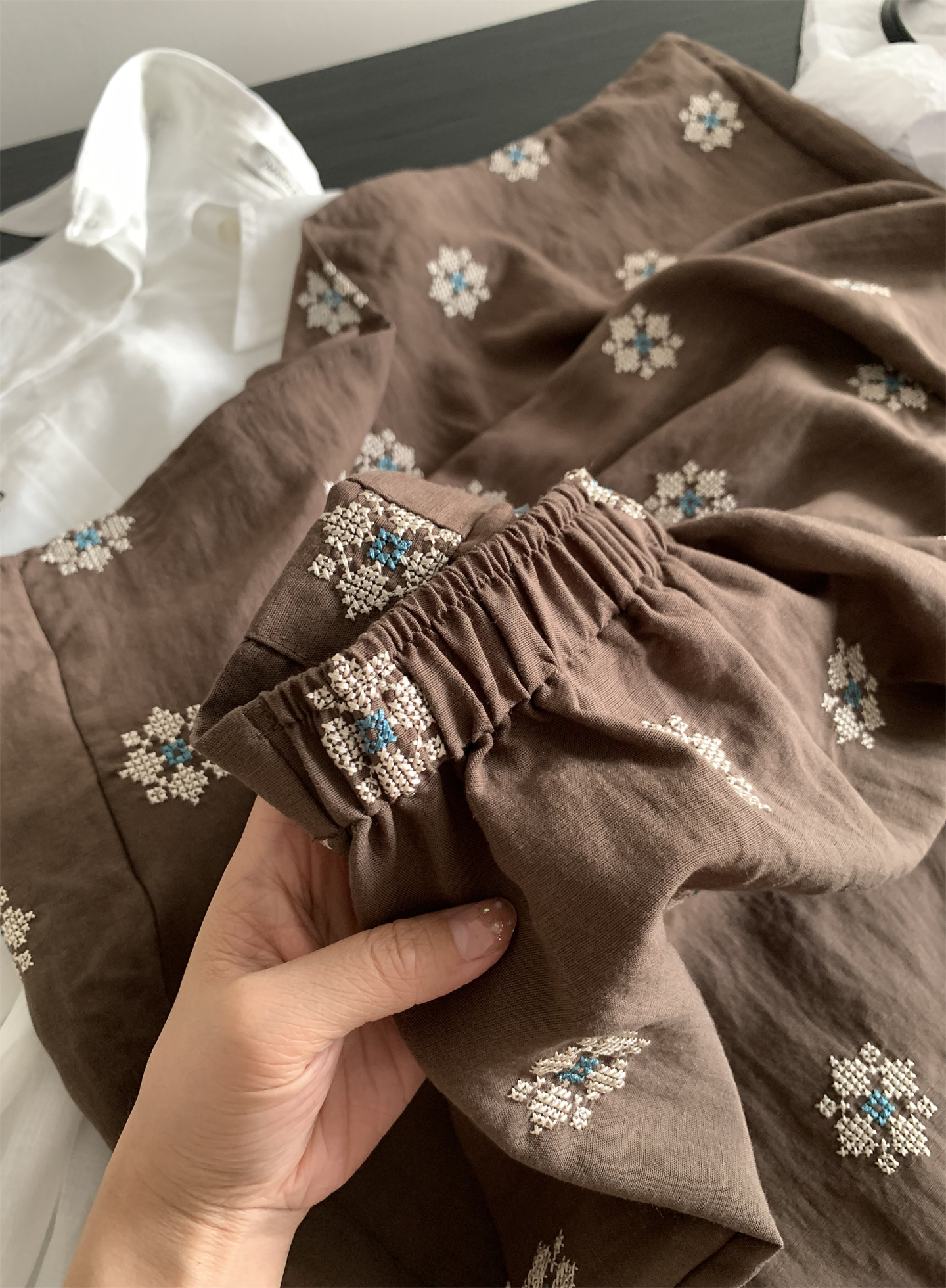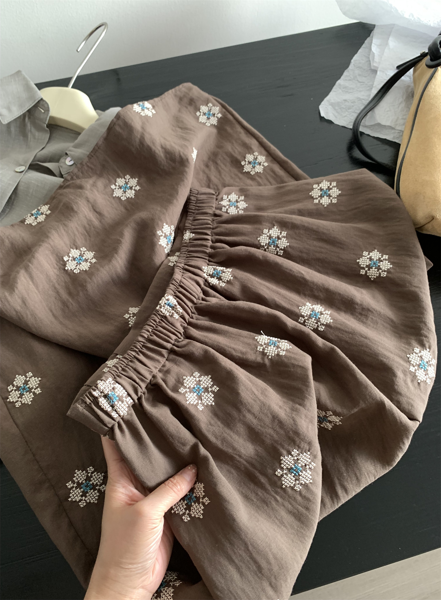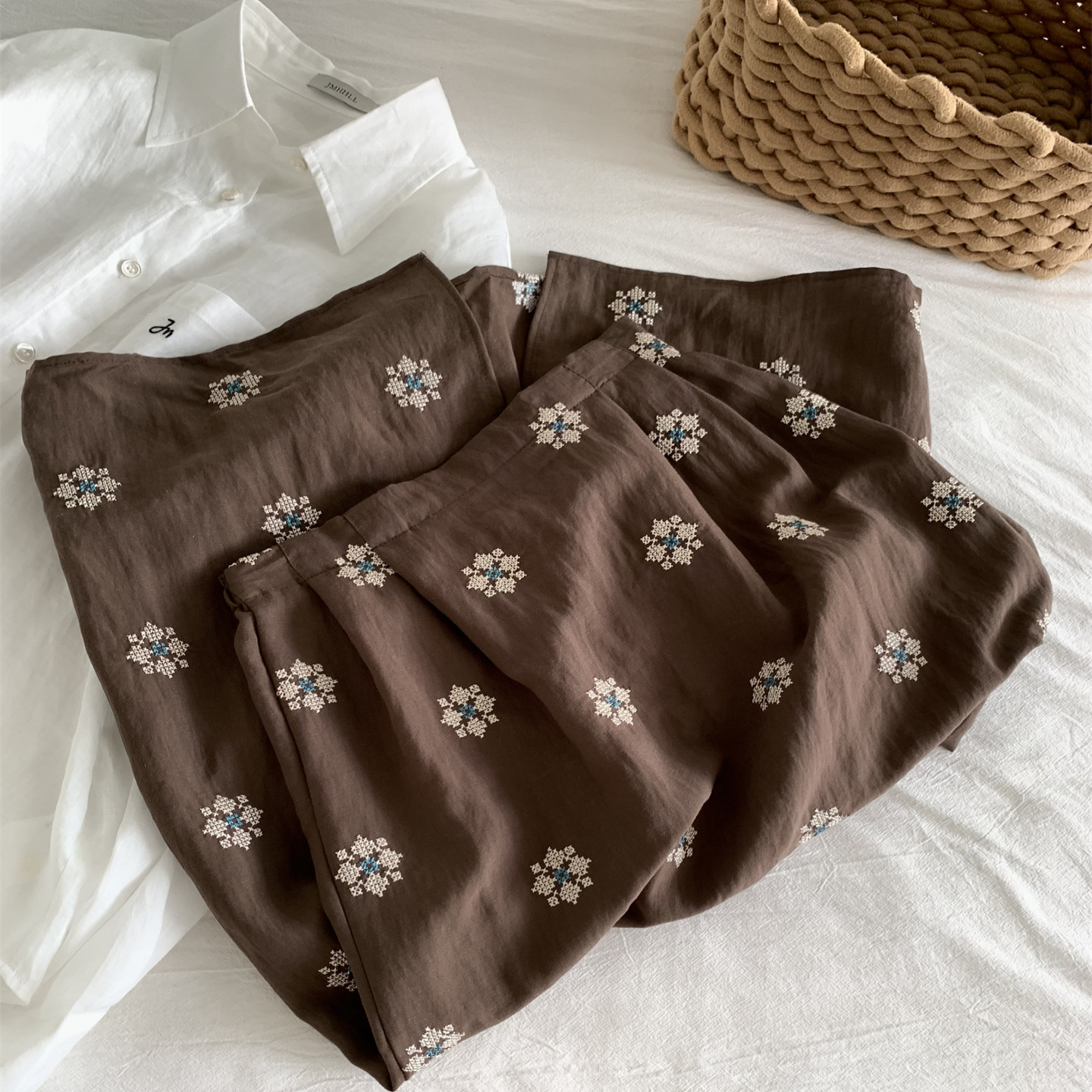 Ретро летняя тонкая юбка, с вышивкой, свободный прямой крой, длина миди