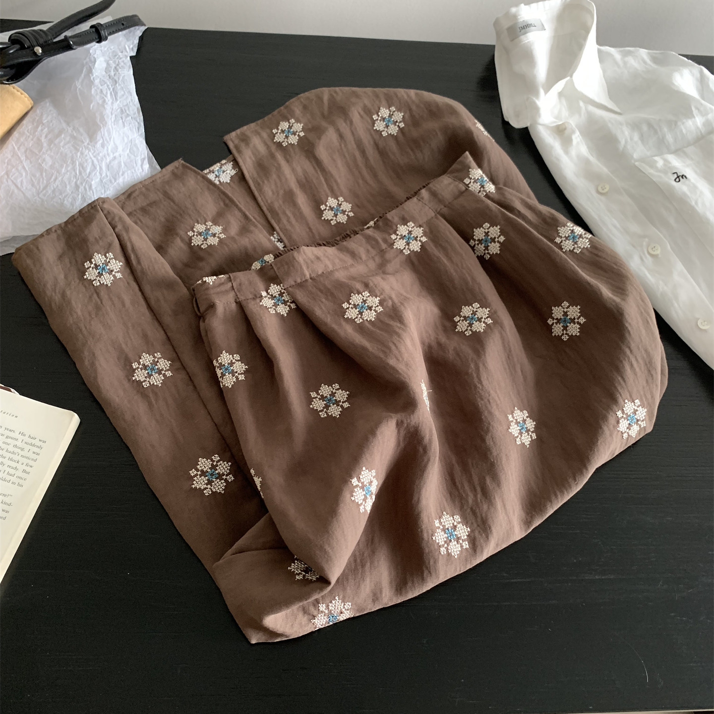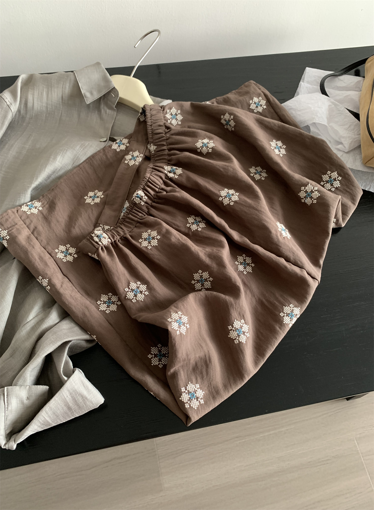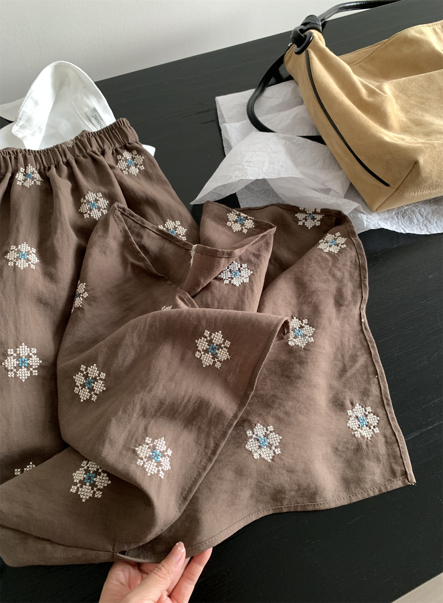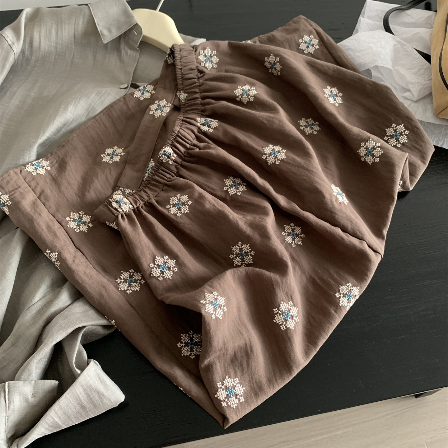 Ретро летняя тонкая юбка, с вышивкой, свободный прямой крой, длина миди
