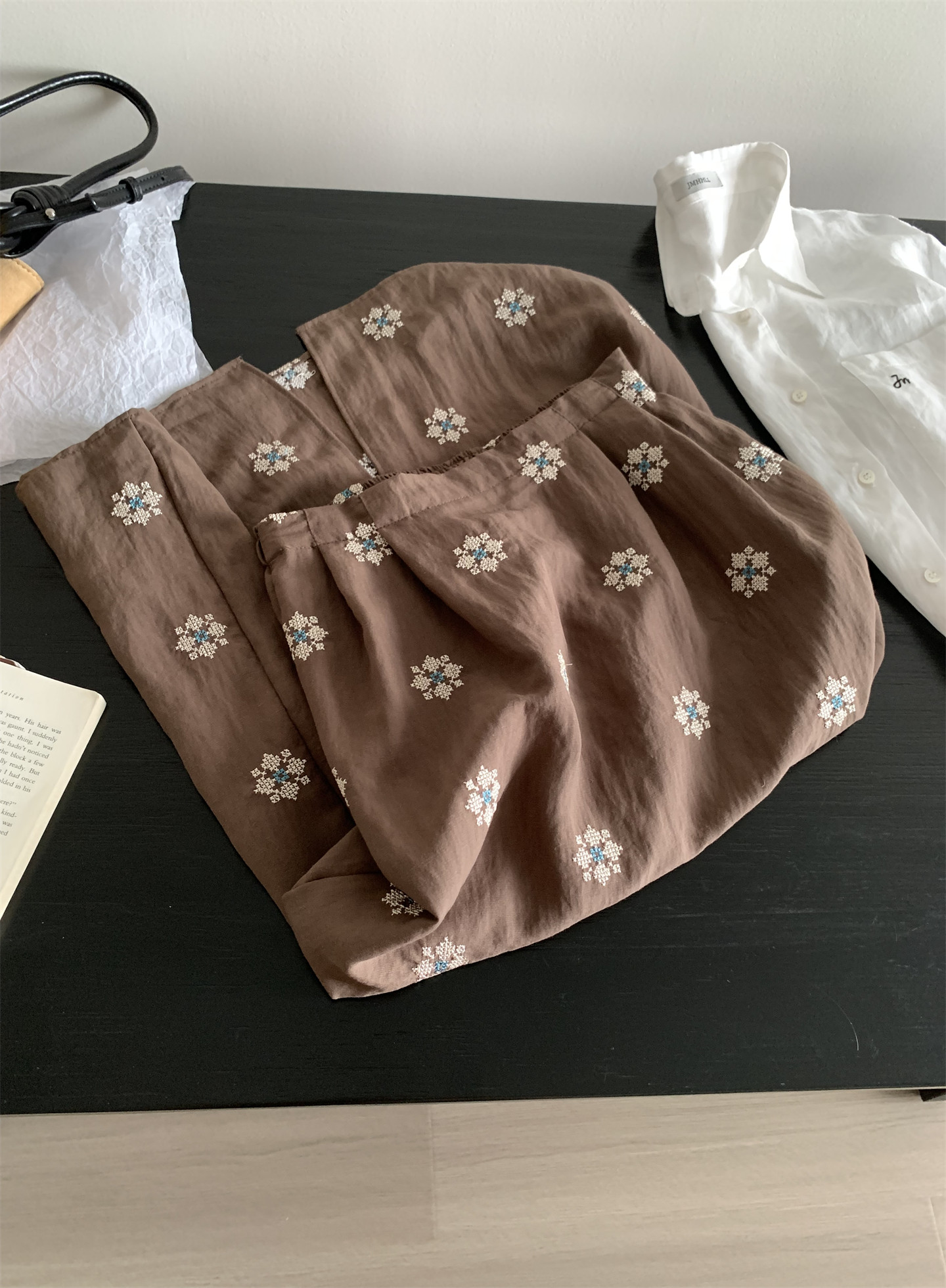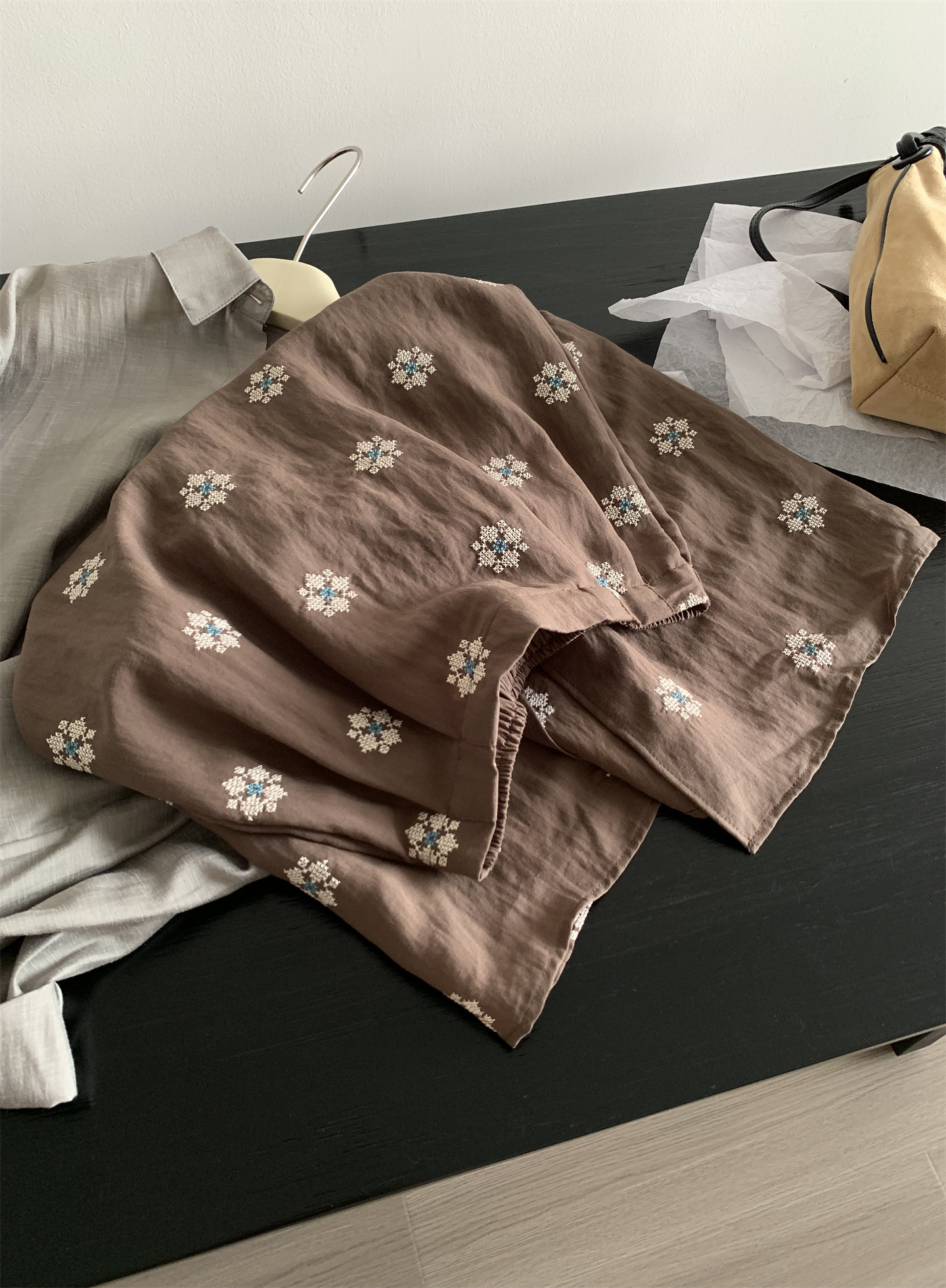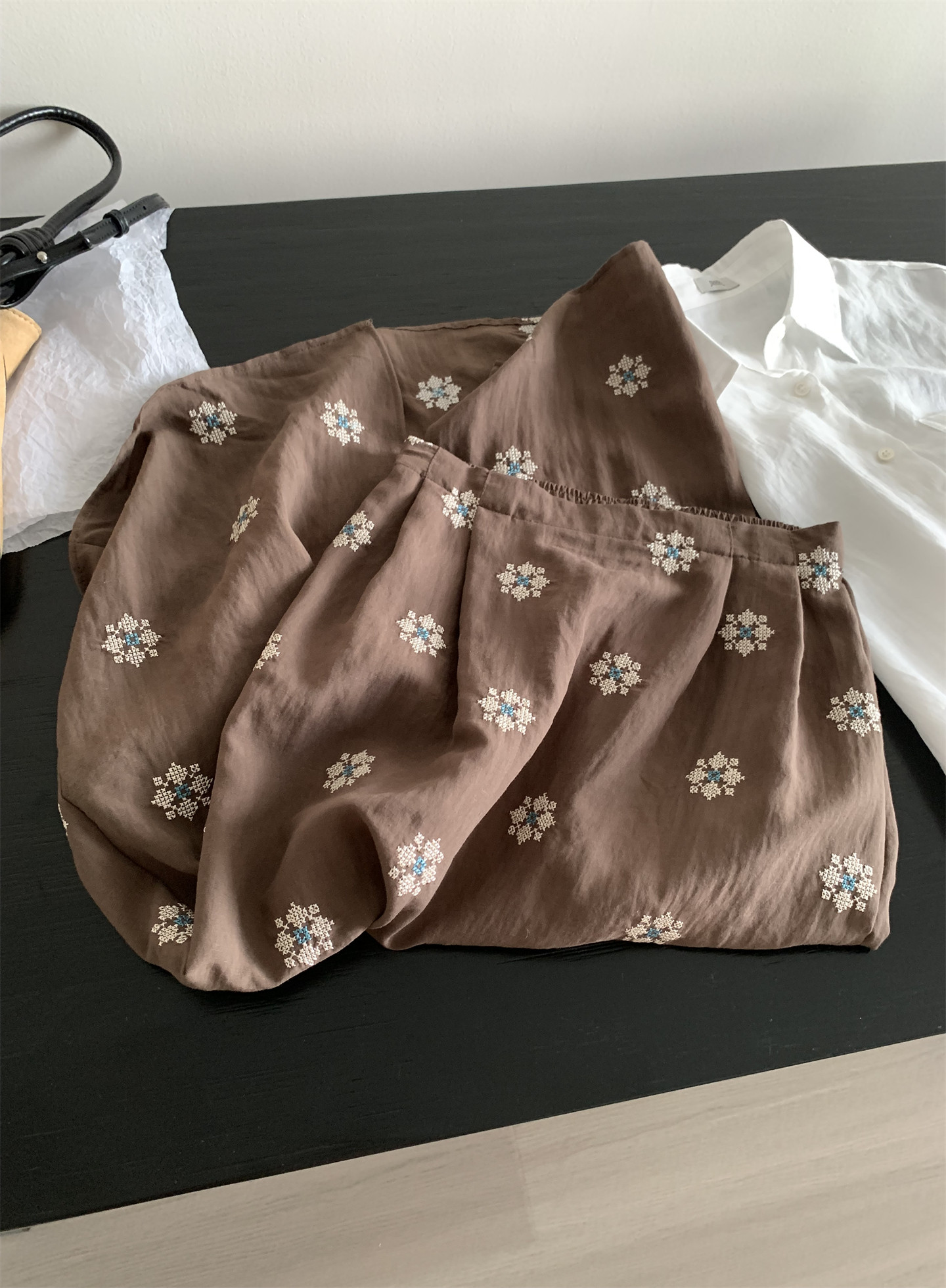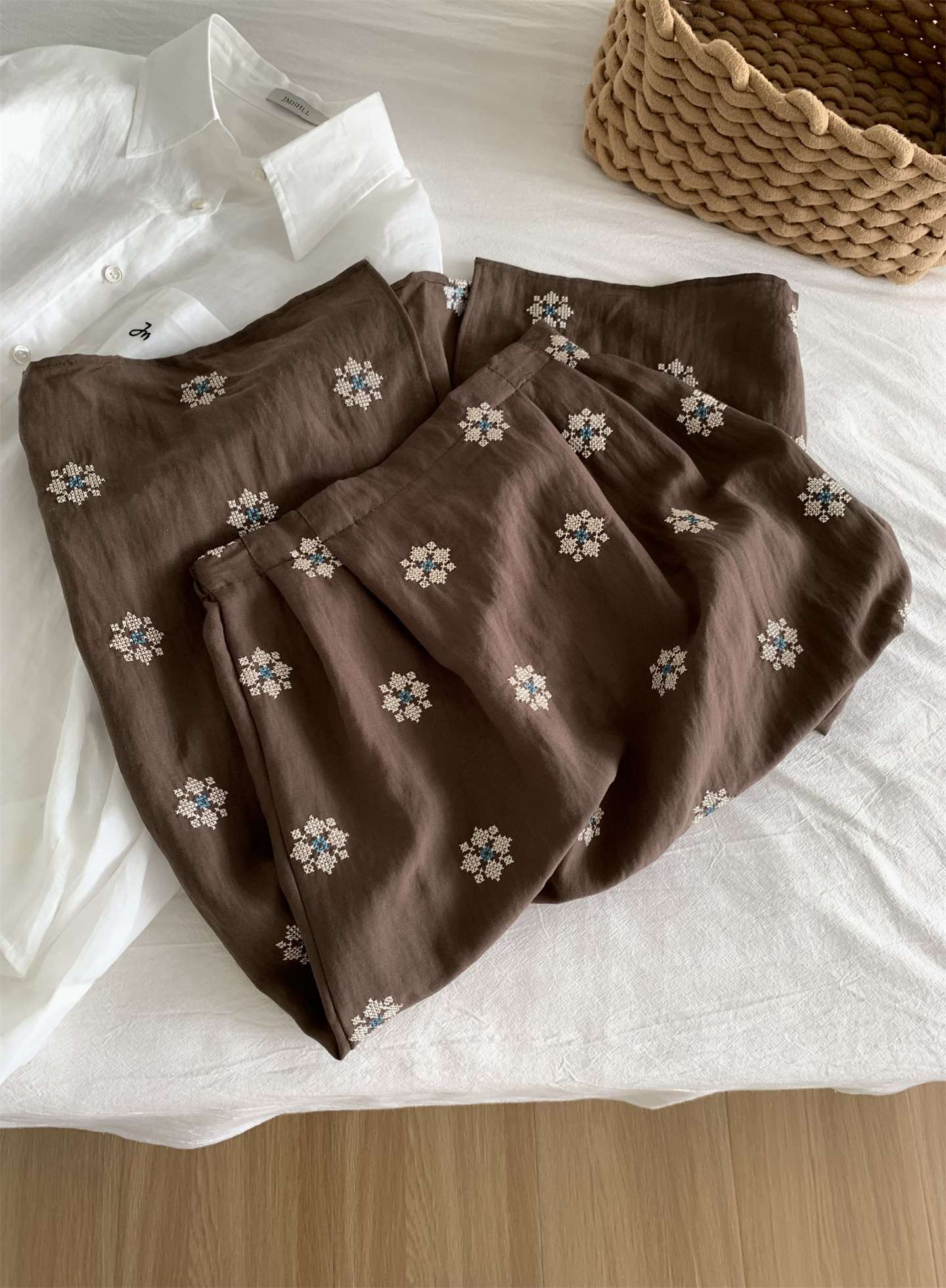 Ретро летняя тонкая юбка, с вышивкой, свободный прямой крой, длина миди