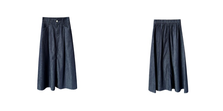 Модель с завышенной талией подчеркивает линию высокой талии, а ширина бедер и живота полностью скрыты юбкой.