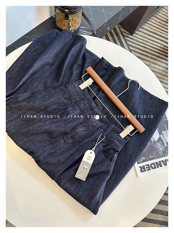 Темная летняя тонкая джинсовая юбка, средней длины