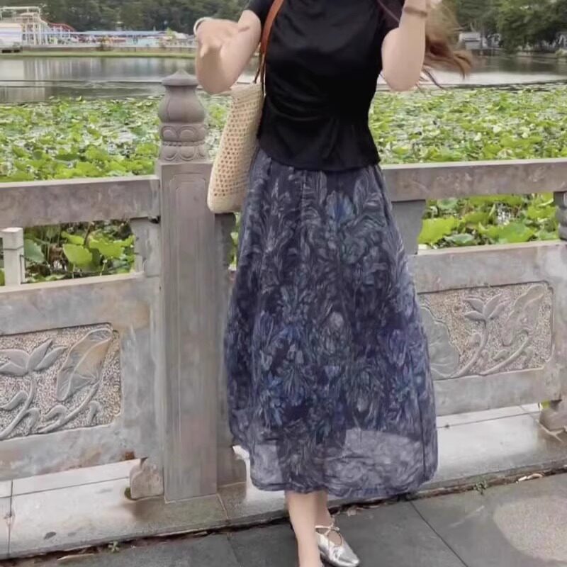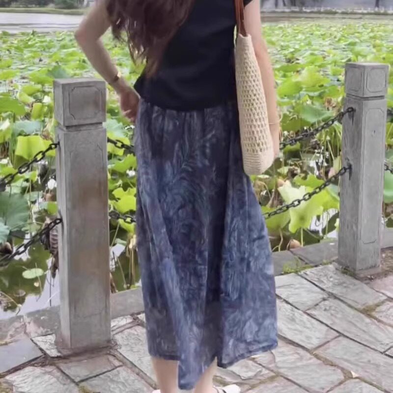 Летняя приталенная юбка для отдыха, высокая талия, по фигуре, подходит для подростков, средней длины