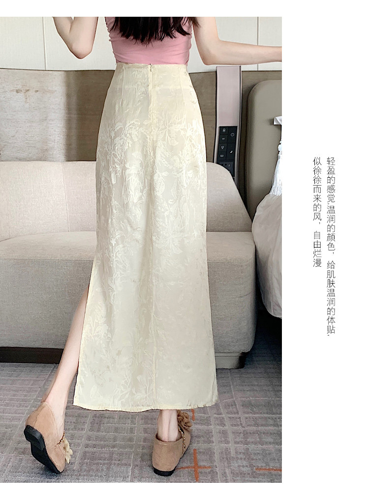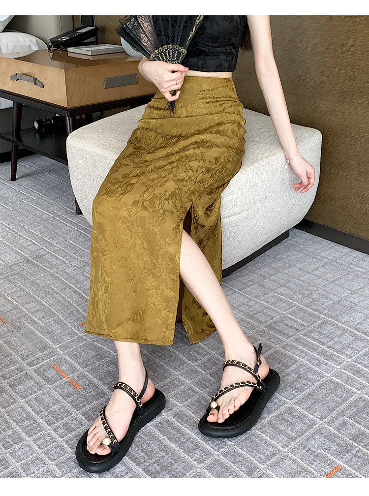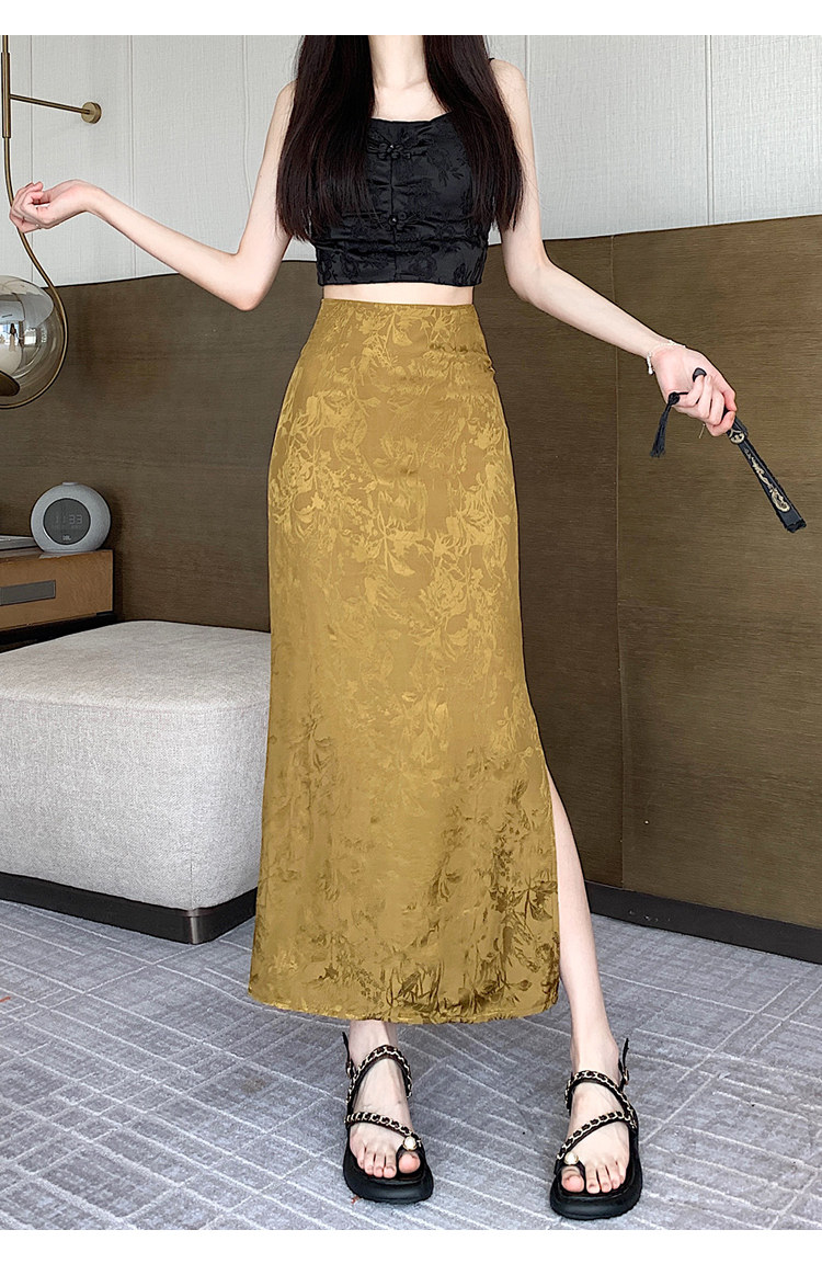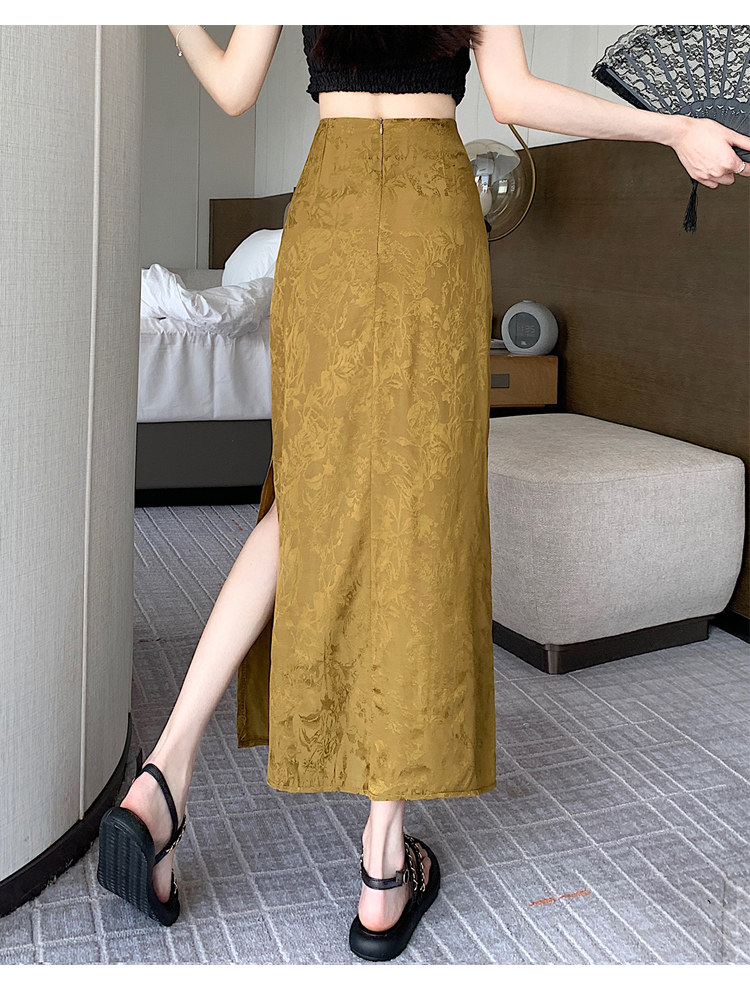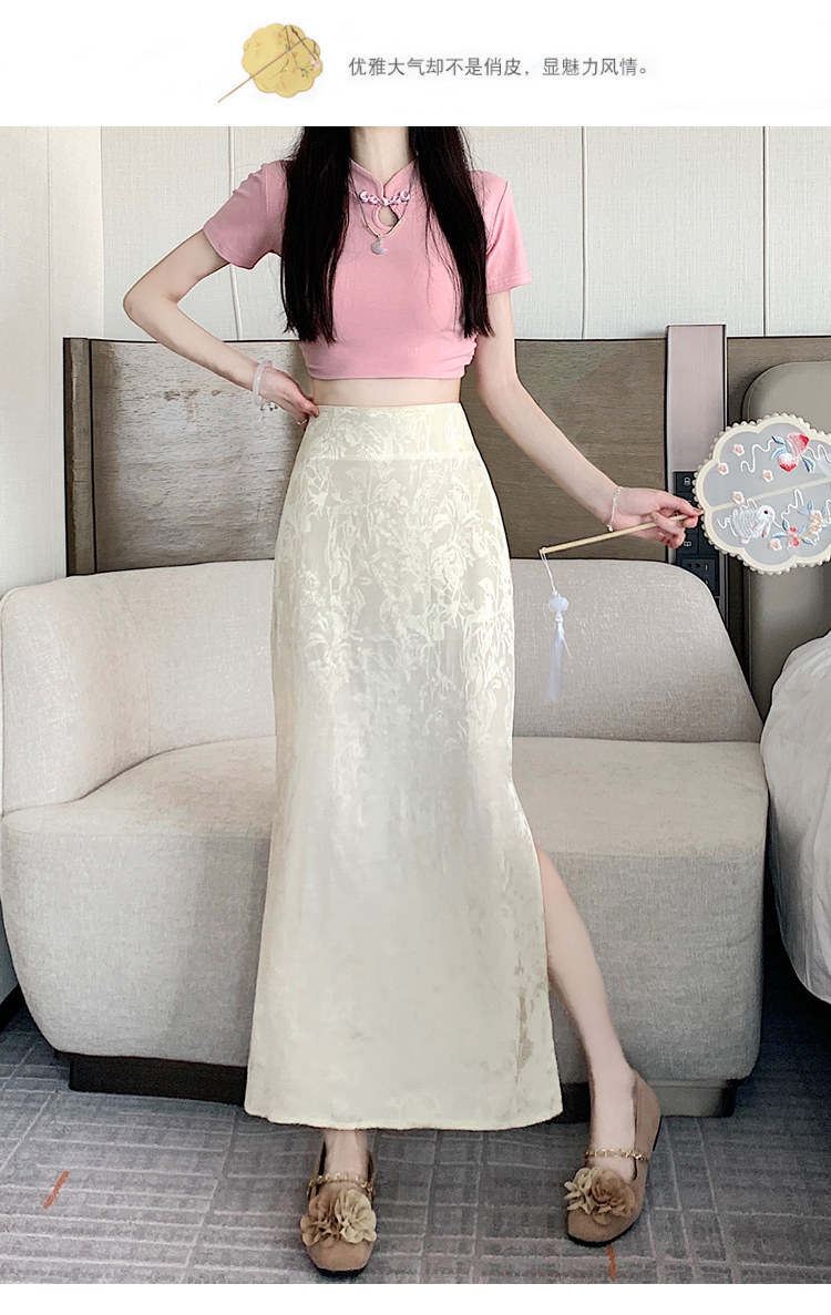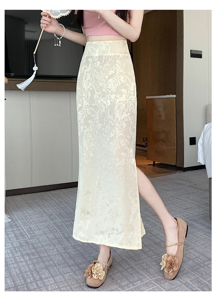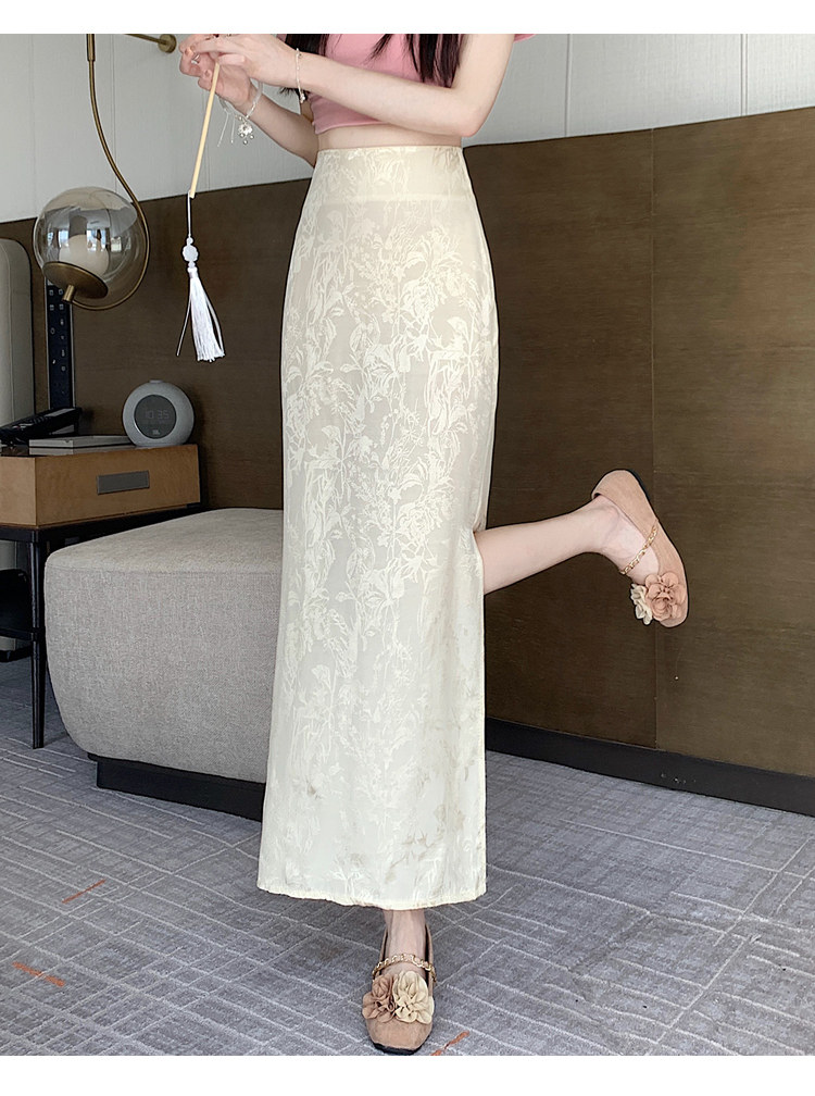Бежевая летняя юбка, с акцентом на бедрах, китайский стиль, длина миди