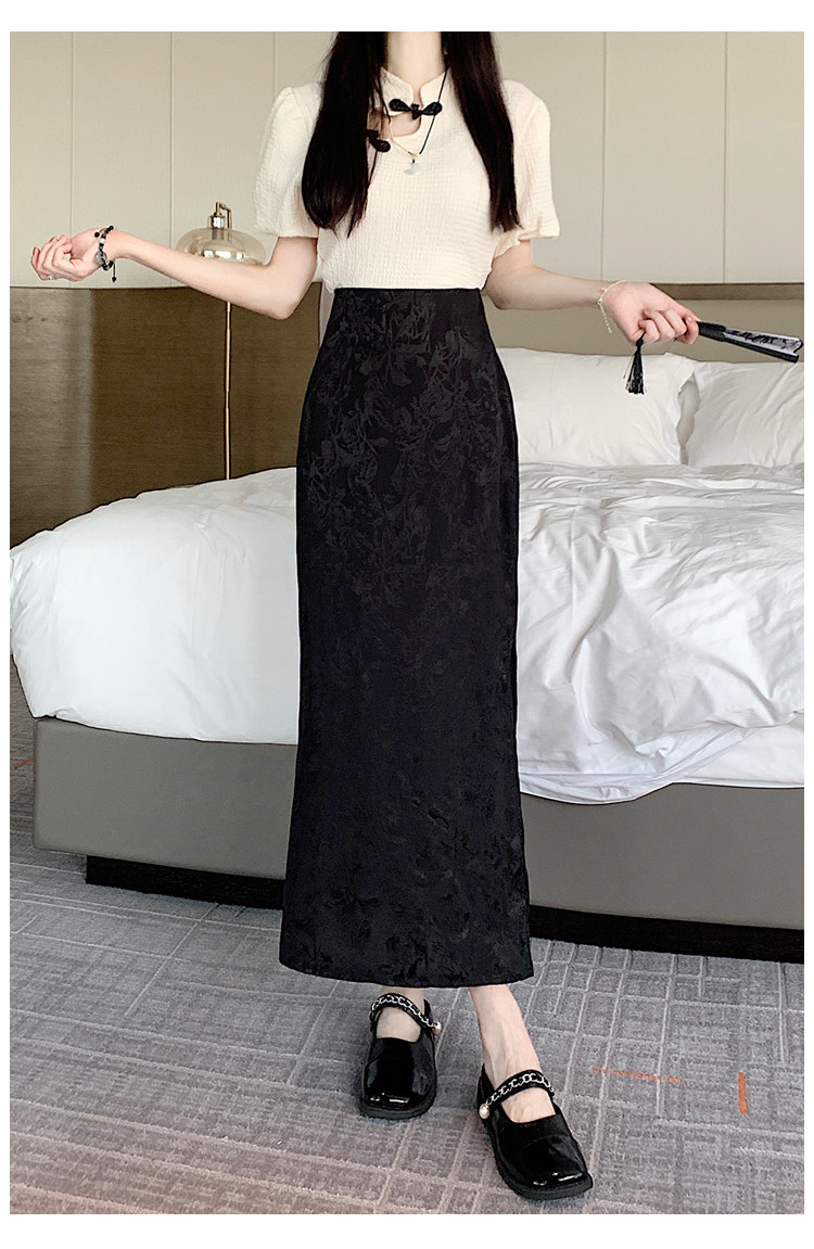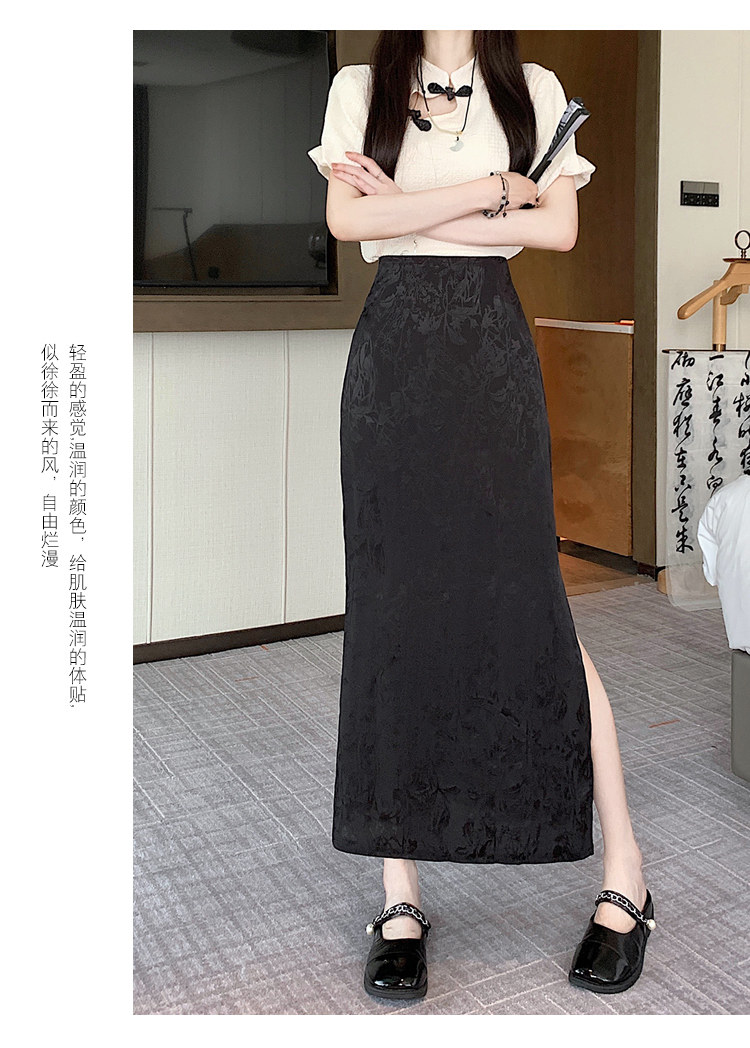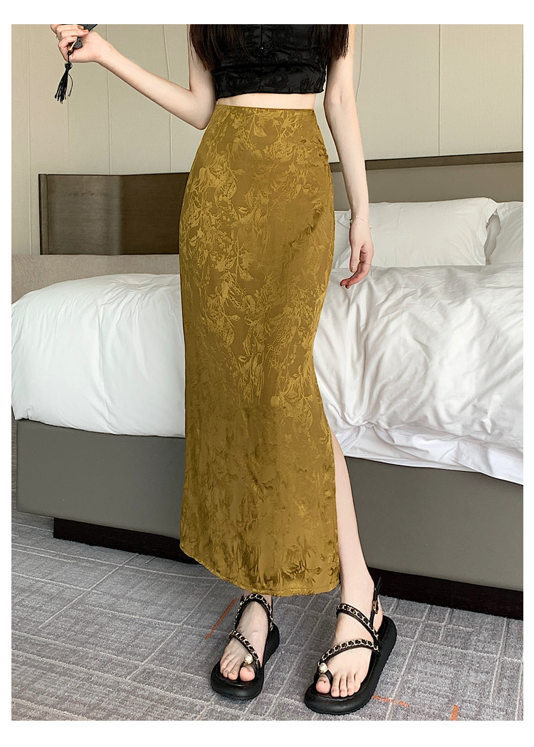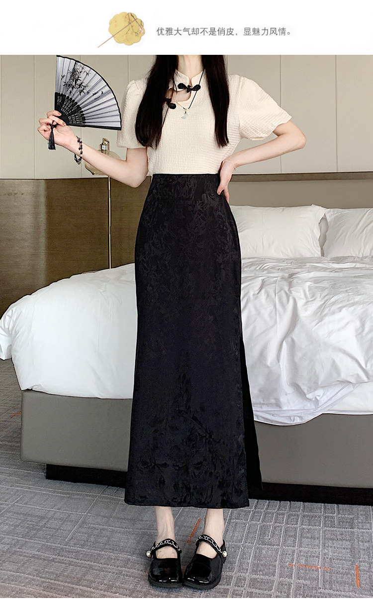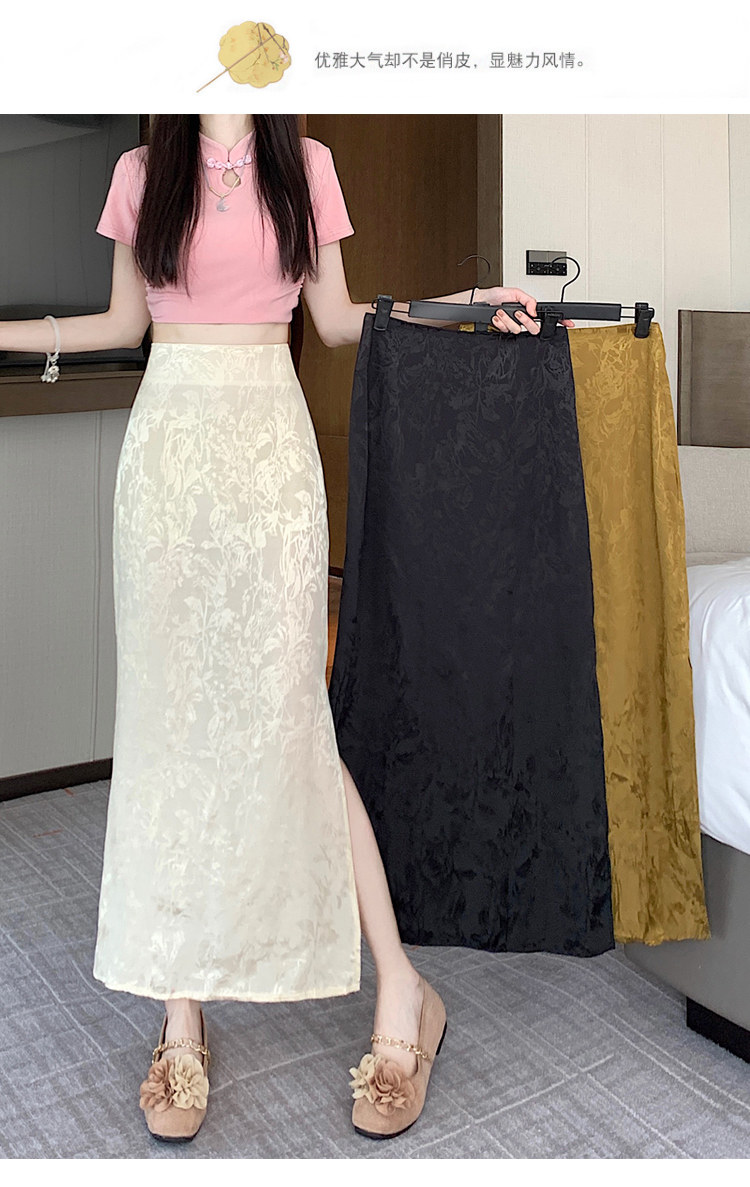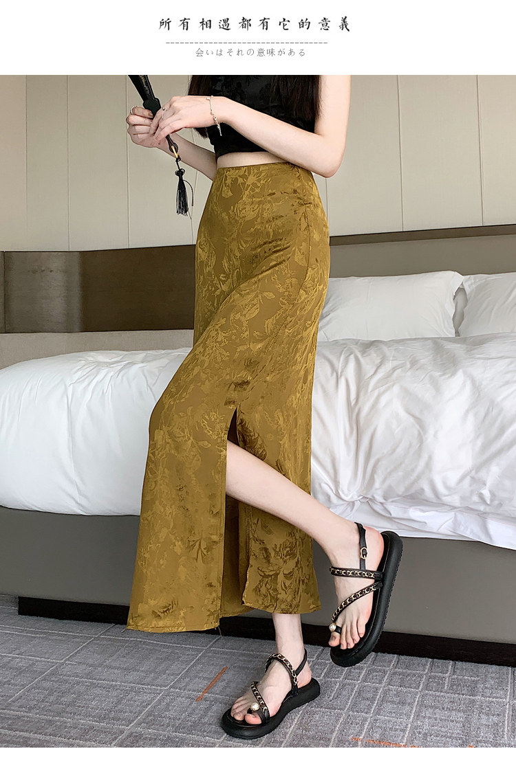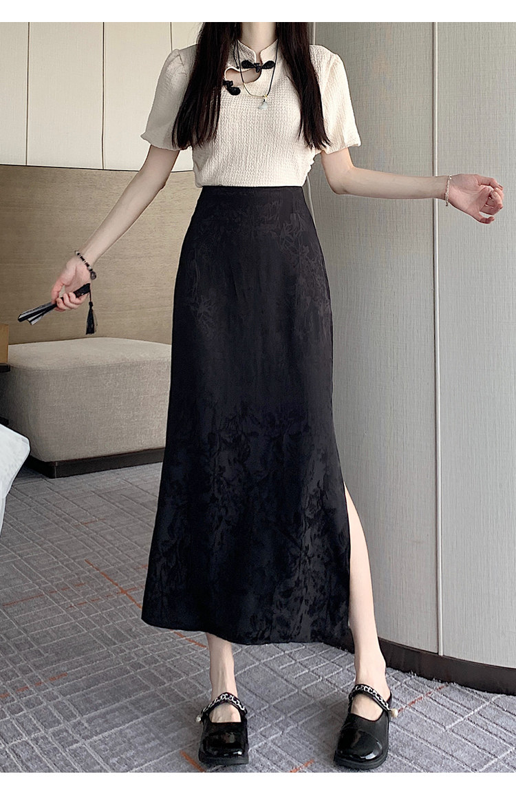 Бежевая летняя юбка, с акцентом на бедрах, китайский стиль, длина миди