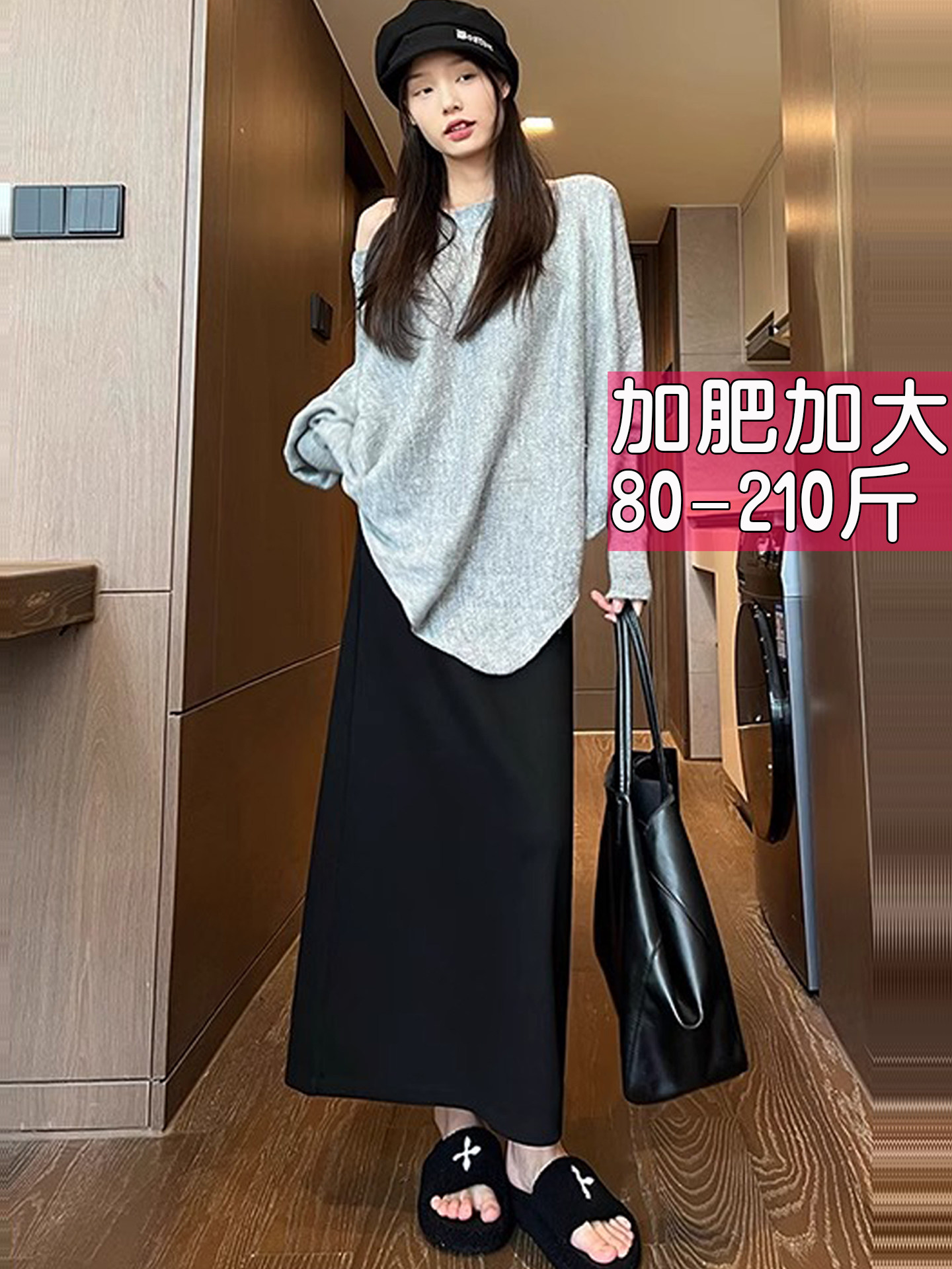 Трикотажная осенняя шерстяная длинная юбка, большой размер, свободный прямой крой, А-силуэт, с акцентом на бедрах
