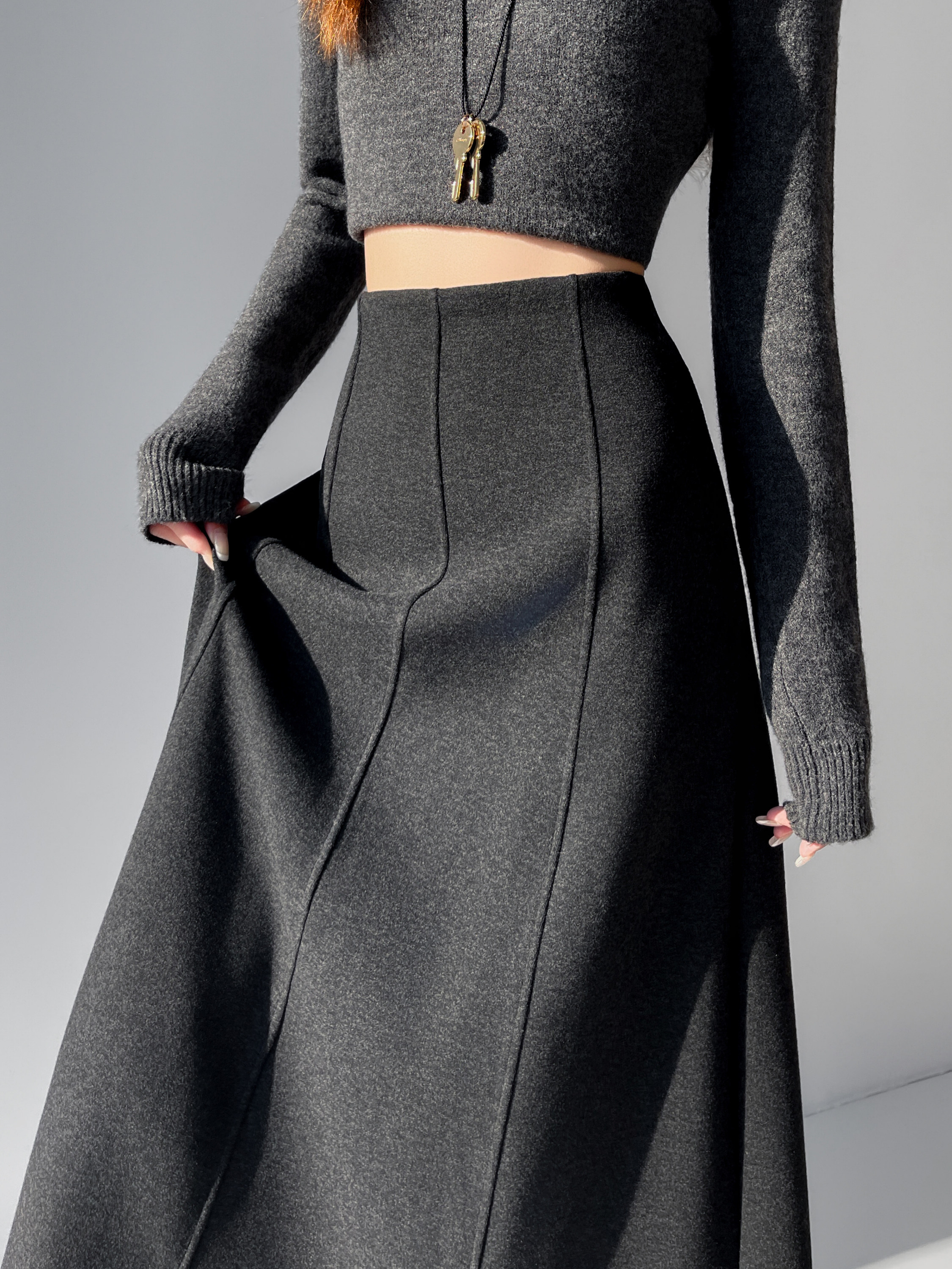 Шерстяная утепленная демисезонная длинная зимняя юбка, А-силуэт